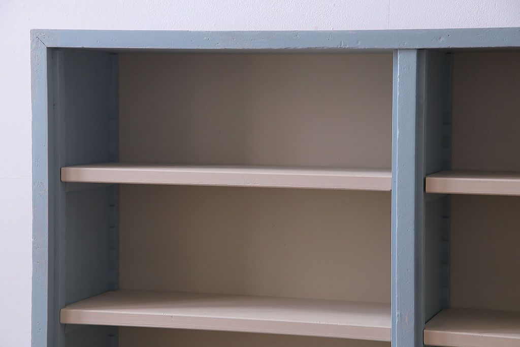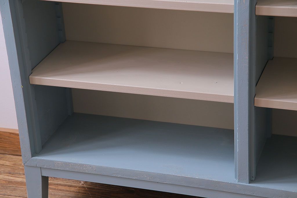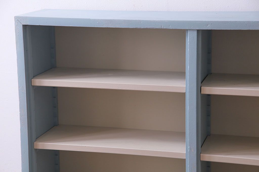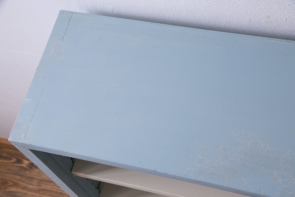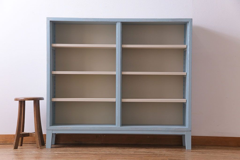 ペイント家具 淡い色合いが爽やかな印象のオープンラック(陳列棚、本棚、ブックシェルフ)(1)です。