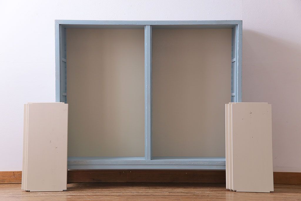 ペイントカラーはくすんだ水色と茶色がかったアイボリーです。