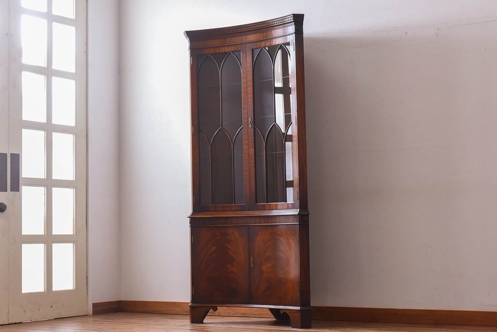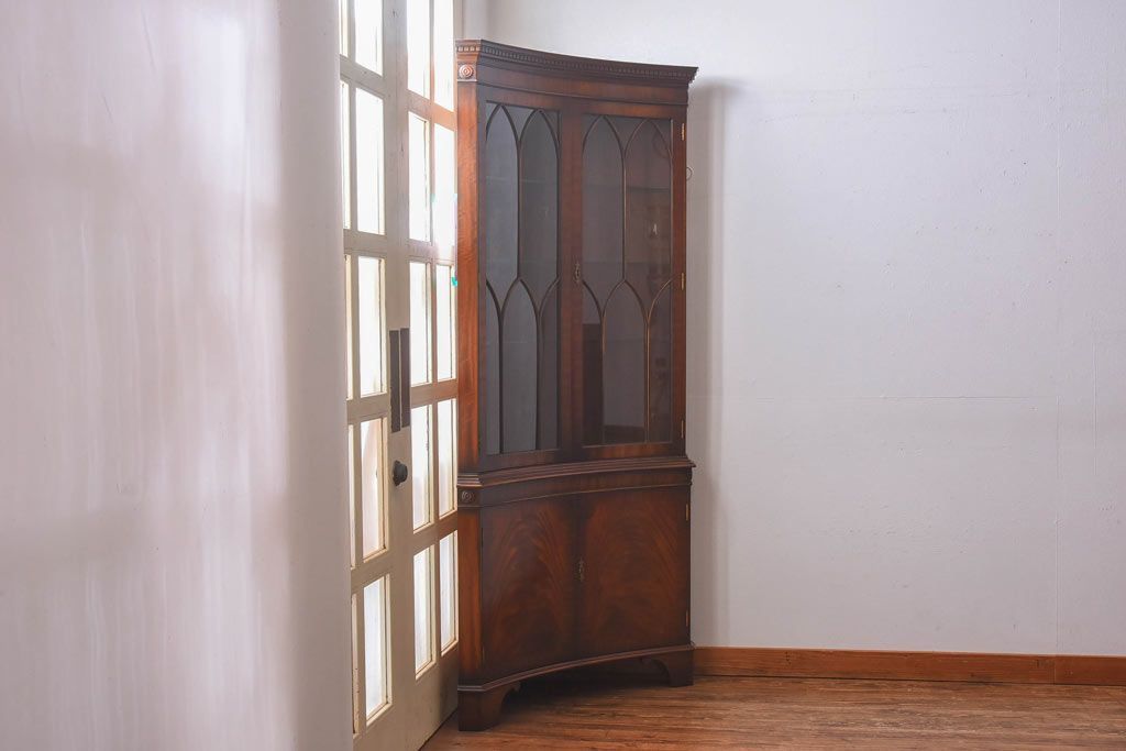 アンティーク家具 イギリスアンティーク エレガントなマホガニー材のコーナーキャビネット(飾り棚、収納棚)