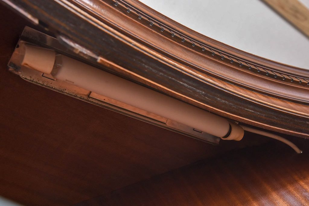 コンセントは海外規格のため使用には変換機が必要です。(その為、点灯は確認していません。)古いものですので機械部分の保証はできかねます。ご理解の上お願い致します。ご希望により、取り外すことが可能です。