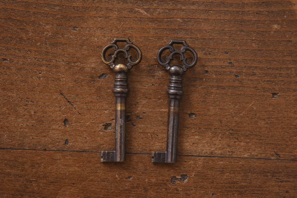鍵は2本(上・下)付属します。画像にありますように、鍵は袋に入れお付けします。スムーズに動きます。