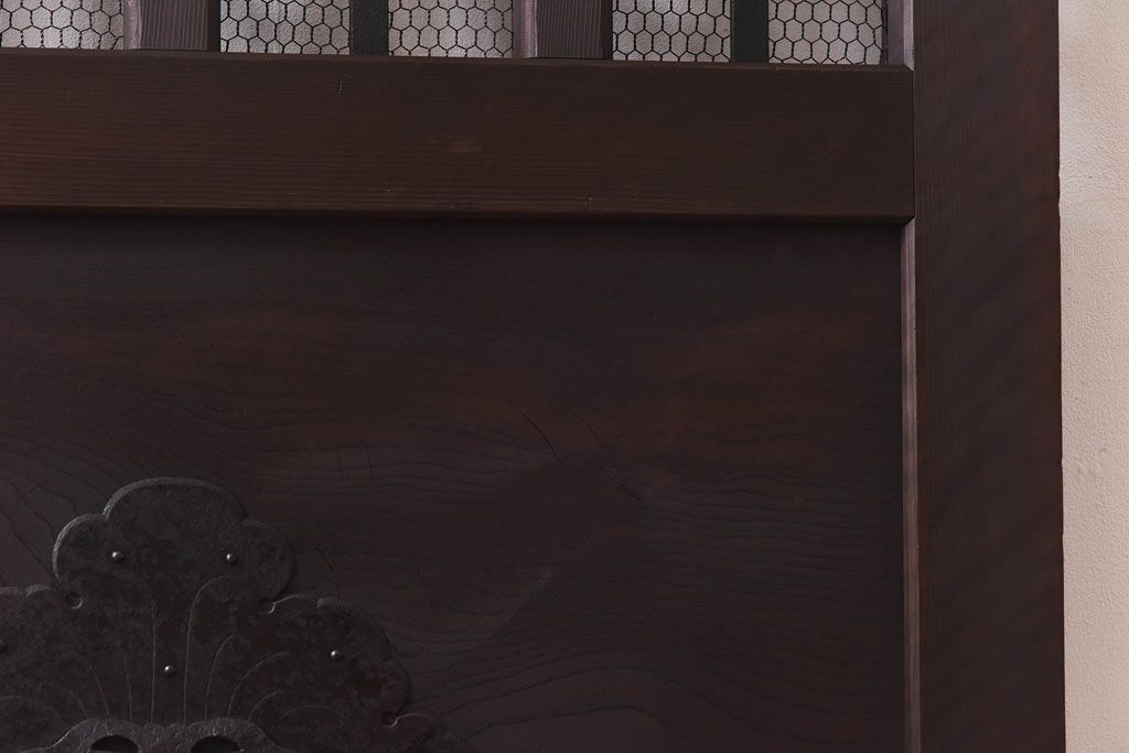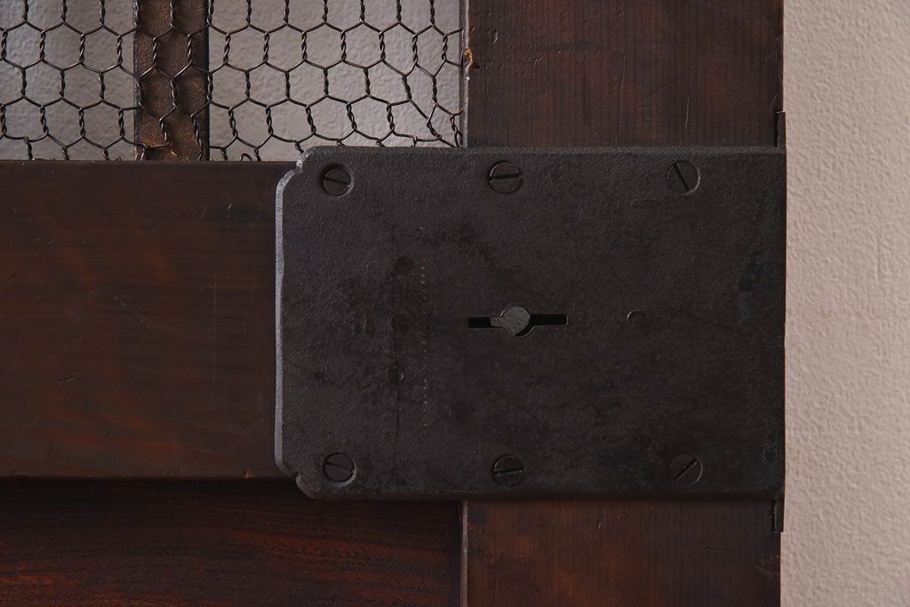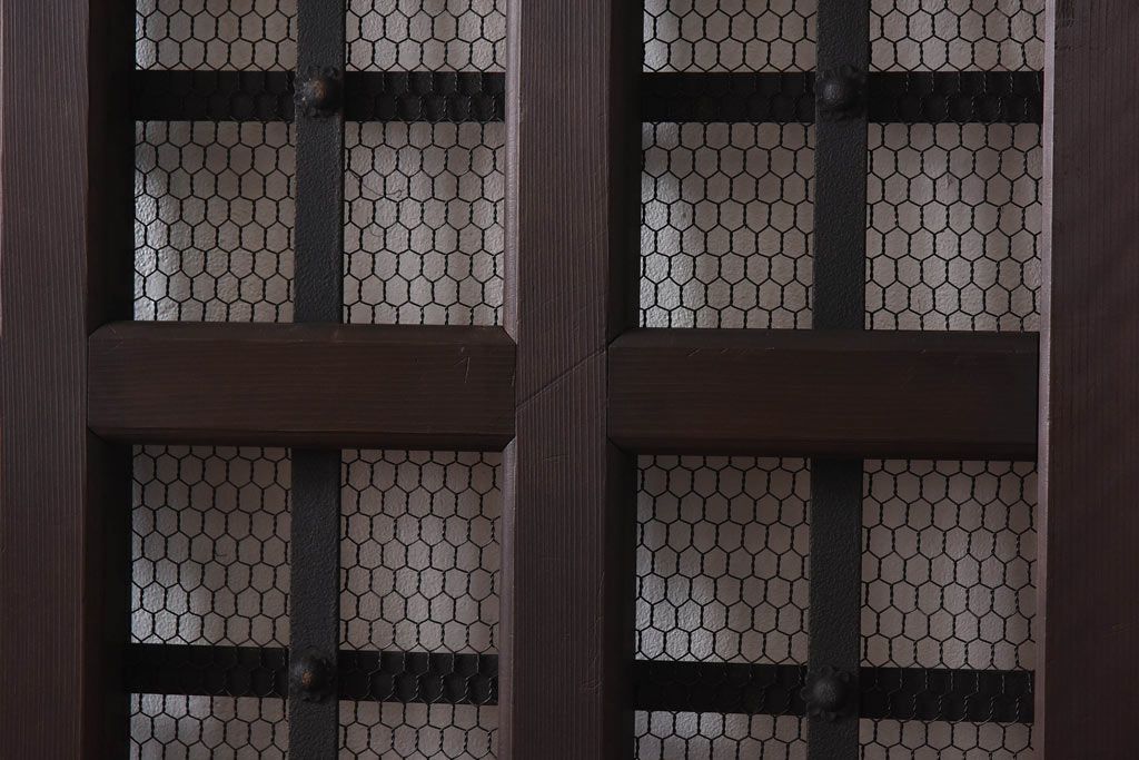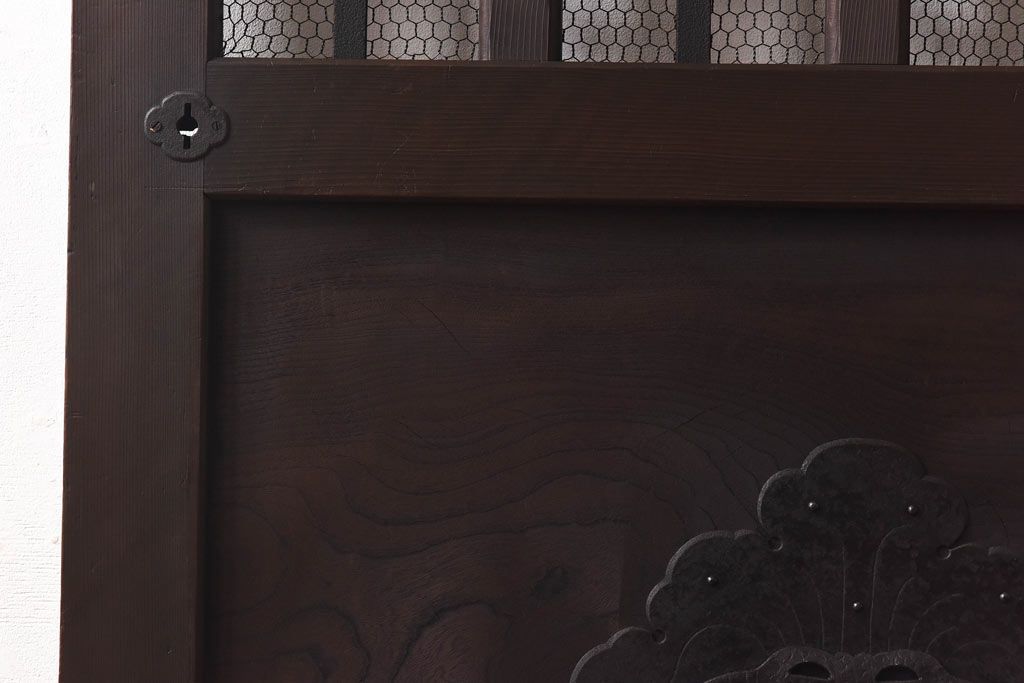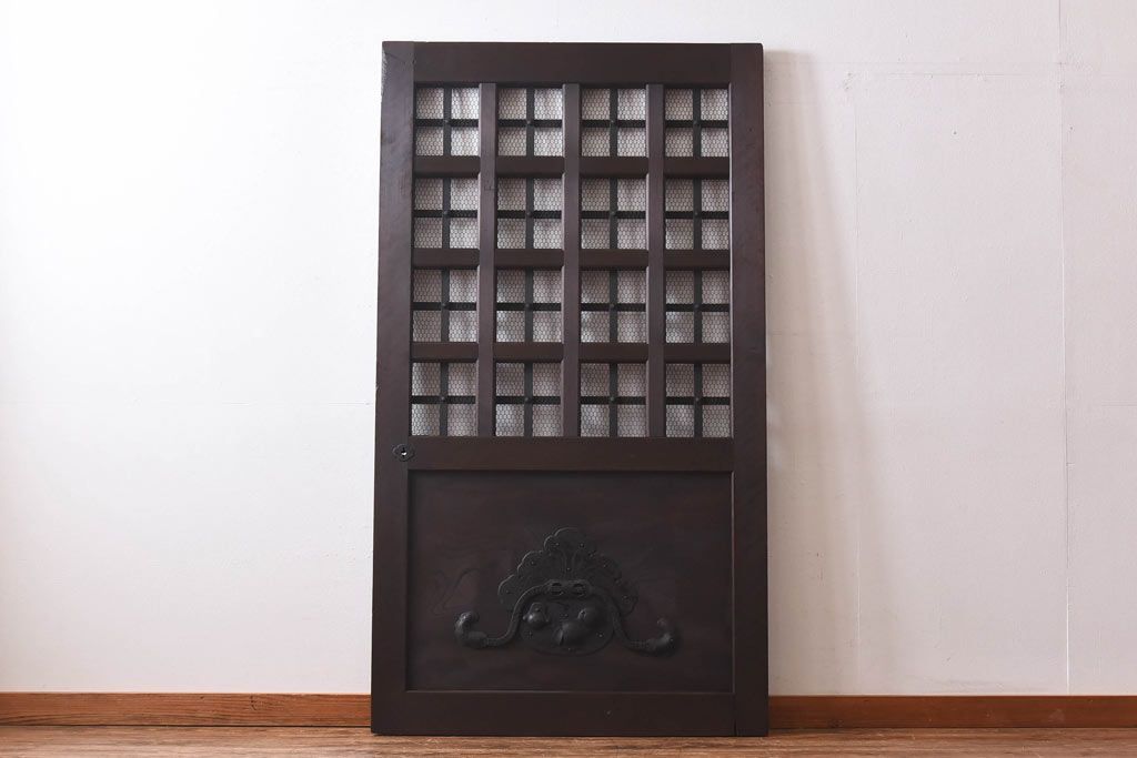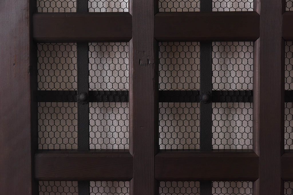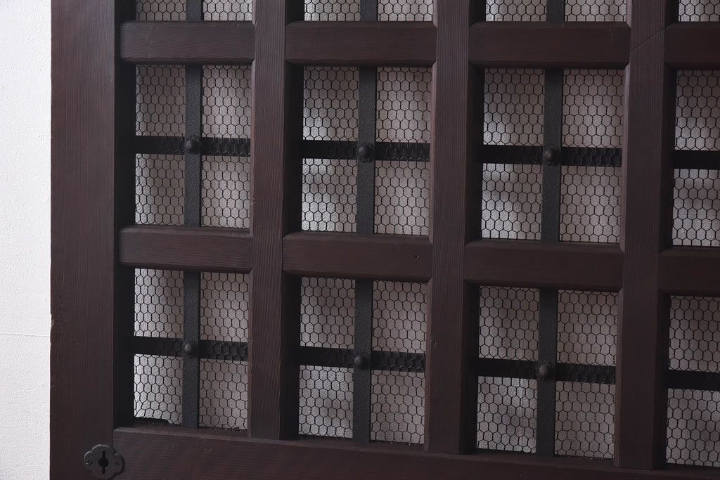 和製アンティーク 金網入り! 大振りの金具が目を惹く鉄格子蔵戸(引き戸、蔵戸、玄関戸)