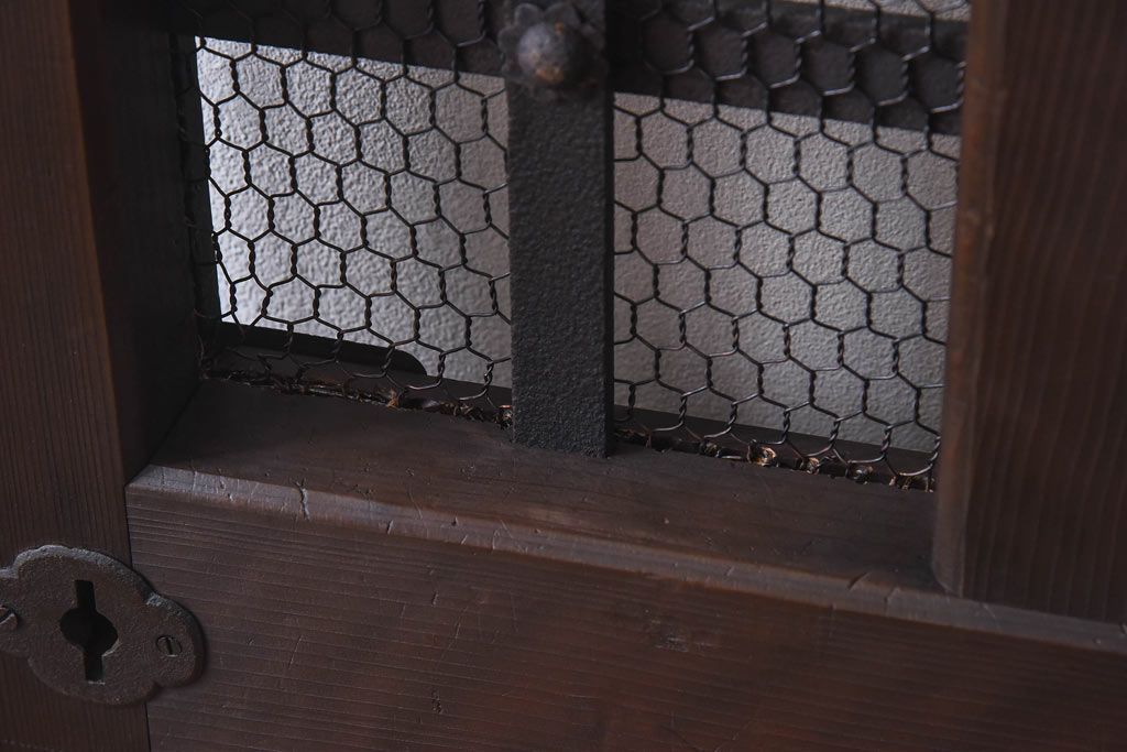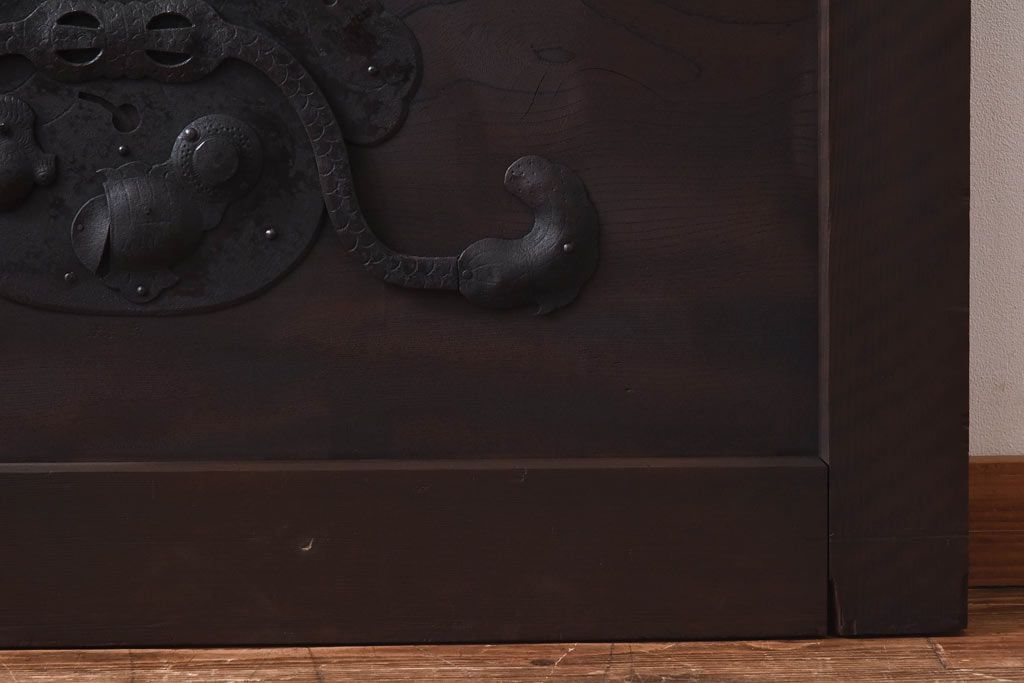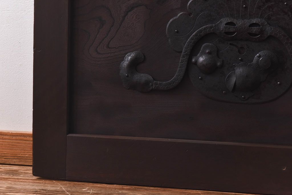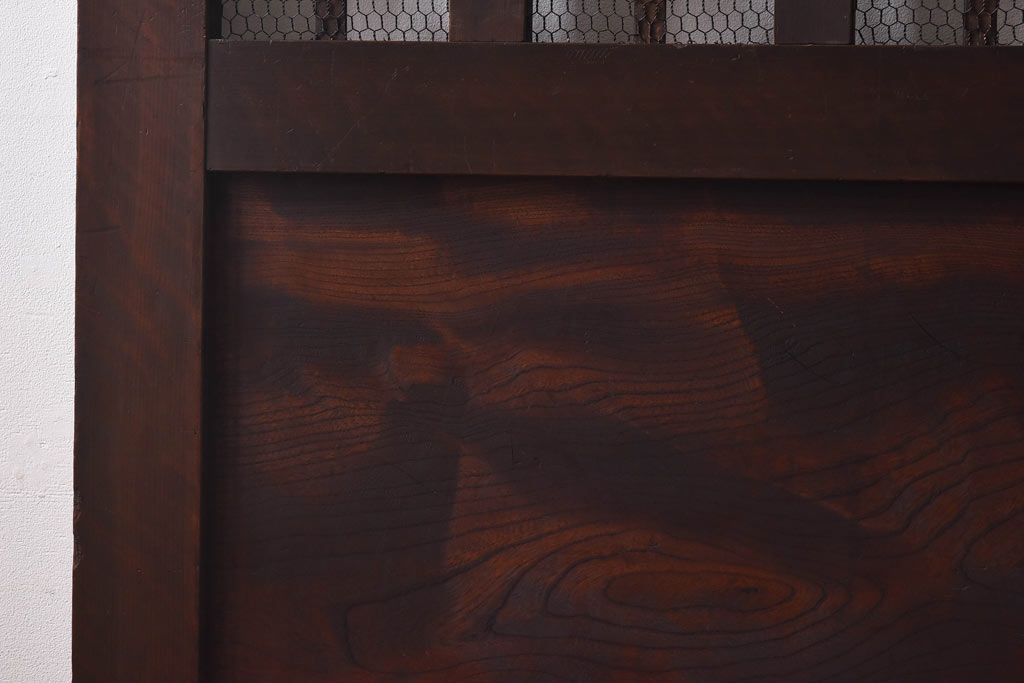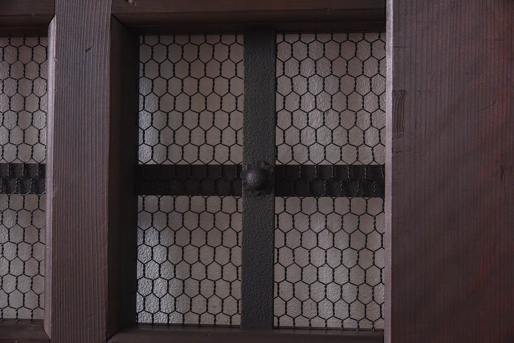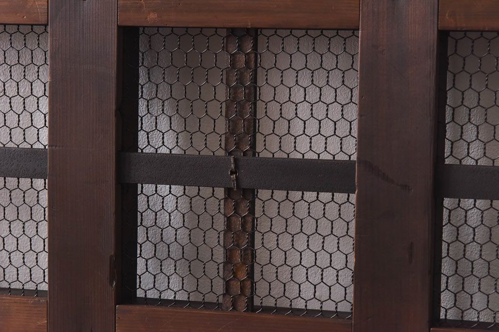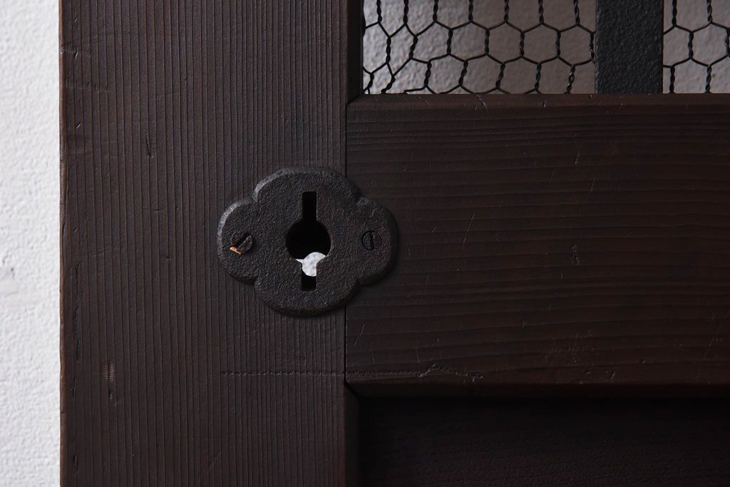 和製アンティーク 金網入り! 大振りの金具が目を惹く鉄格子蔵戸(引き戸、蔵戸、玄関戸)