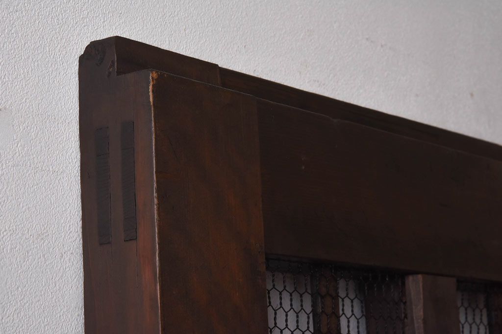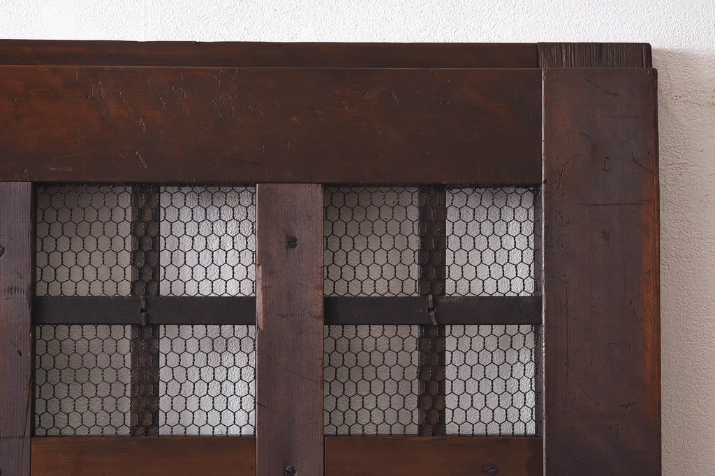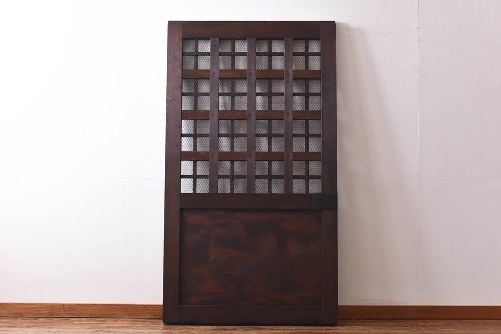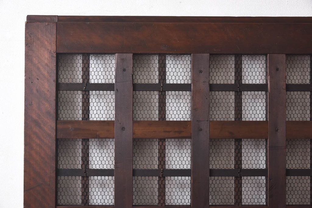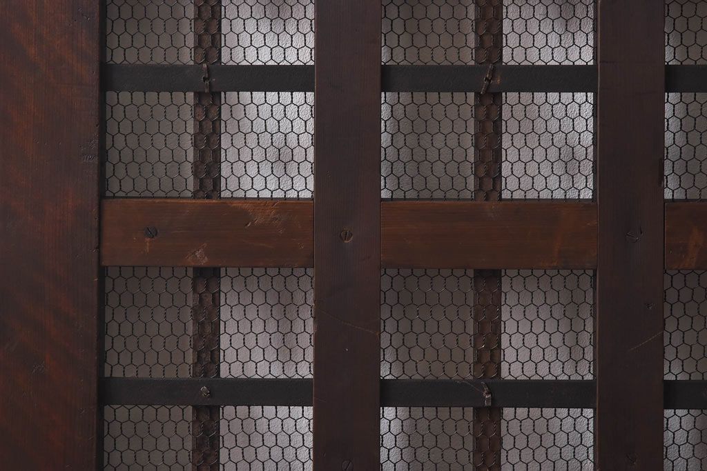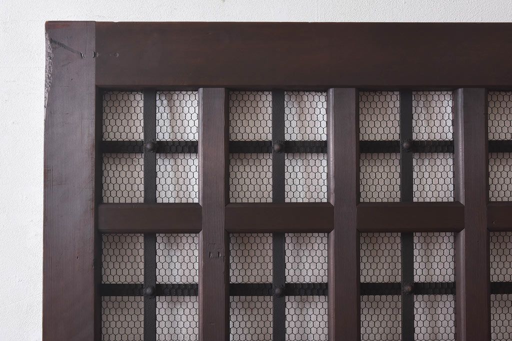 ラフジュ工房> 衝立・パーテーション > 和製アンティーク 金網入り! 大振りの金具が目を惹く鉄格子蔵戸(引き戸、蔵戸、玄関戸)