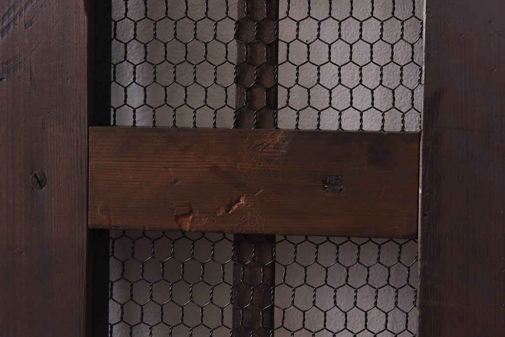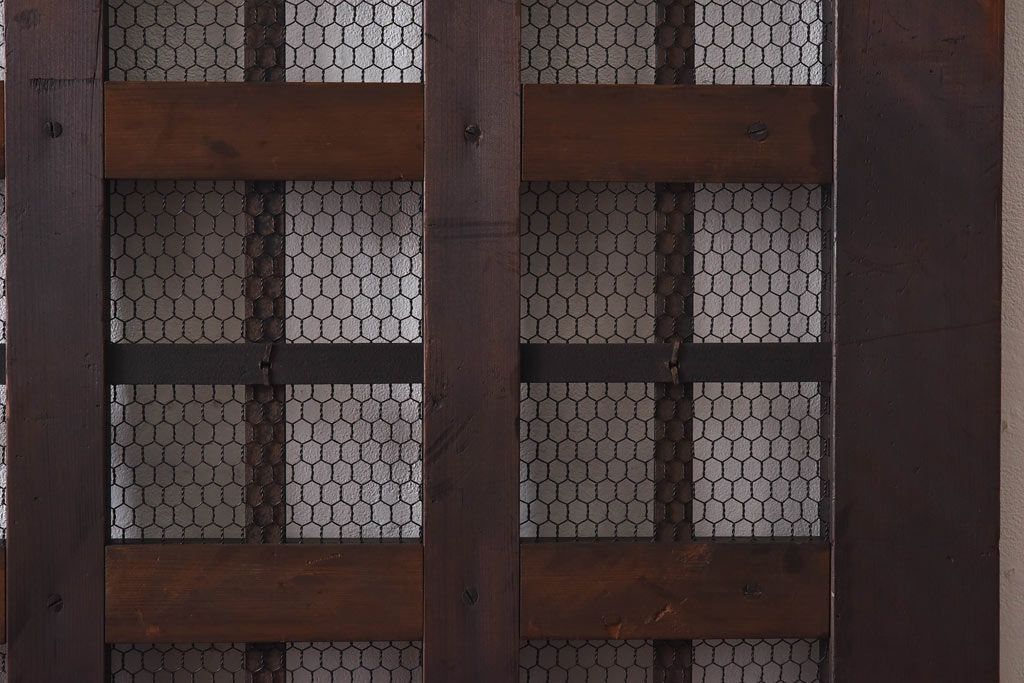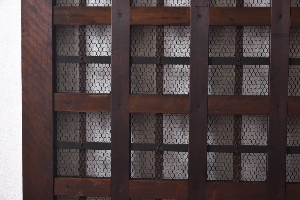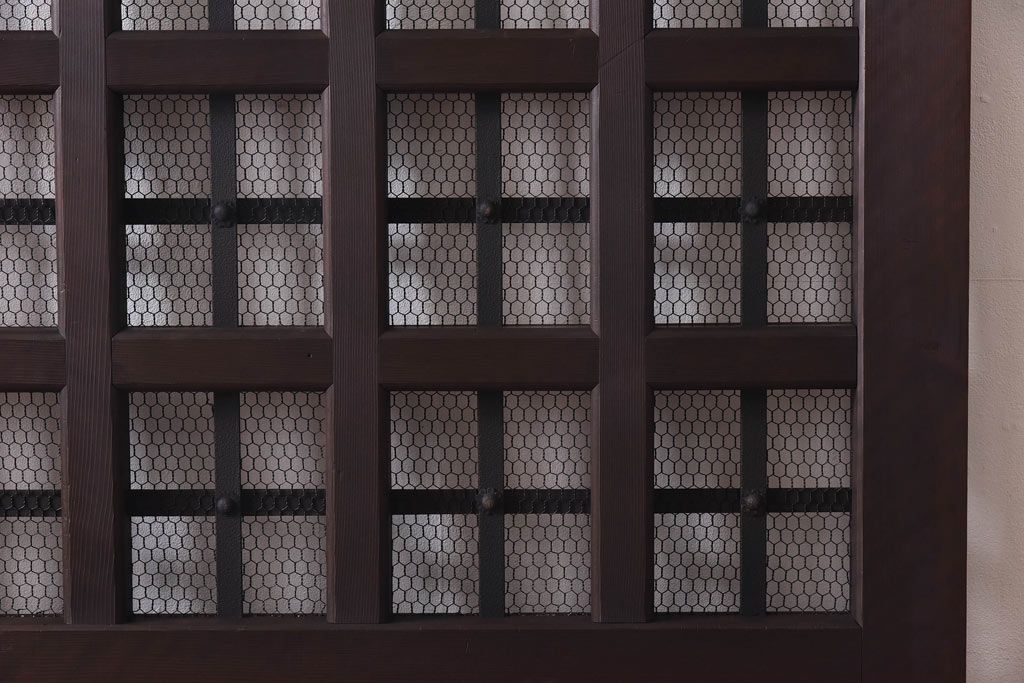 ラフジュ工房> 衝立・パーテーション> スタンド式衝立 > 和製アンティーク 金網入り! 大振りの金具が目を惹く鉄格子蔵戸(引き戸、蔵戸、玄関戸)