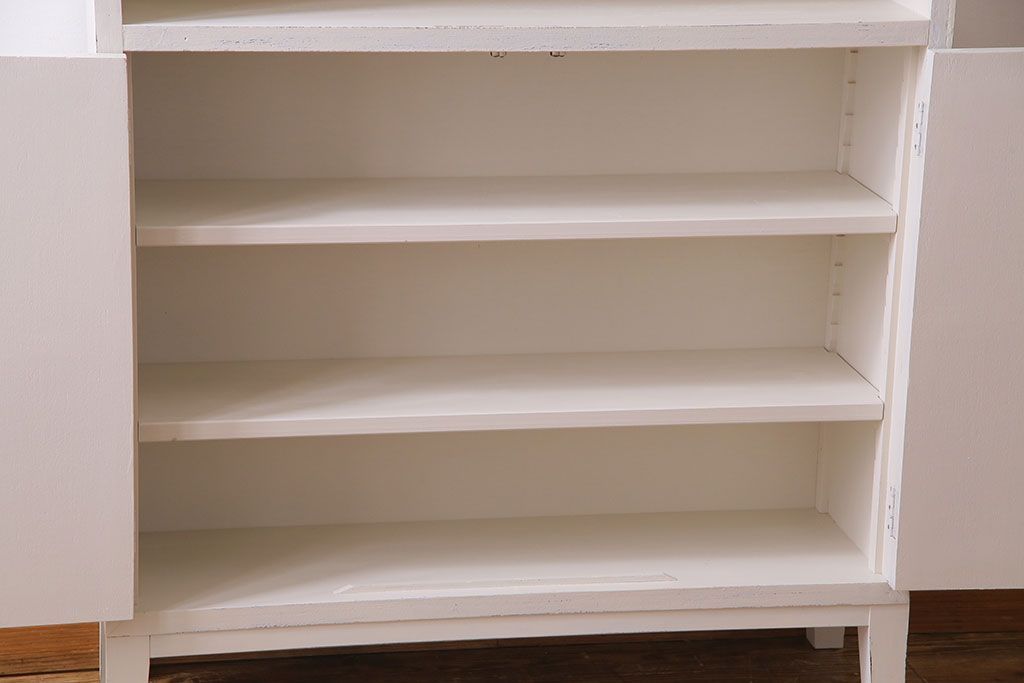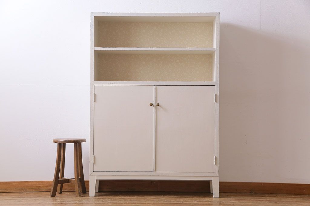 ペイント家具 壁紙が可愛らしいレトロな収納棚(キャビネット、オープンラック、本棚)