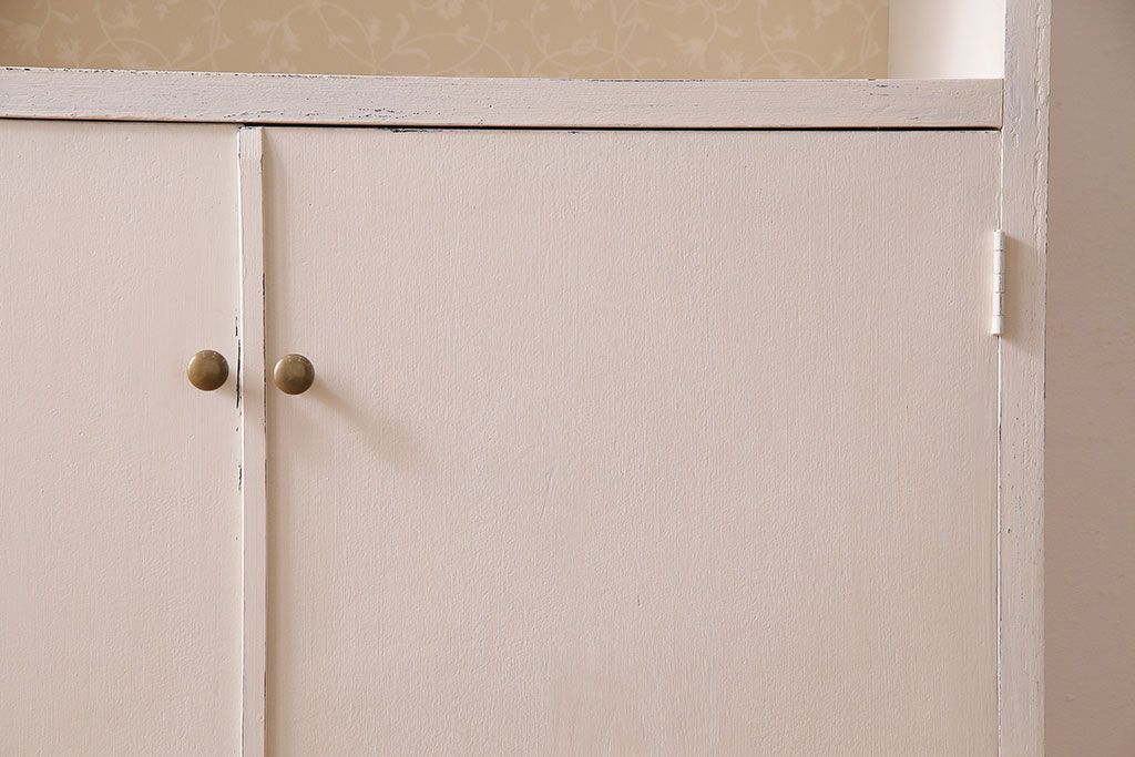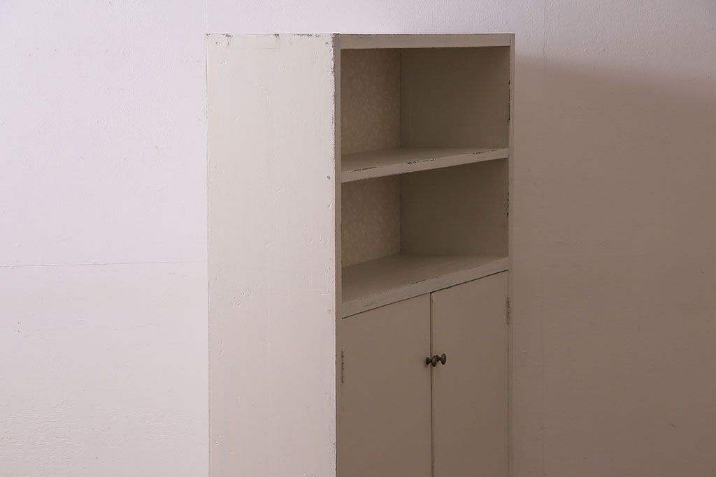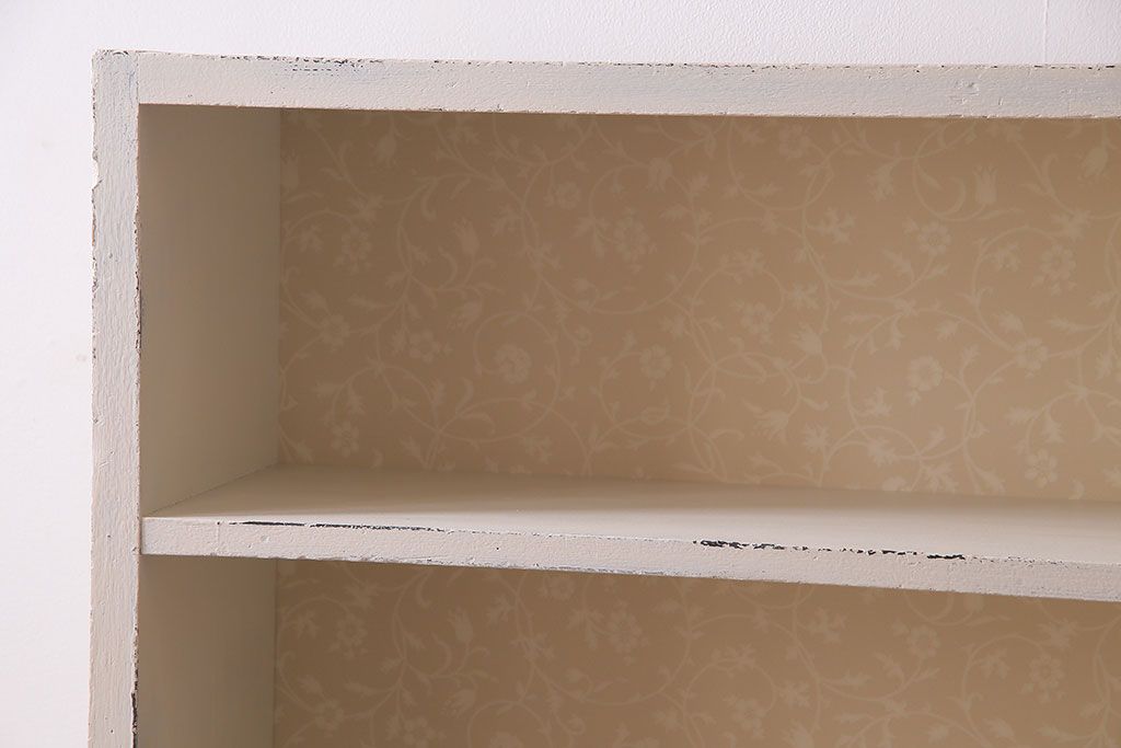 ラフジュ工房> オープンラック・シェルフ> 本棚 > ペイント家具 壁紙が可愛らしいレトロな収納棚(キャビネット、オープンラック、本棚)