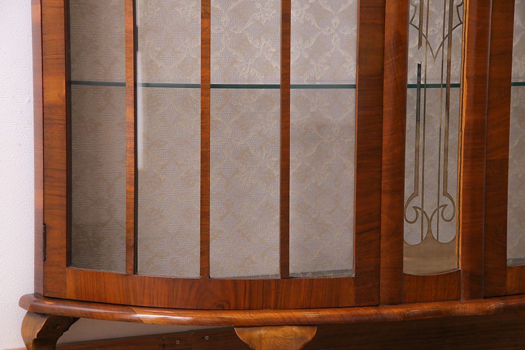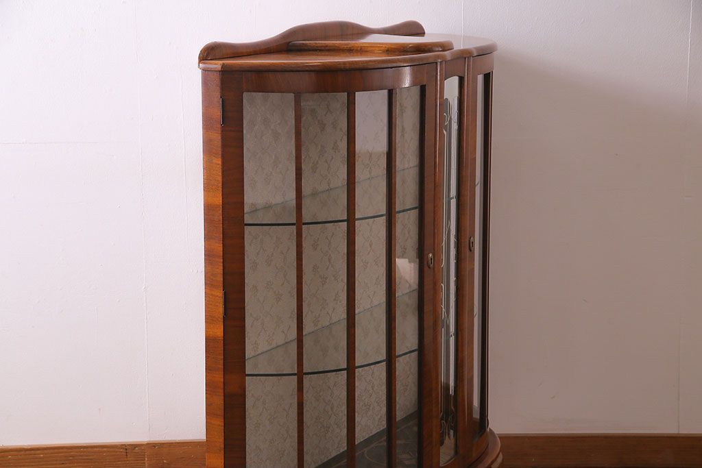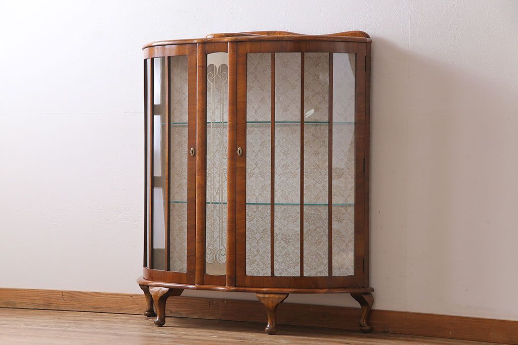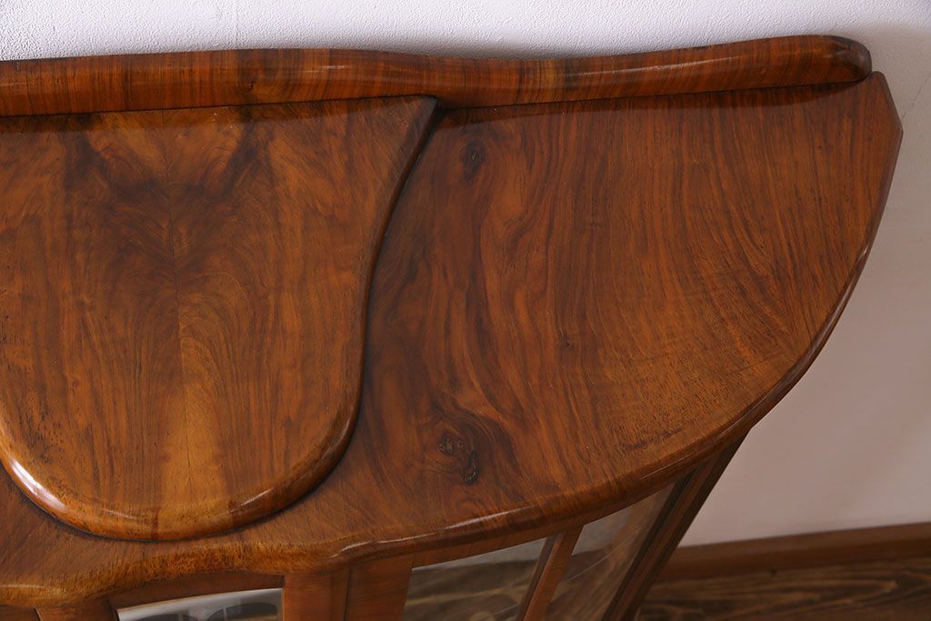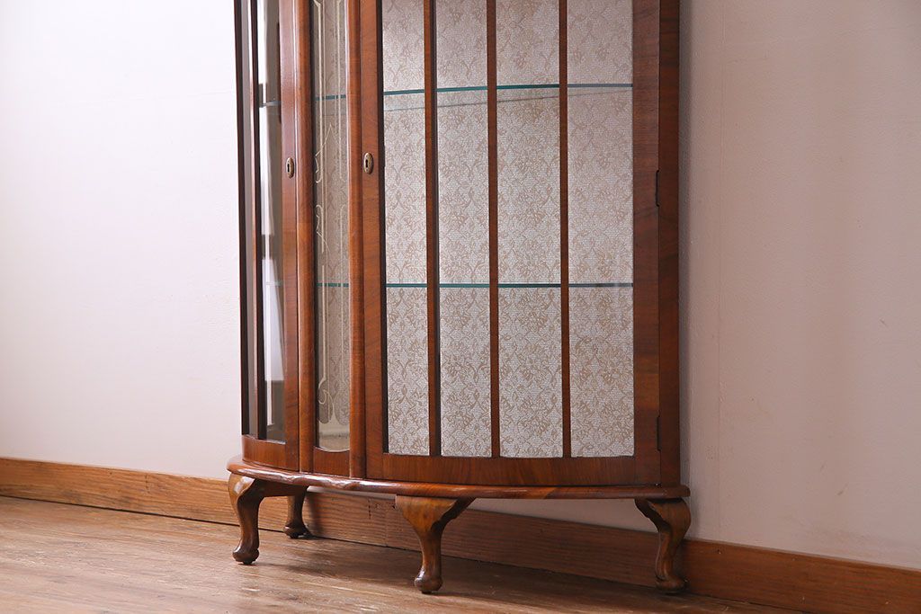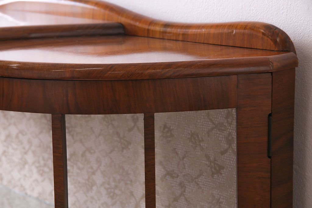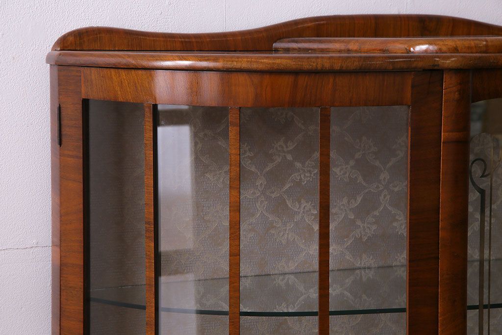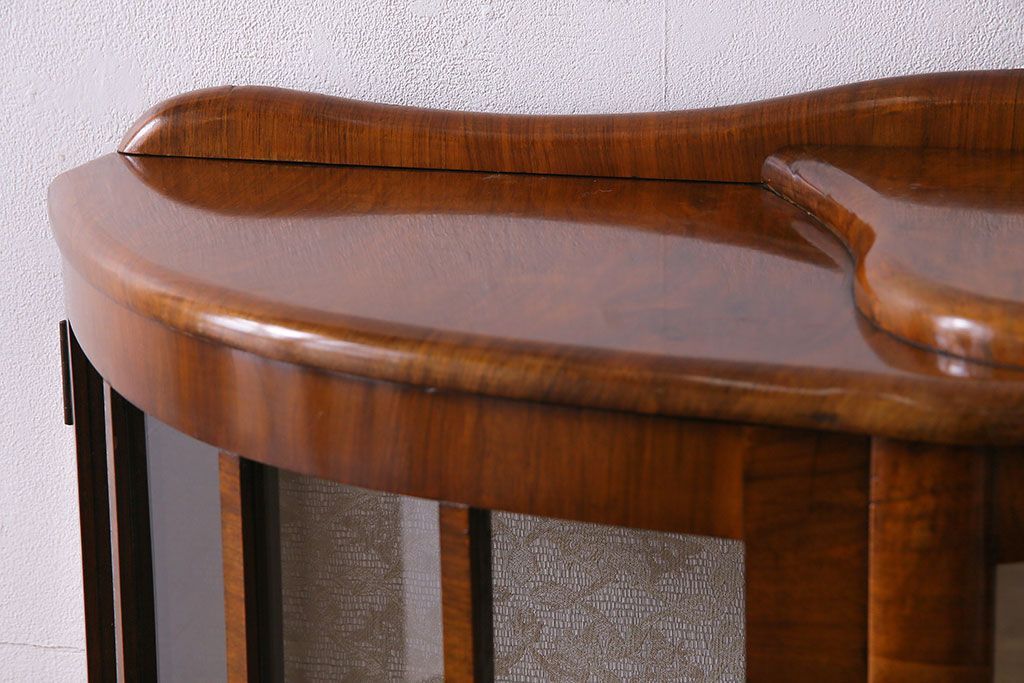 ラフジュ工房> ガラスケース・ショーケース> 半円型ショーケース > イギリス家具 ウォールナット材 ディスプレイを引き立てる気品漂うガラスケース(ガラスキャビネット、飾り棚、陳列棚)