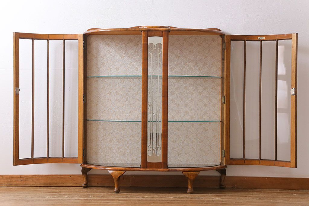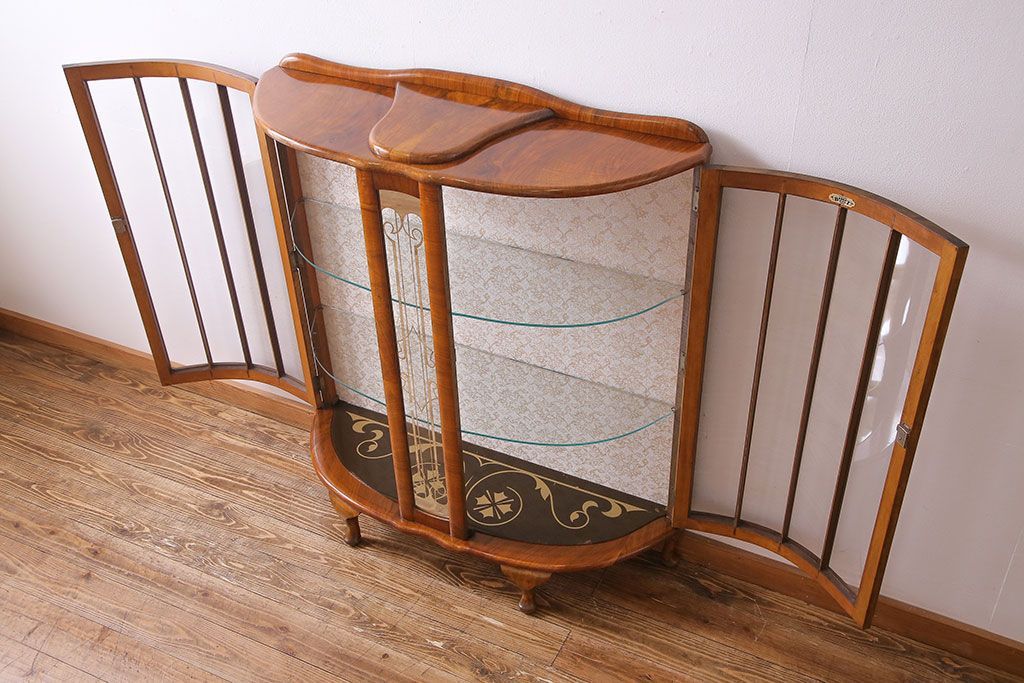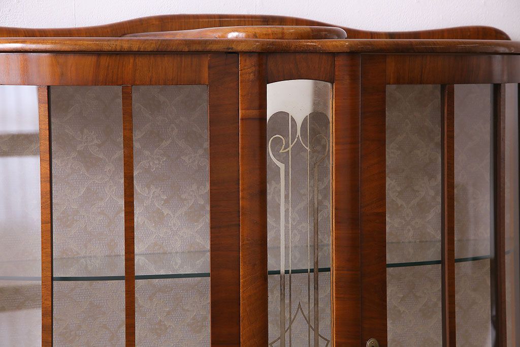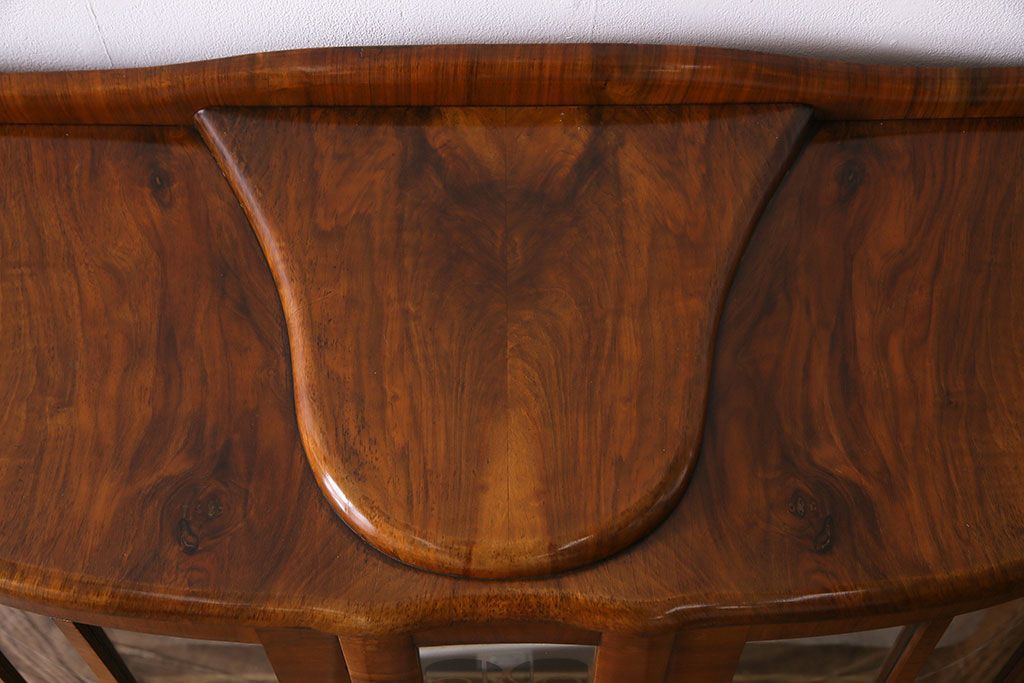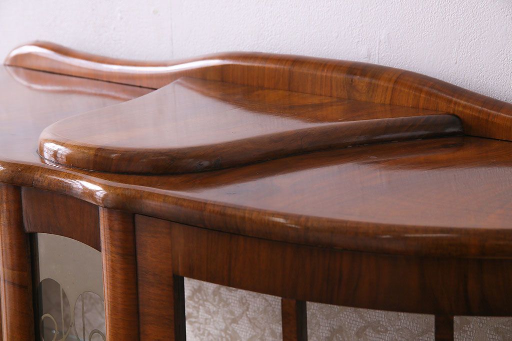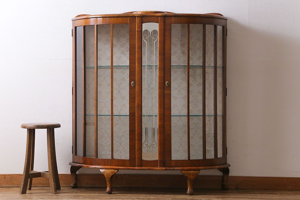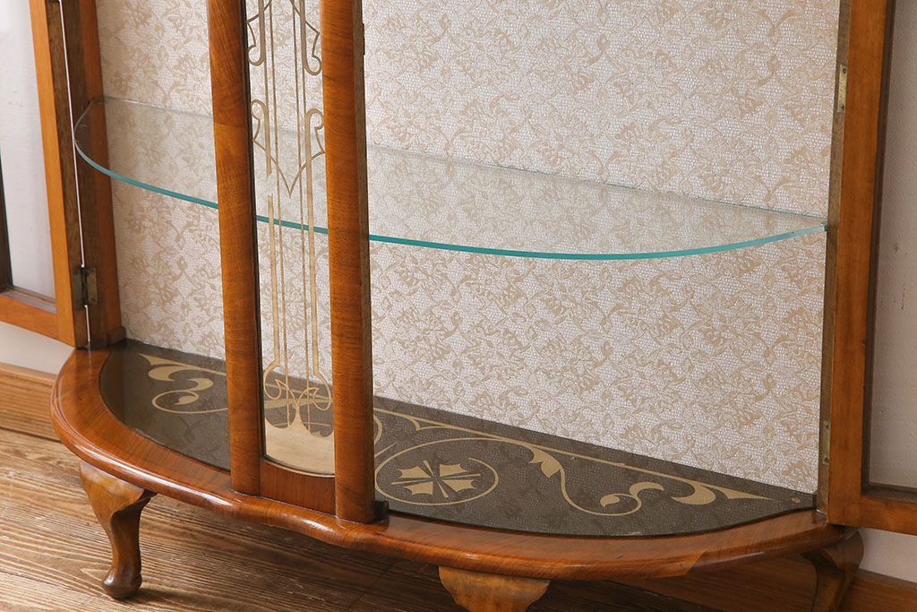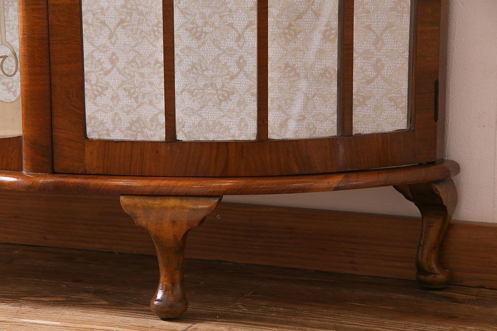 ラフジュ工房> ガラスケース・ショーケース> 半円型ショーケース > イギリス家具 ウォールナット材 ディスプレイを引き立てる気品漂うガラスケース(ガラスキャビネット、飾り棚、陳列棚)
