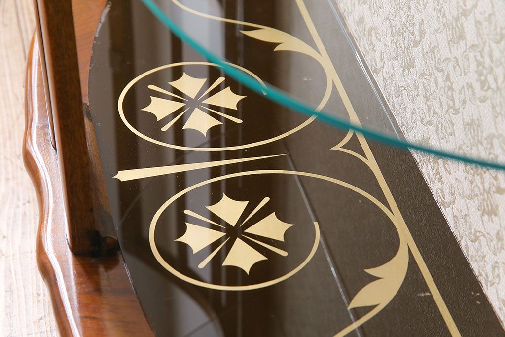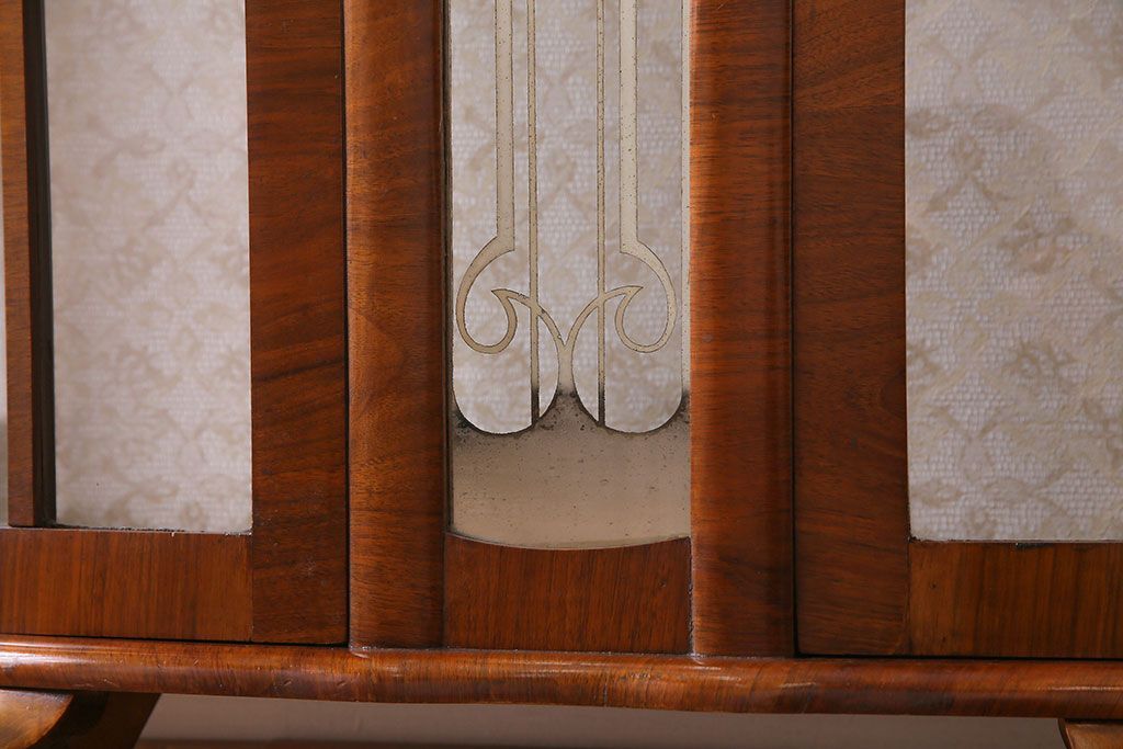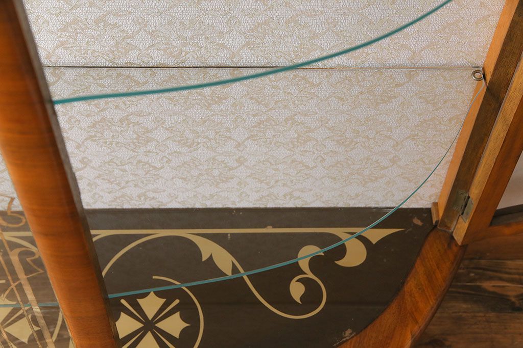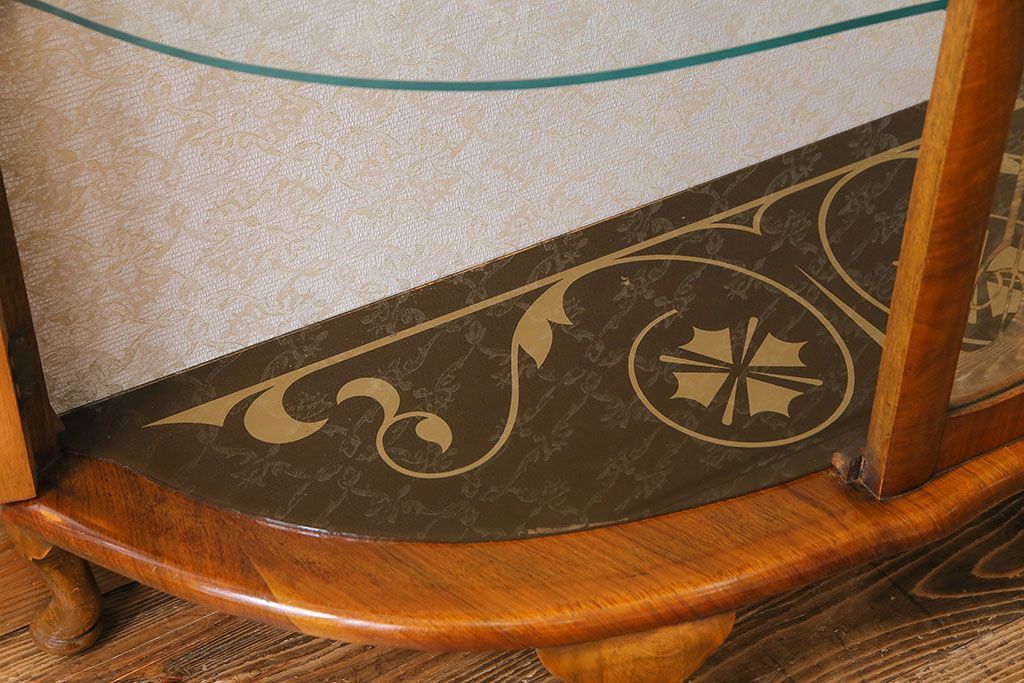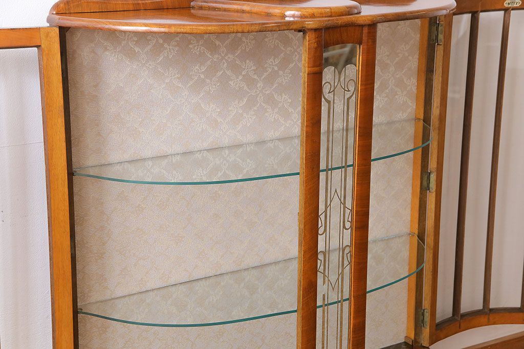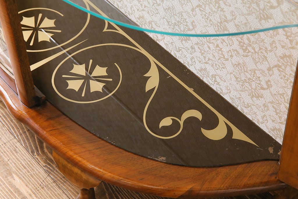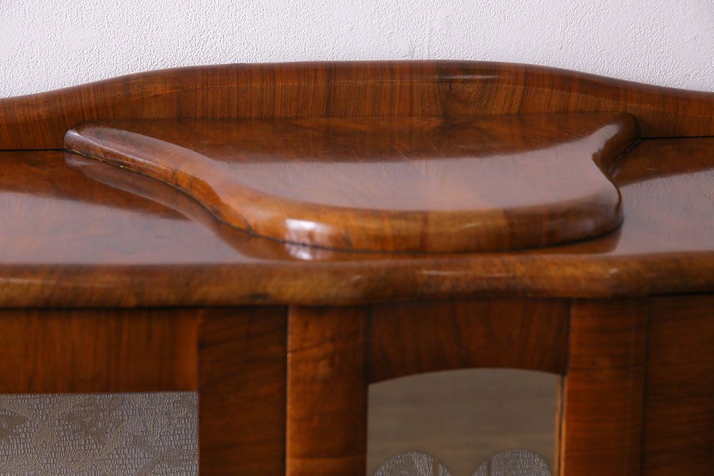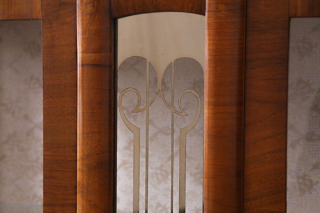 ラフジュ工房> ガラスケース・ショーケース> 半円型ショーケース > イギリス家具 ウォールナット材 ディスプレイを引き立てる気品漂うガラスケース(ガラスキャビネット、飾り棚、陳列棚)