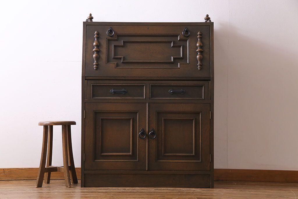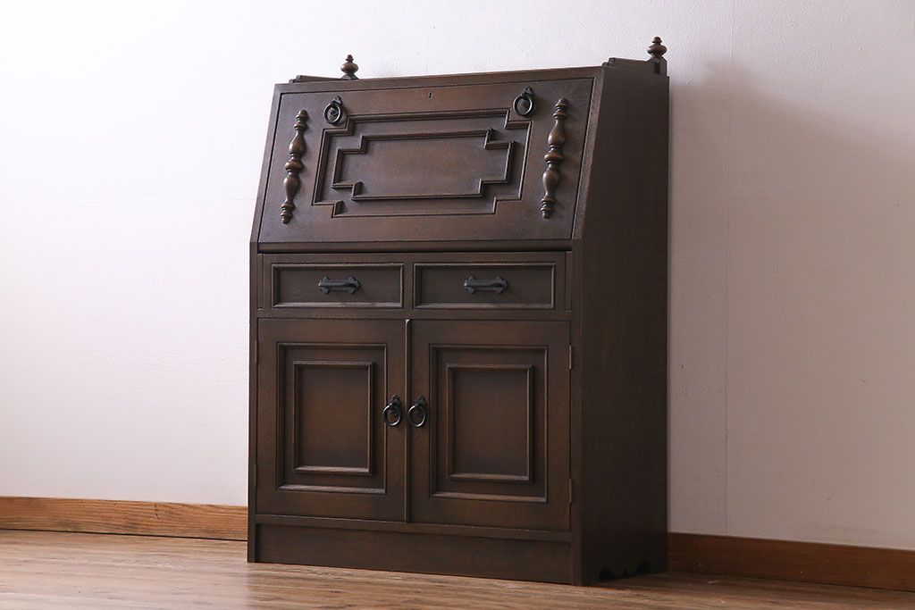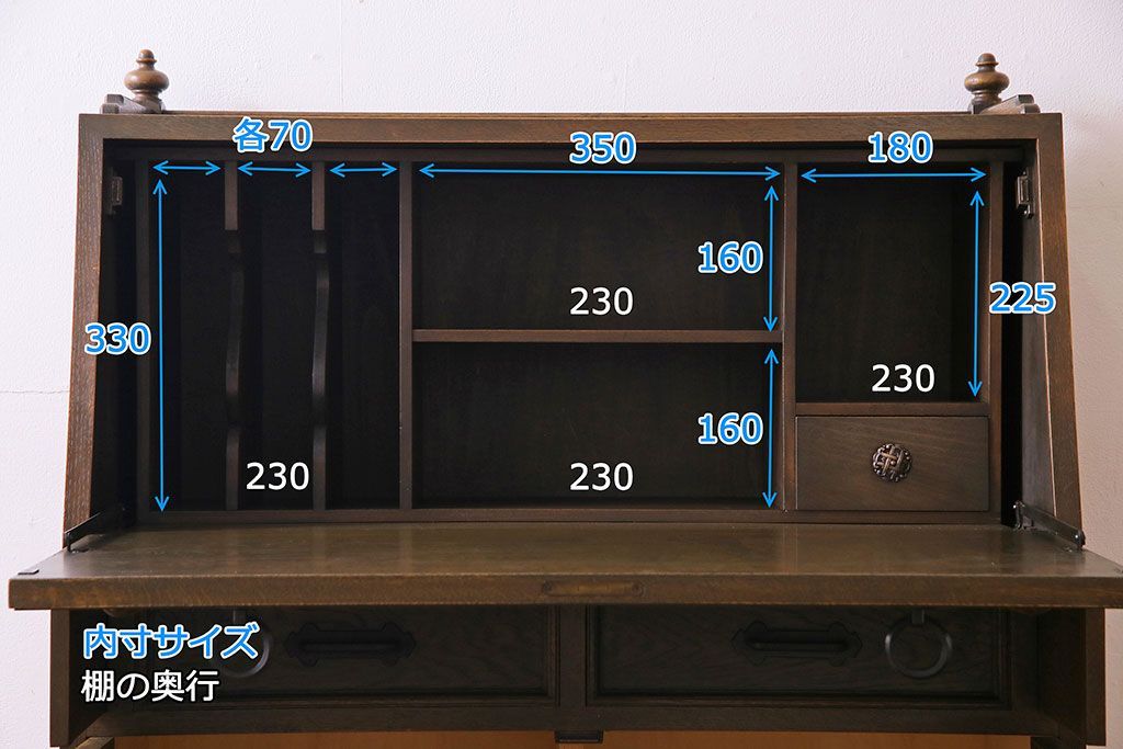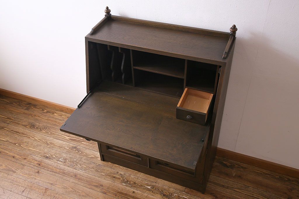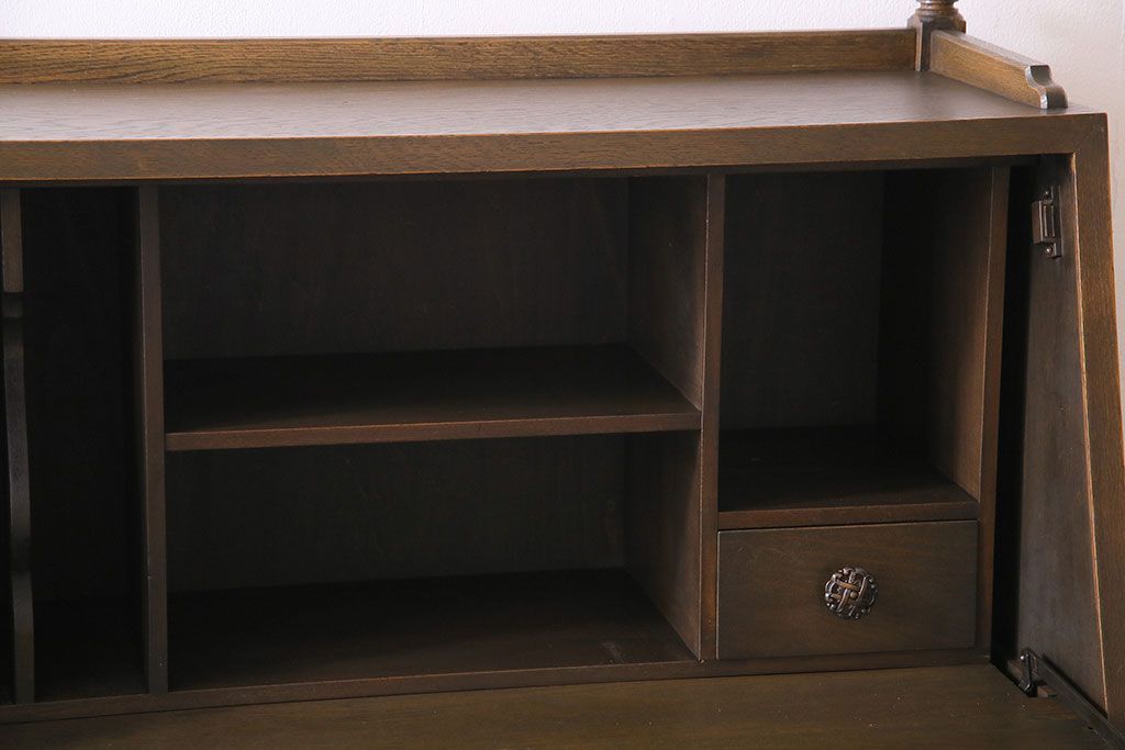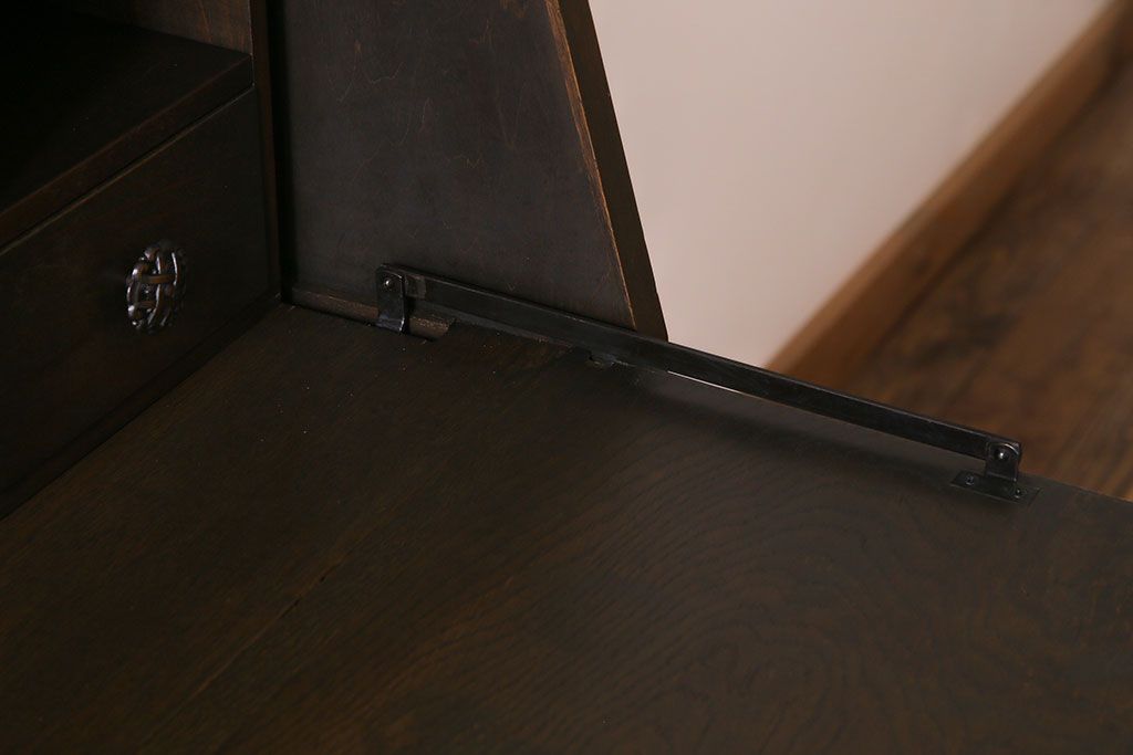 ラフジュ工房> 民芸家具 > 中古・希少品 神戸洋家具 永田良介商店 クリモノ付きライティングビューロー(ワークデスク、簿記机、在宅ワーク、在宅用デスク)(定価約56万円)