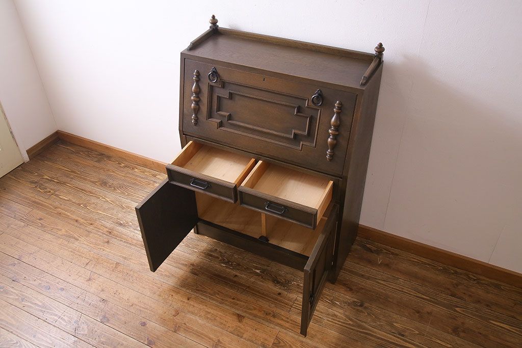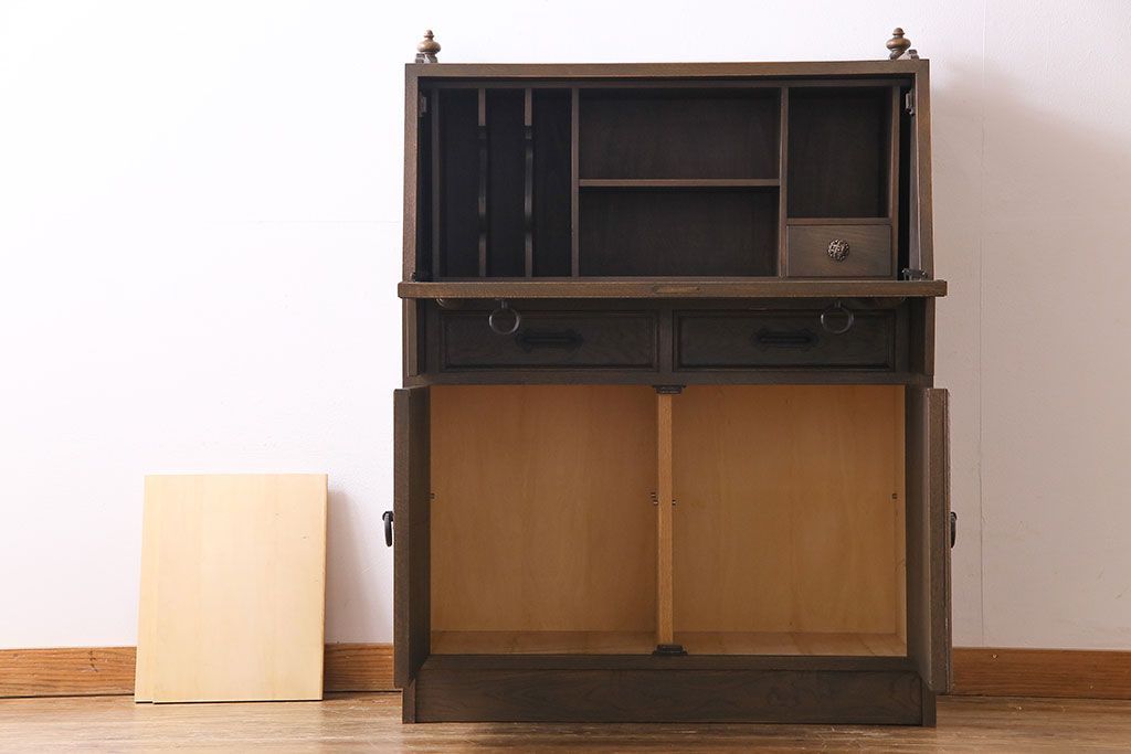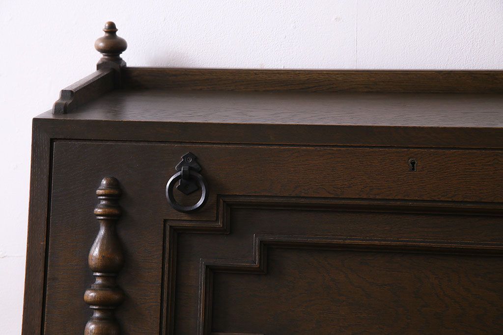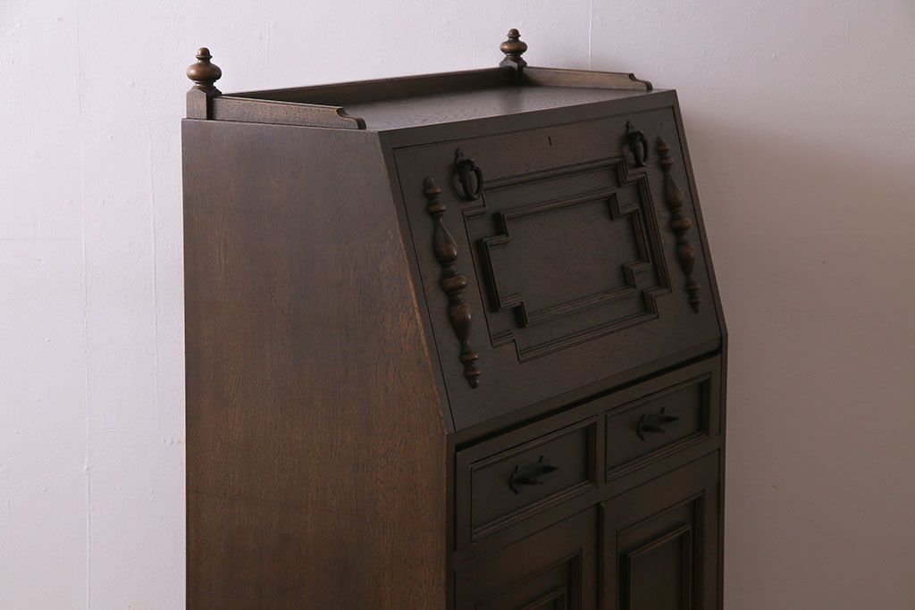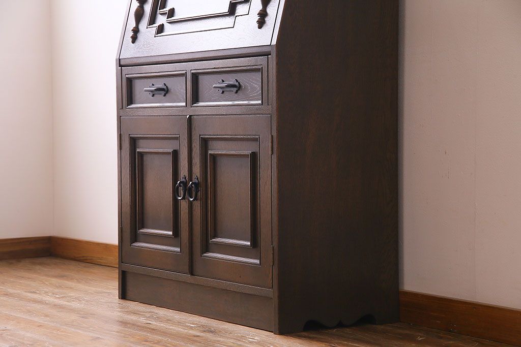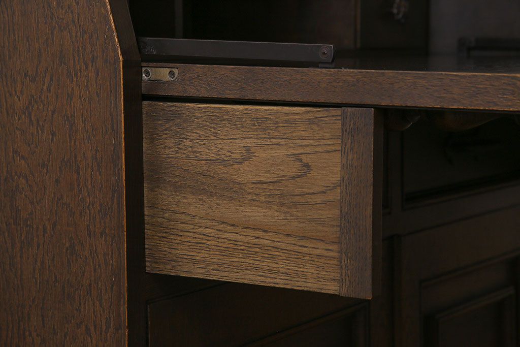 ラフジュ工房> 民芸家具 > 中古・希少品 神戸洋家具 永田良介商店 クリモノ付きライティングビューロー(ワークデスク、簿記机、在宅ワーク、在宅用デスク)(定価約56万円)