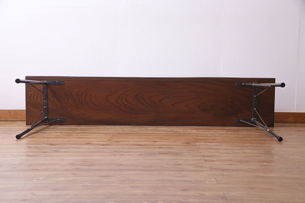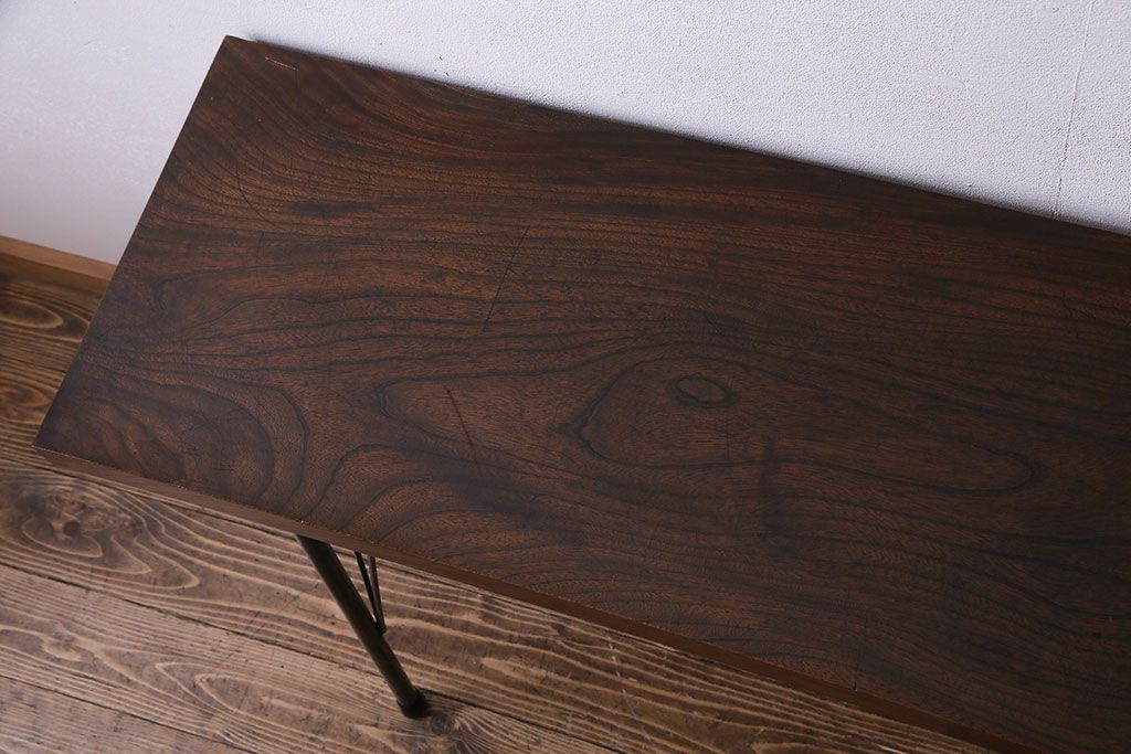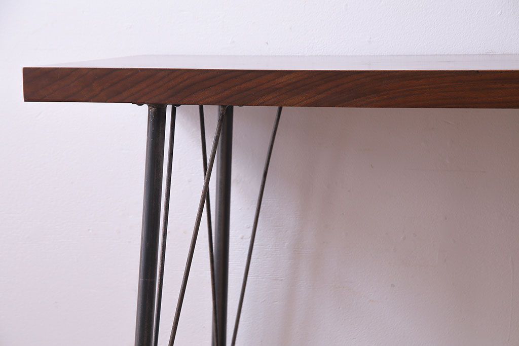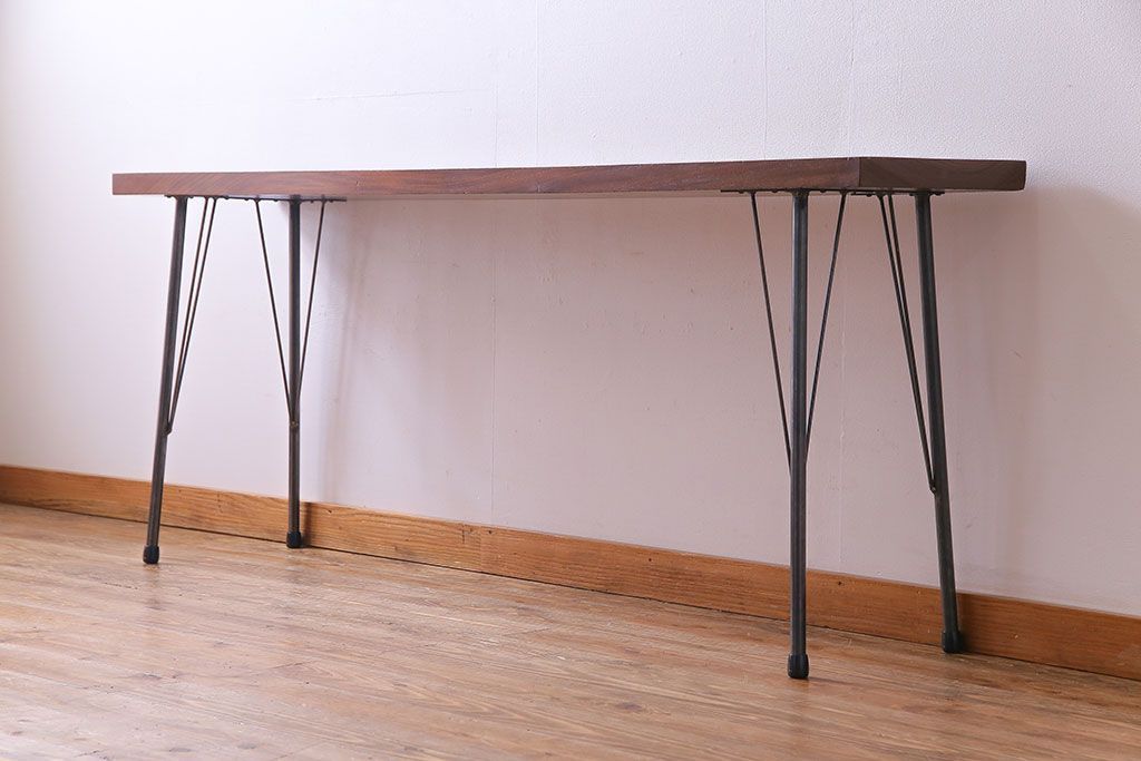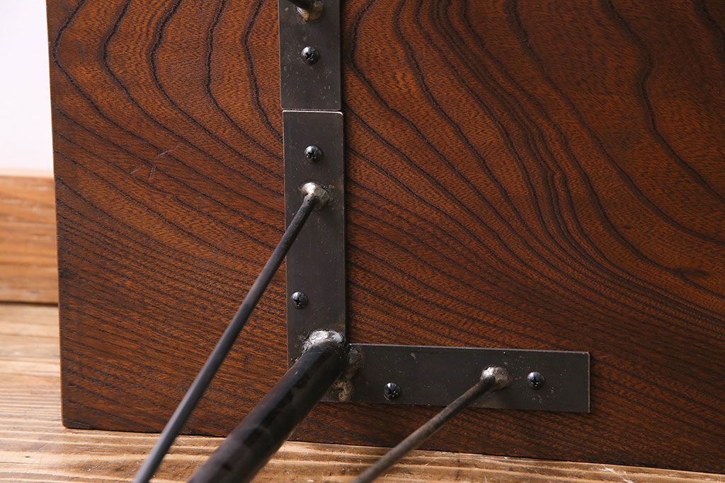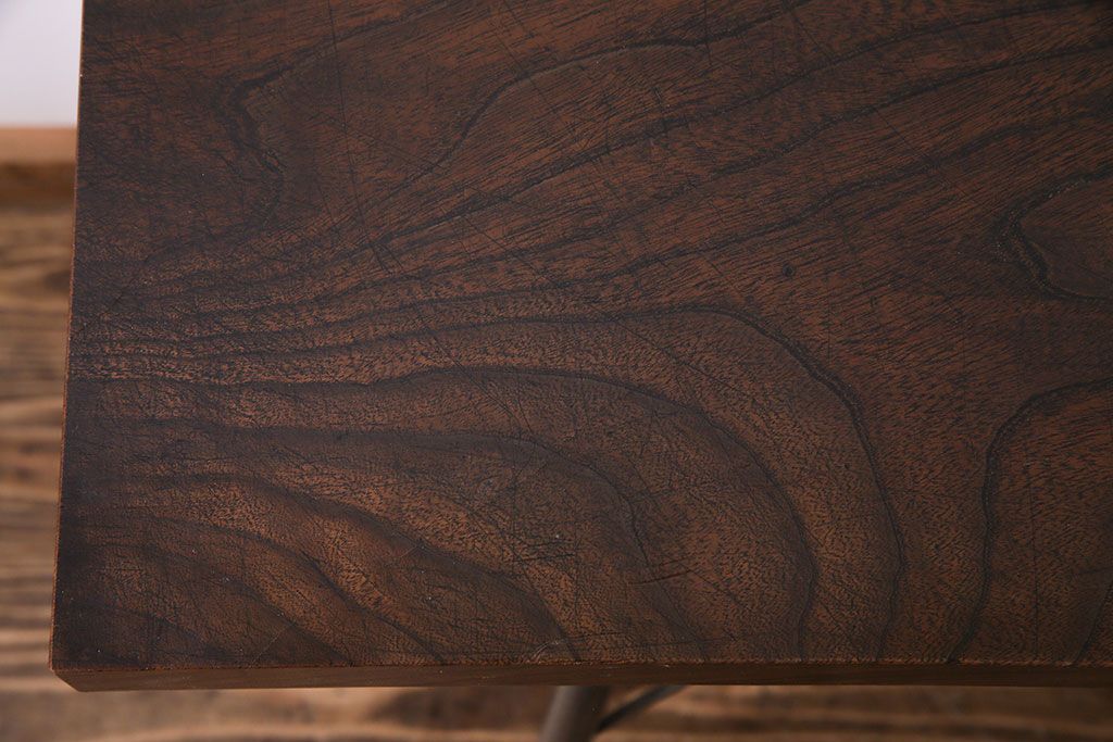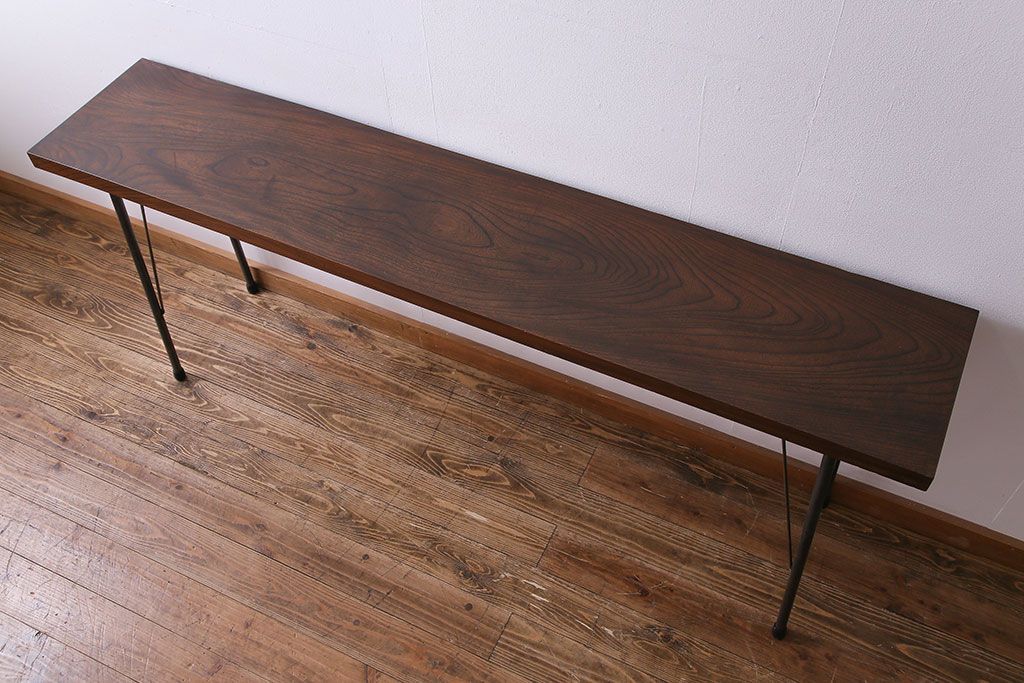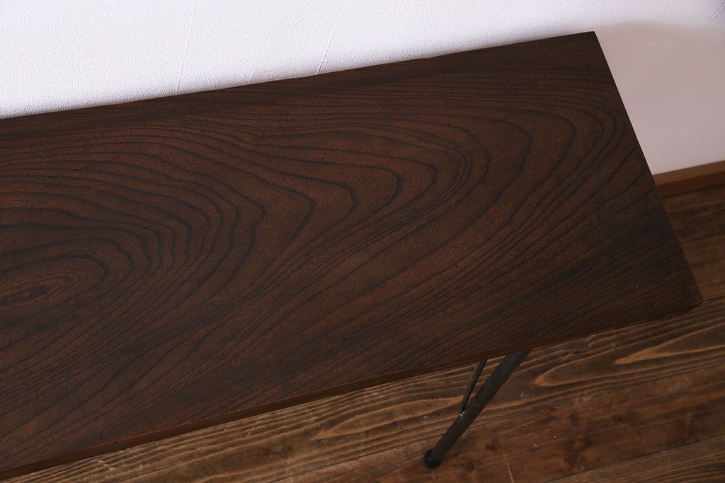 古材リメイク 天板ケヤキ材 ダイナミックな木目の鉄脚テーブル(作業台、コンソールテーブル)