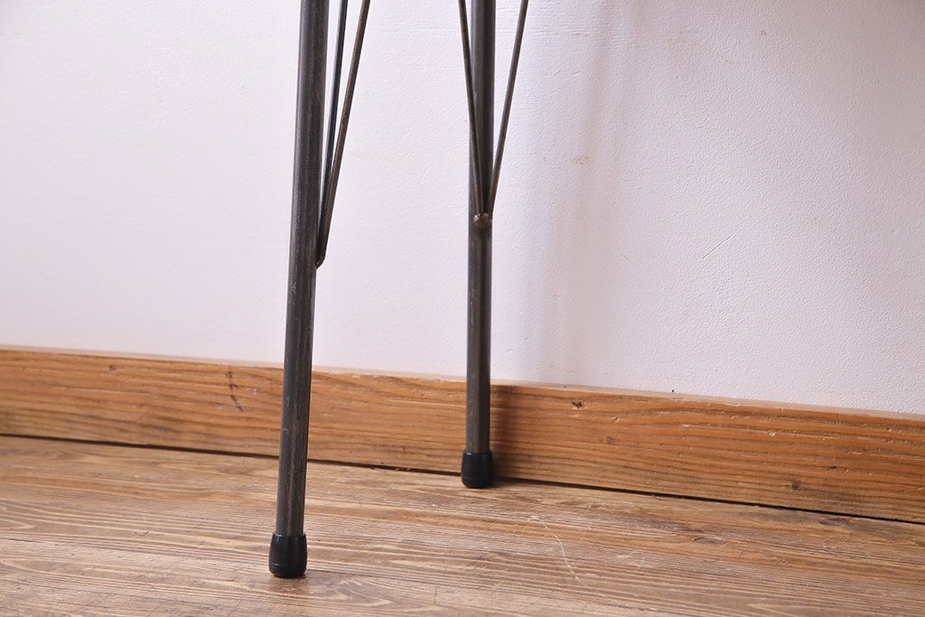 メインの太い脚と、そこから伸びる2本のスリムな脚の合計3本で一角を支えているため安定感があります。ぐらつきもなくしっかりとしておりますのでご安心ください。脚はねじ止めです、取り外して2口で発送となります。お客様での組み立てをお願いいたします。