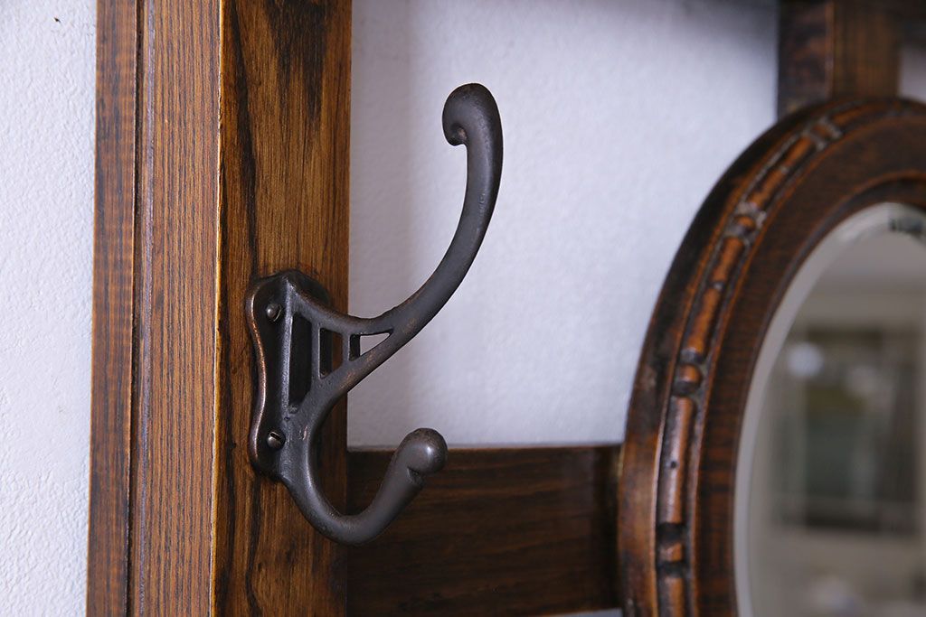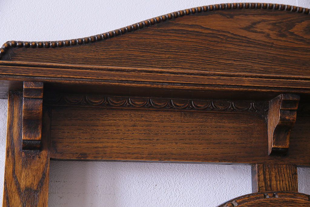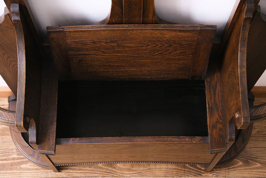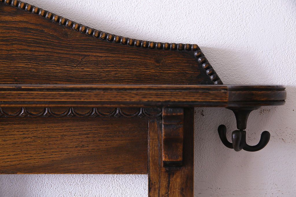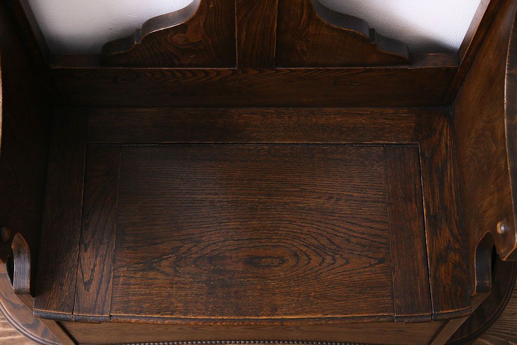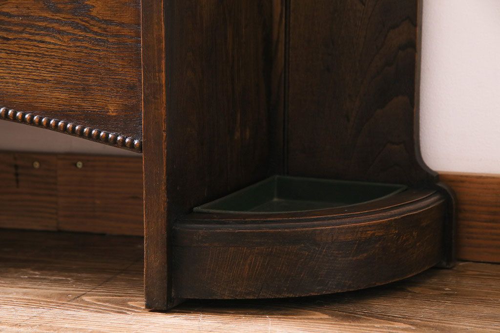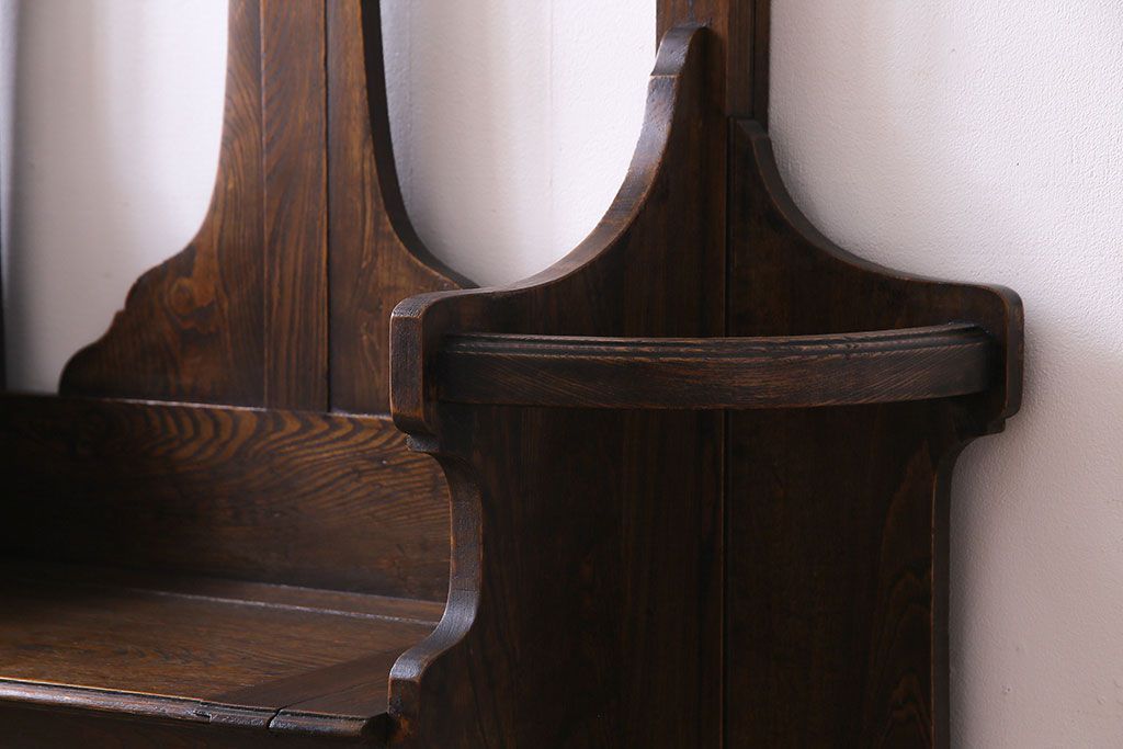 アンティーク雑貨 イギリスアンティーク オーク材 重厚感を放つ機能的なベンチ付きホールスタンド(傘立て、コート掛け)