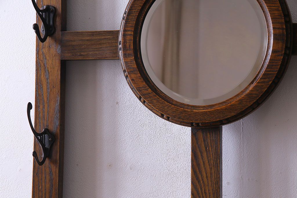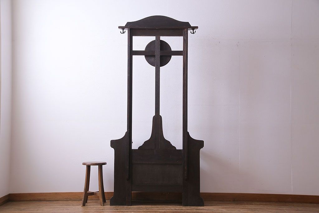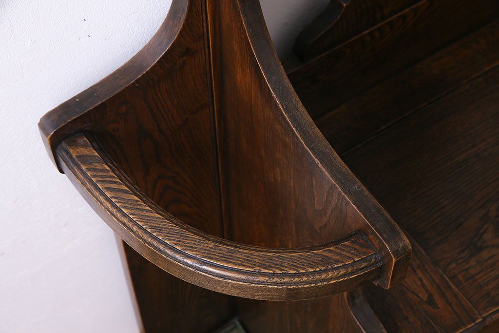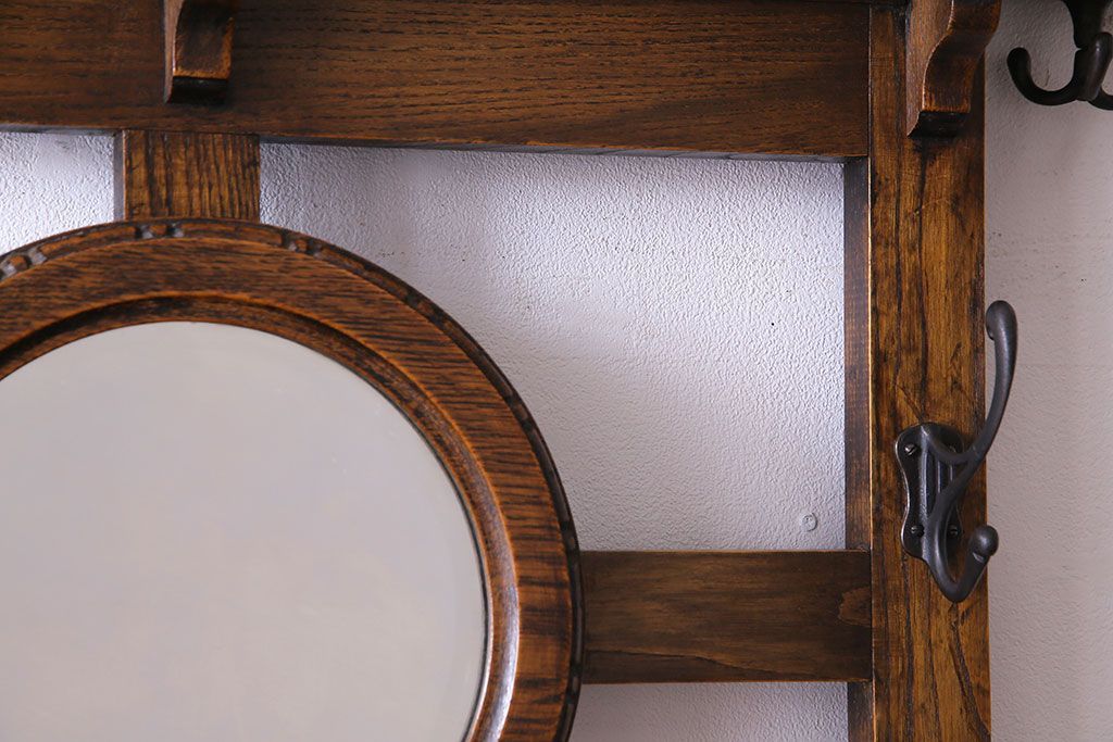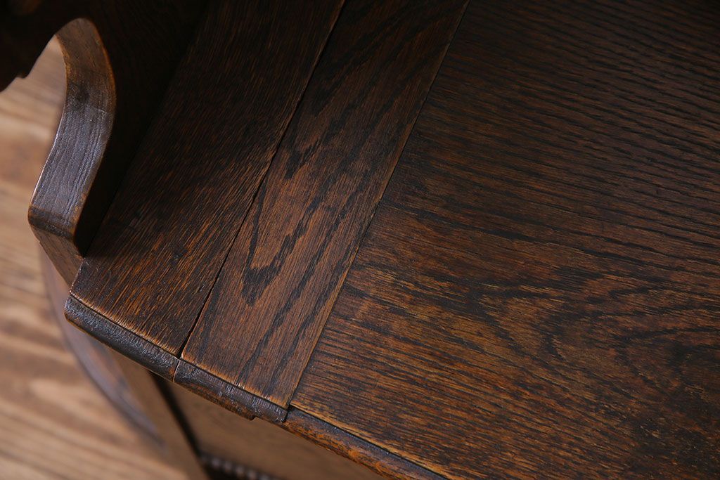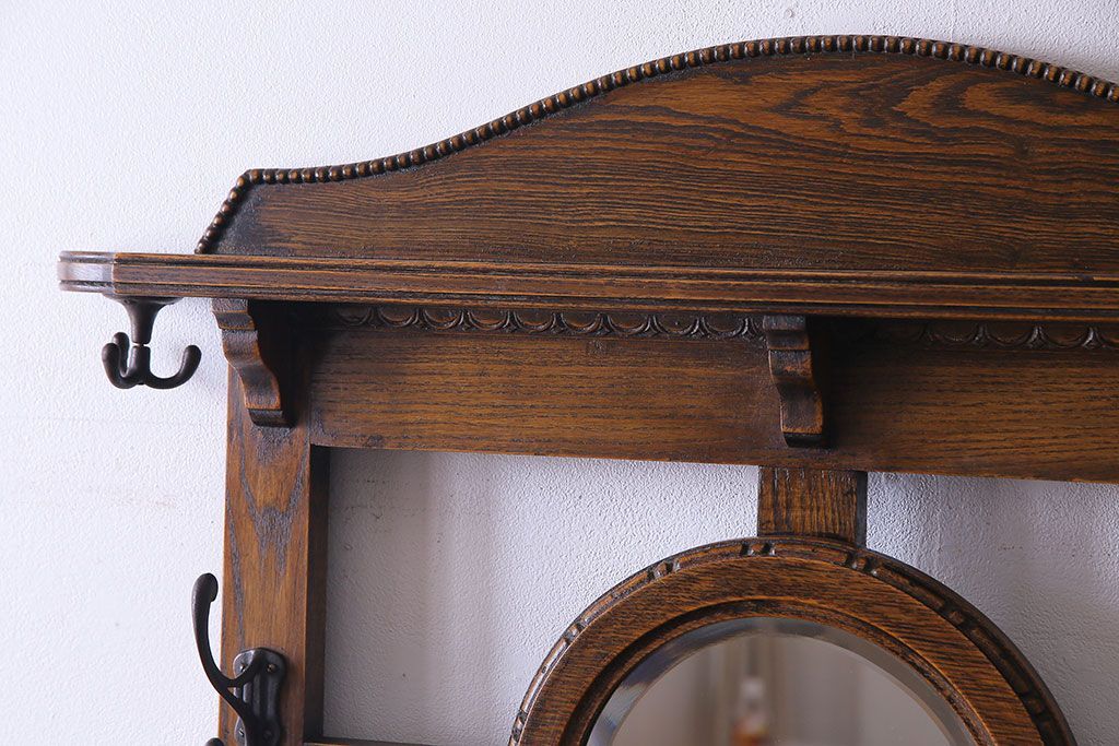 アンティーク雑貨 イギリスアンティーク オーク材 重厚感を放つ機能的なベンチ付きホールスタンド(傘立て、コート掛け)