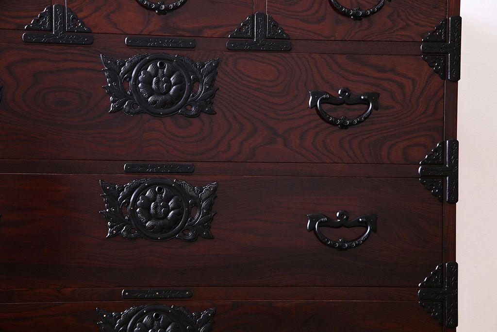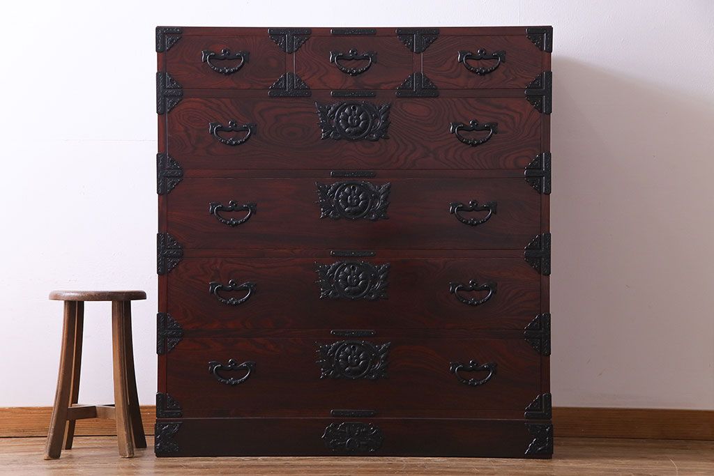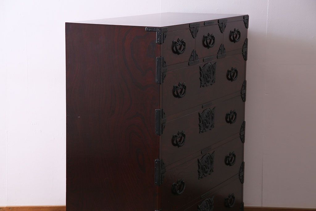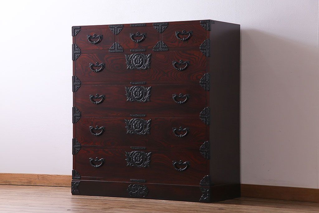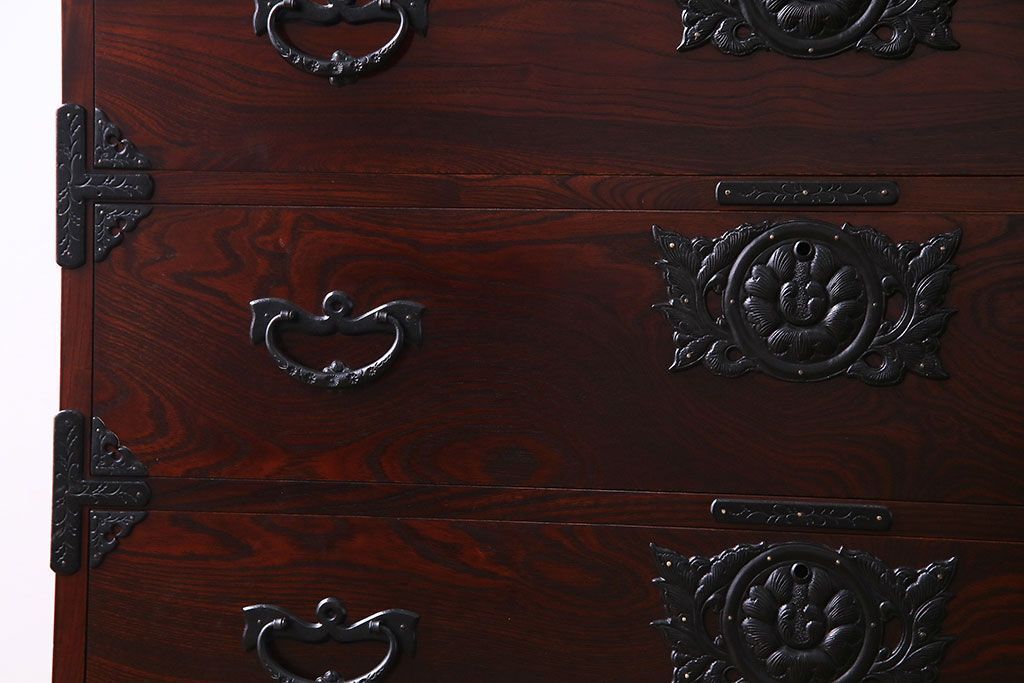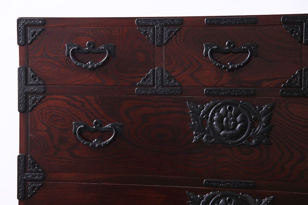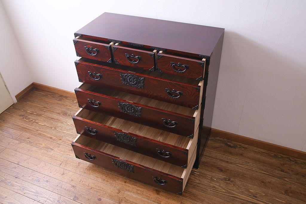 ラフジュ工房> チェスト・引き出し> サイドチェスト > 中古 伝統民芸家具 岩谷堂箪笥 三尺五寸三つ割 五段整理箪笥(チェスト、衣装箪笥、引き出し)