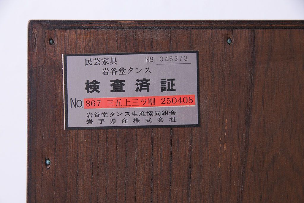 ラフジュ工房> 和箪笥> 衣装箪笥 > 中古 伝統民芸家具 岩谷堂箪笥 三尺五寸三つ割 五段整理箪笥(チェスト、衣装箪笥、引き出し)