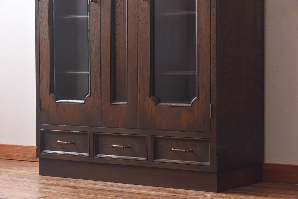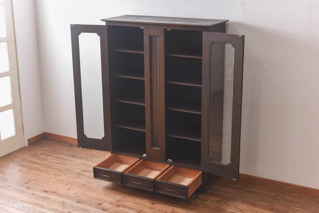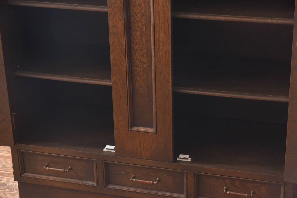 ラフジュ工房> キャビネット・戸棚> 本箱 > ビンテージ 神戸洋家具 永田良介商店製 落ち着いた深い色合いの戸棚(食器棚、収納棚、本箱)