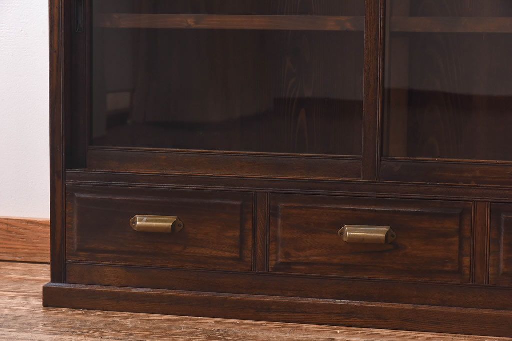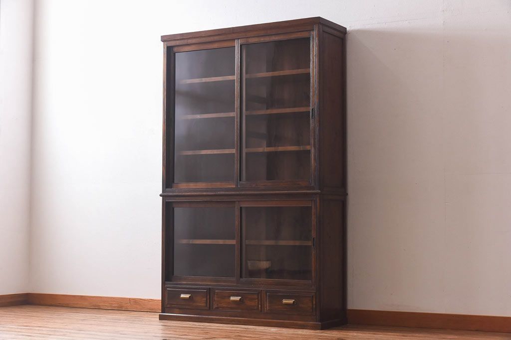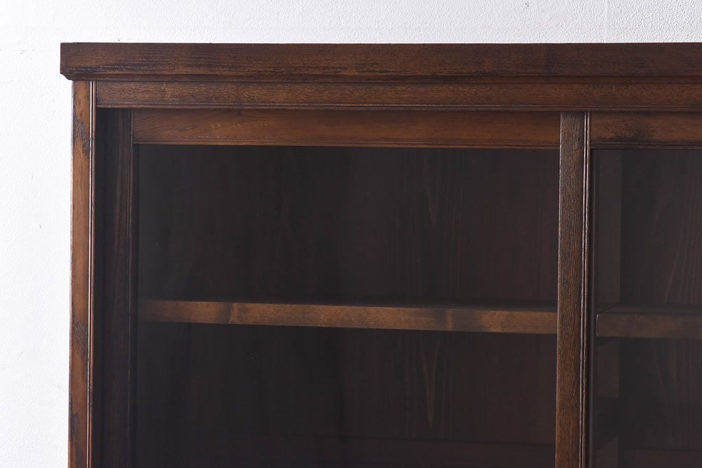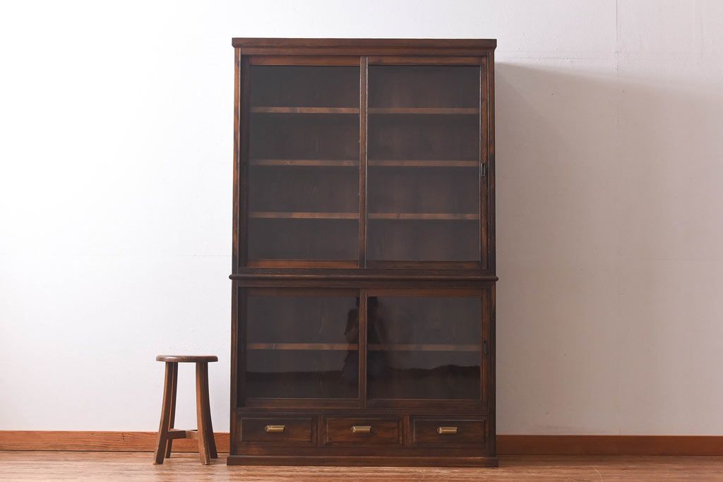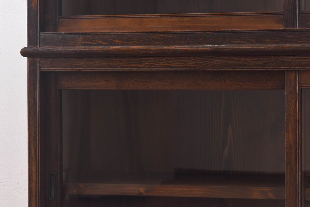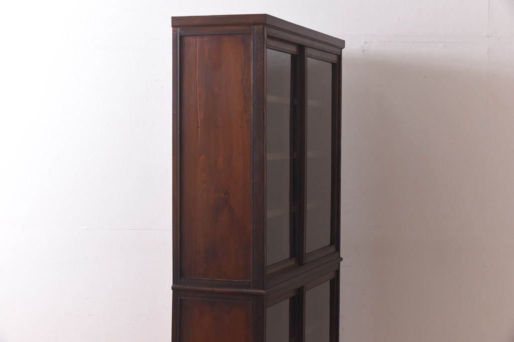 アンティーク家具 和製アンティーク 栗材製 堂々とした佇まいが魅力のガラス戸棚(ガラスケース、収納棚)