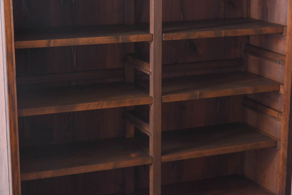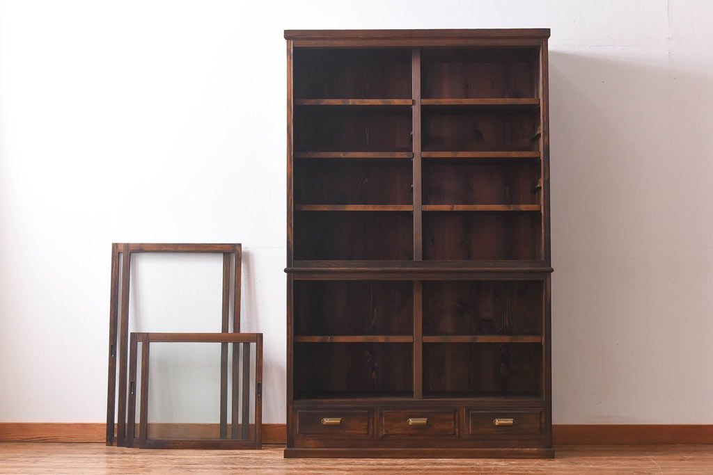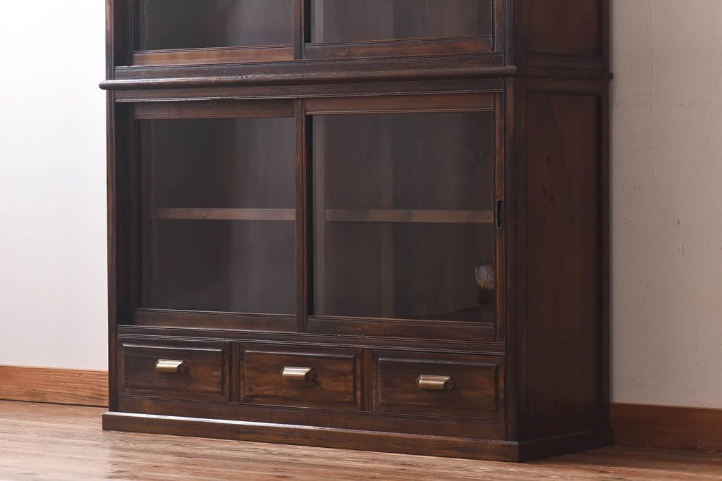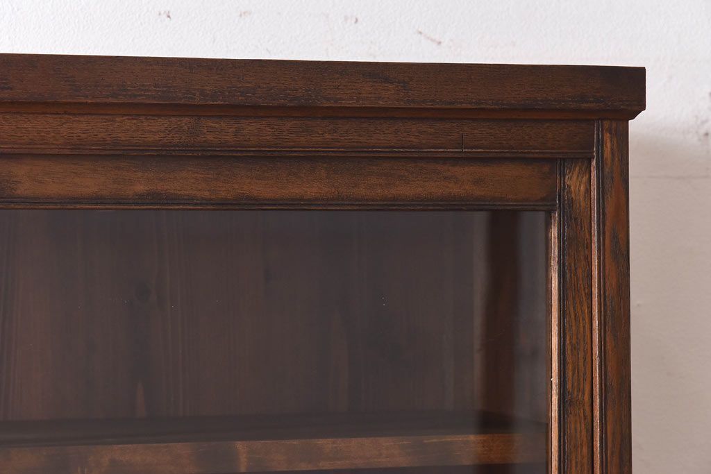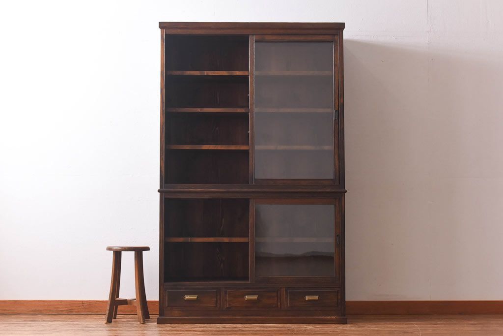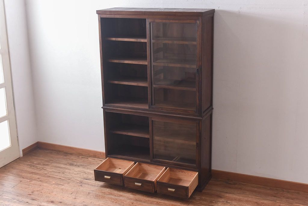 アンティーク家具 和製アンティーク 栗材製 堂々とした佇まいが魅力のガラス戸棚(ガラスケース、収納棚)