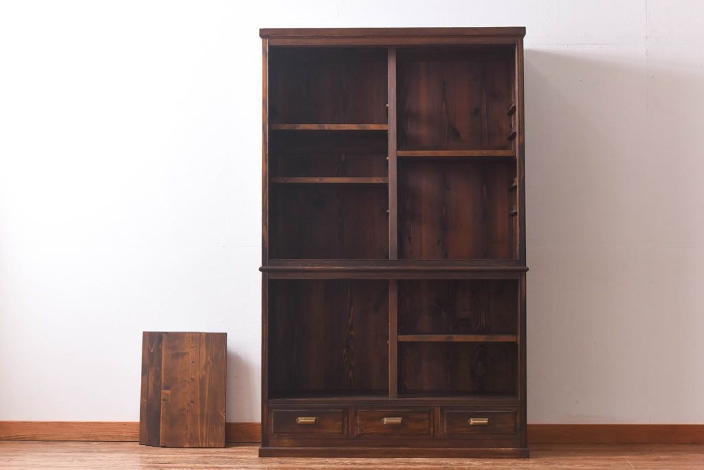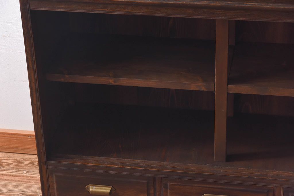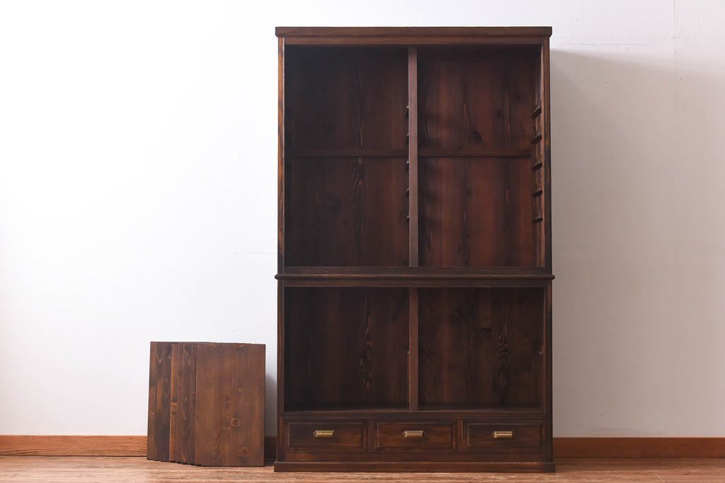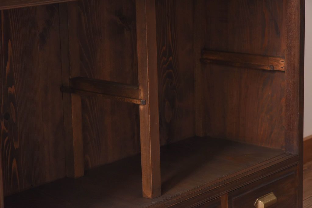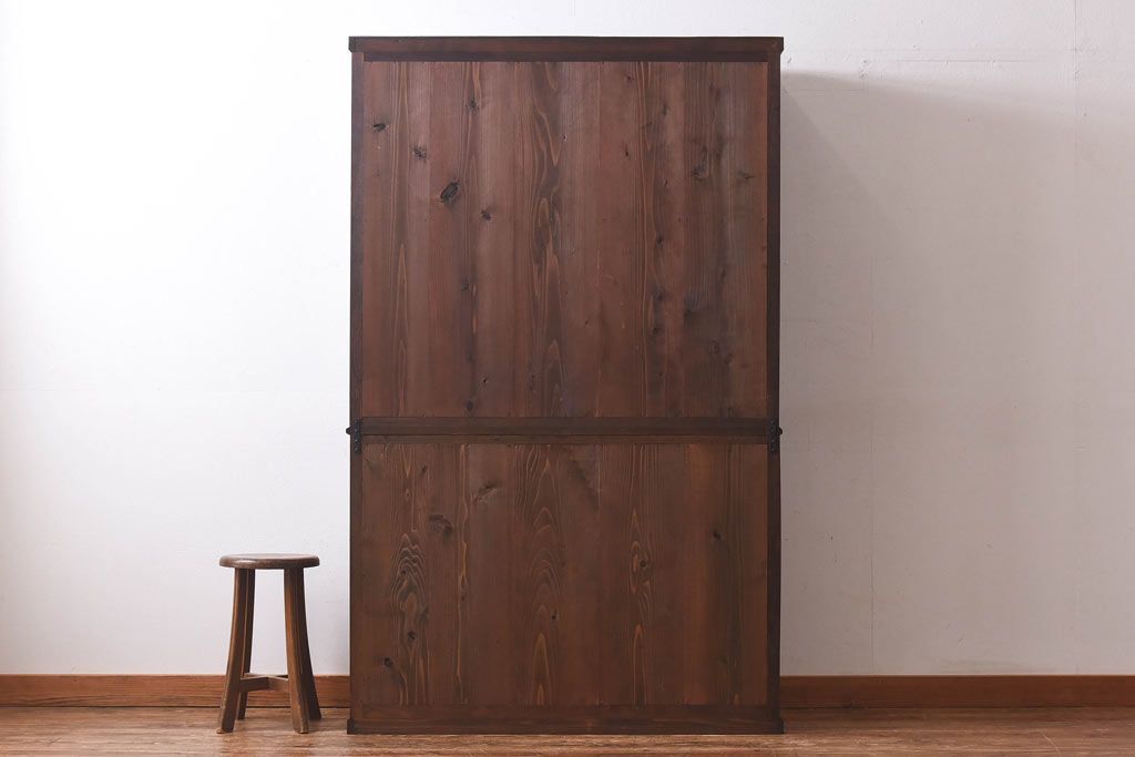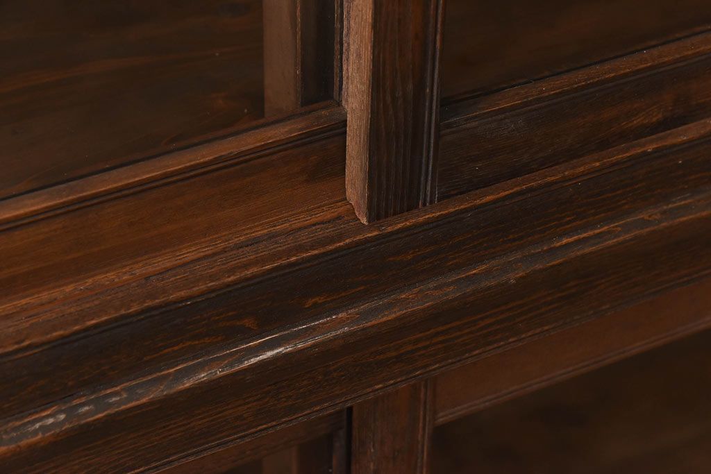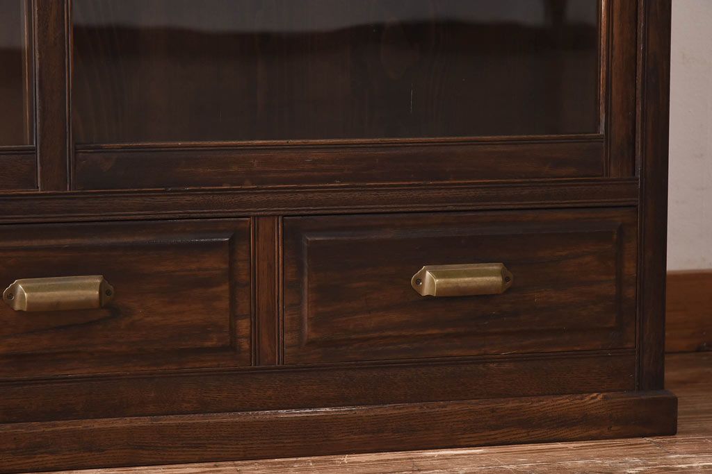 和製アンティーク 栗材製 堂々とした佇まいが魅力のガラス戸棚(ガラスケース、収納棚)です。