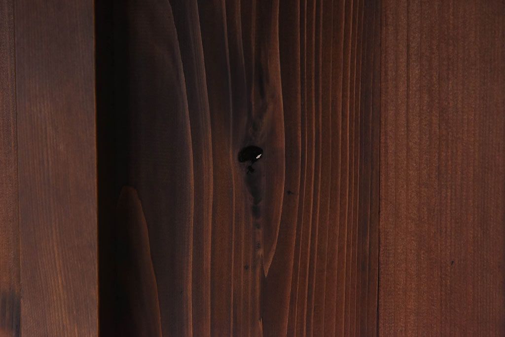 10枚目の画像にありますように背板に節による穴があります。貫通しており、上段の棚板3段目内部からも穴が確認できます。ご理解の上お願いします。