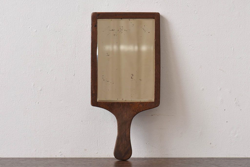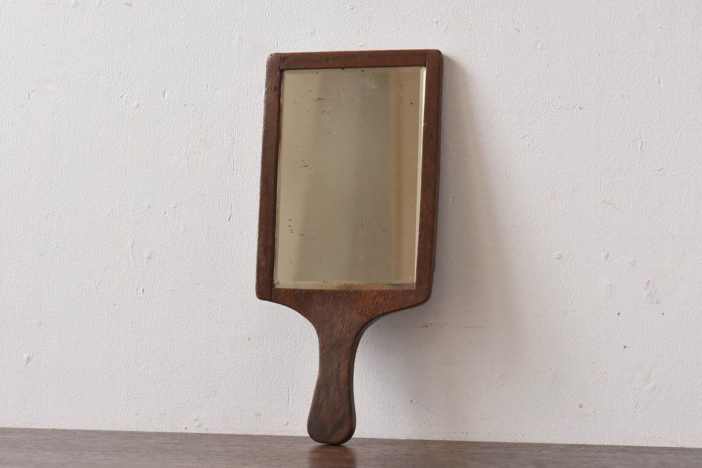 アンティーク雑貨 昭和レトロ 古い木の質感が味わい深い手鏡(鏡)