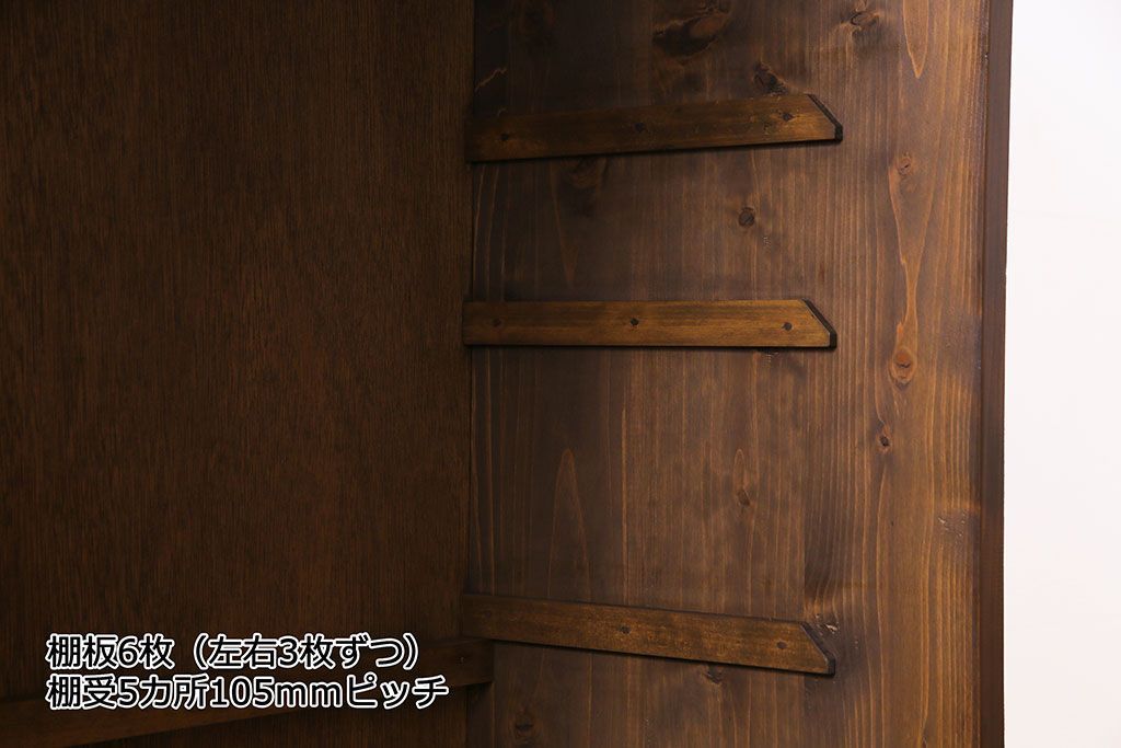 ラフジュ工房オリジナル 古い建具を活かしたガラス戸棚(食器棚、収納棚、陳列棚、キッチンボード)(2)