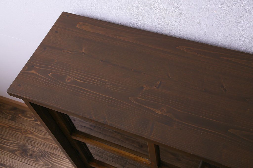 ラフジュ工房> 店舗什器 > ラフジュ工房オリジナル 古い建具を活かしたガラス戸棚(食器棚、収納棚、陳列棚、キッチンボード)(2)