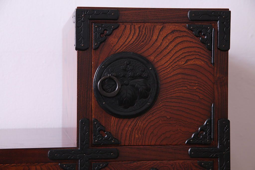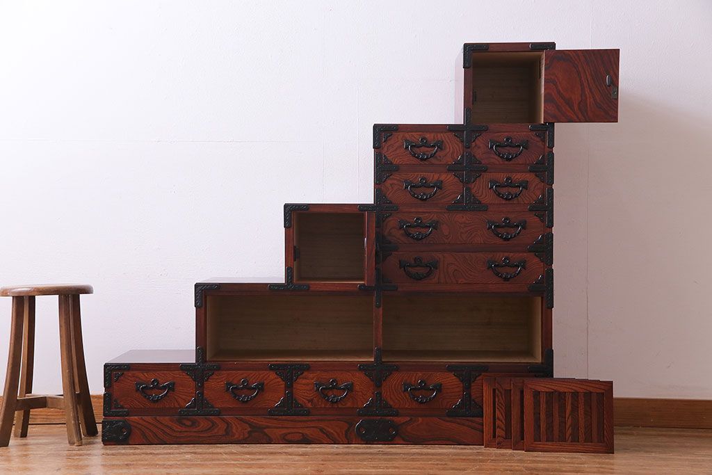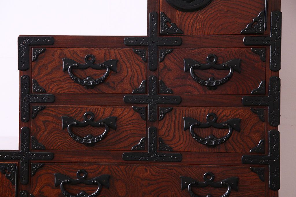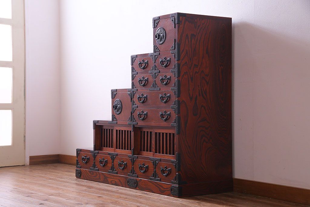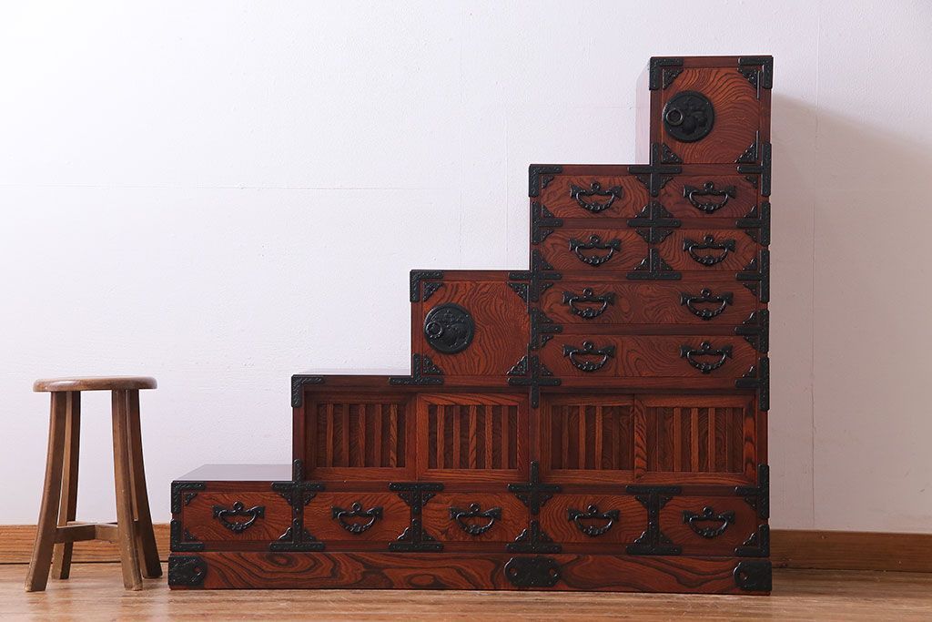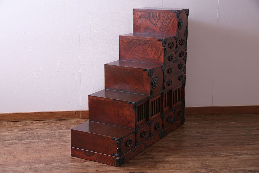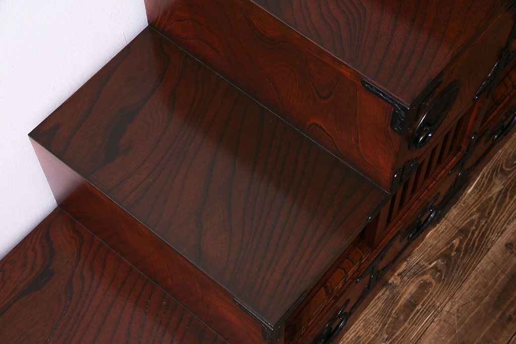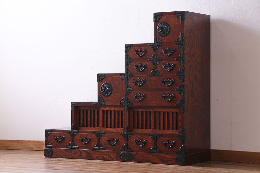 ラフジュ工房> 和箪笥> 階段箪笥 > 中古 岩谷堂箪笥 桐紋様 かくし付き No.886 階段タンス5段(階段箪笥、和タンス)(定価約72万円)