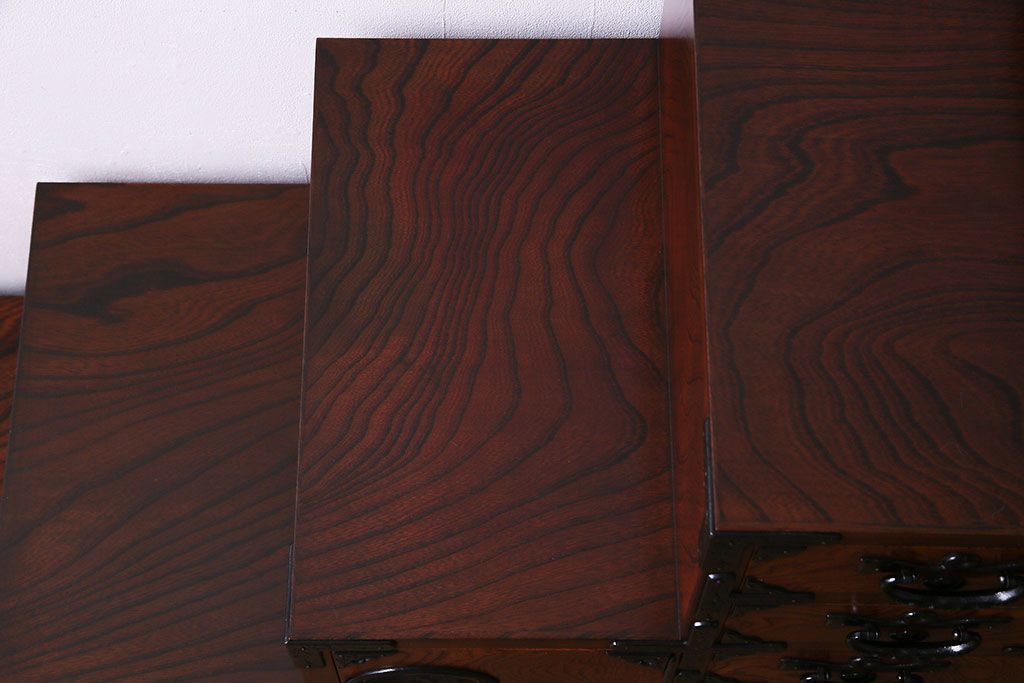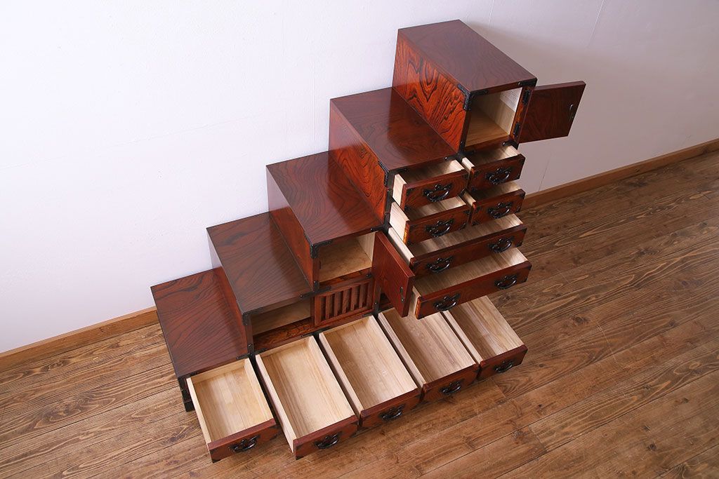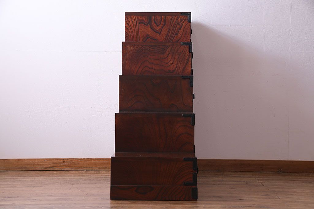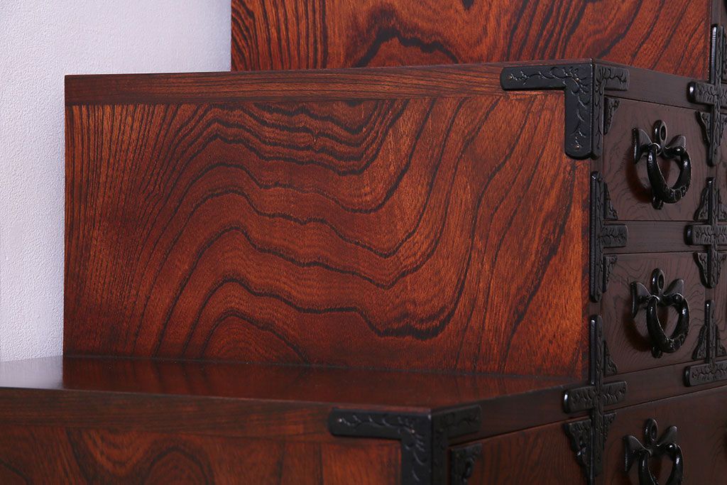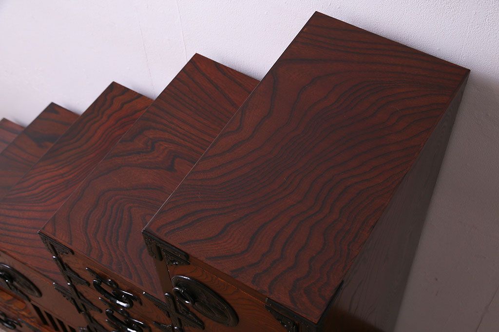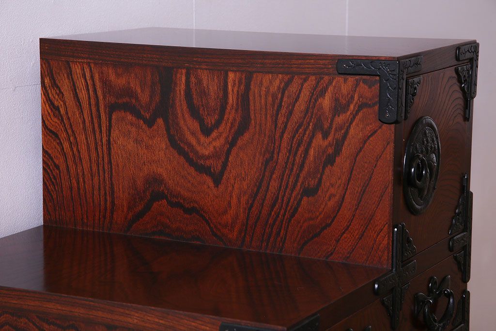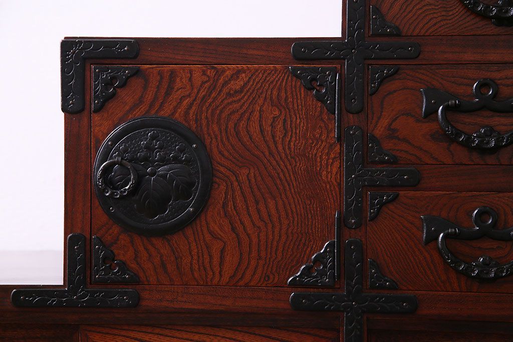 ラフジュ工房> 和箪笥 > 中古 岩谷堂箪笥 桐紋様 かくし付き No.886 階段タンス5段(階段箪笥、和タンス)(定価約72万円)