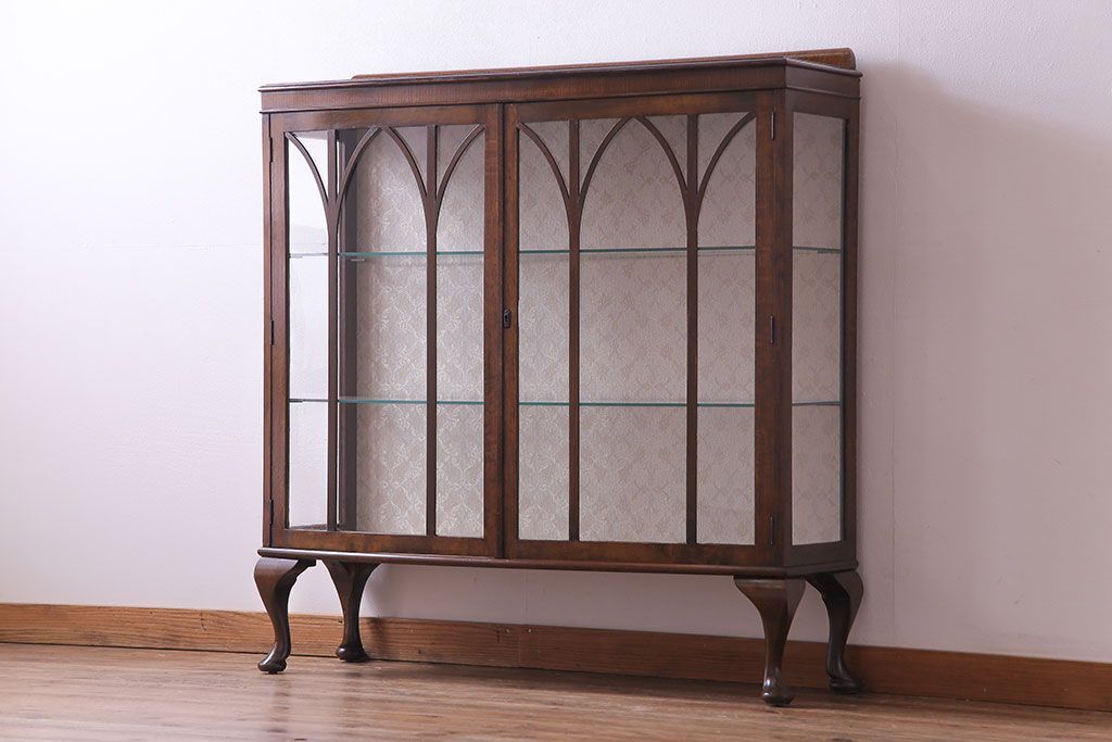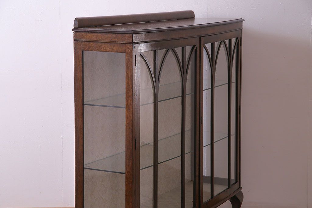 店舗什器 > アンティーク家具 イギリスアンティーク 上品な雰囲気漂う猫脚のガラスケース(飾り棚、陳列棚、ショーケース)