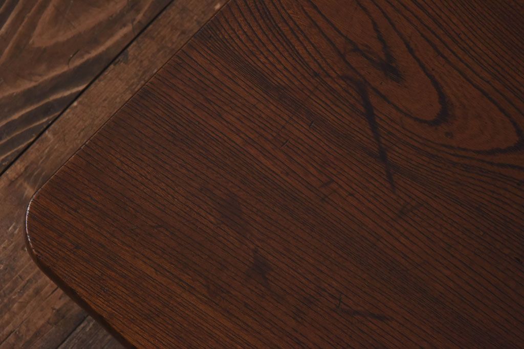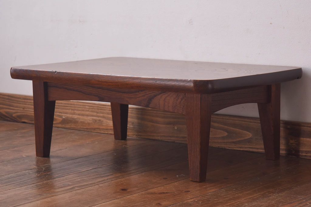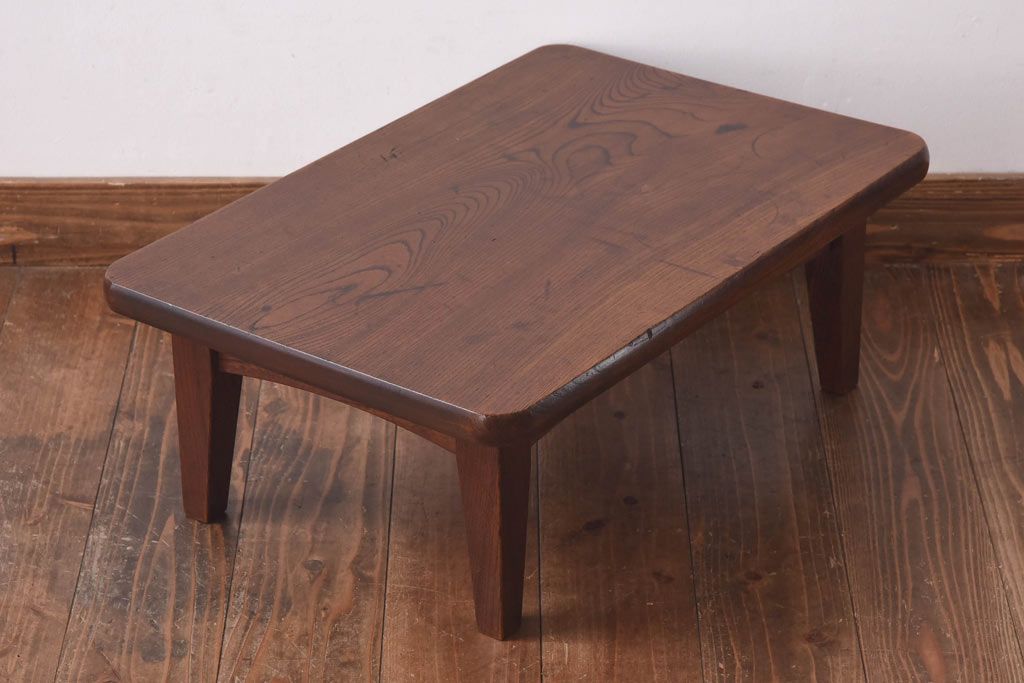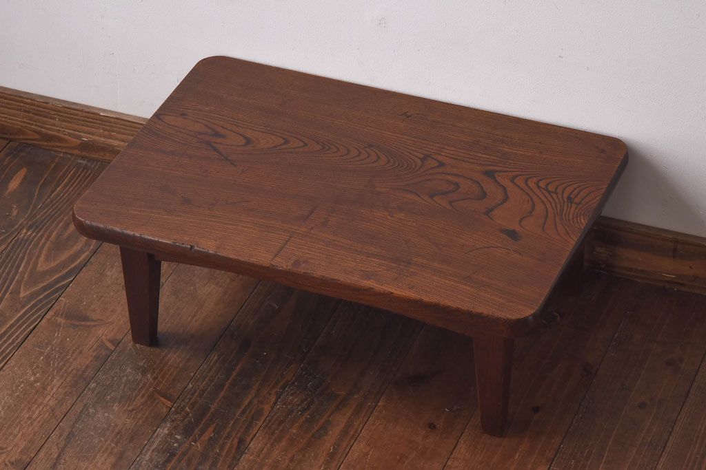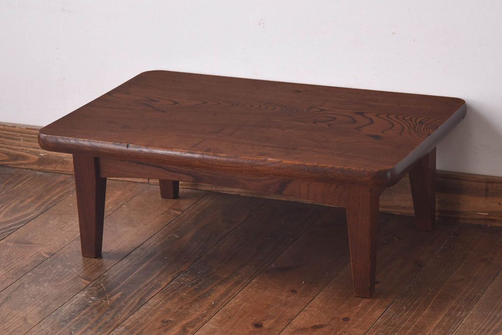 アンティーク雑貨 和製アンティーク 総ケヤキ一枚板 丸みを帯びた天板が魅力的な小さな座卓(ちゃぶ台、花台、飾り台)
