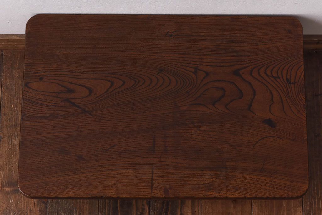 和製アンティーク 総ケヤキ一枚板 丸みを帯びた天板が魅力的な小さな座卓(ちゃぶ台、花台、飾り台)です。