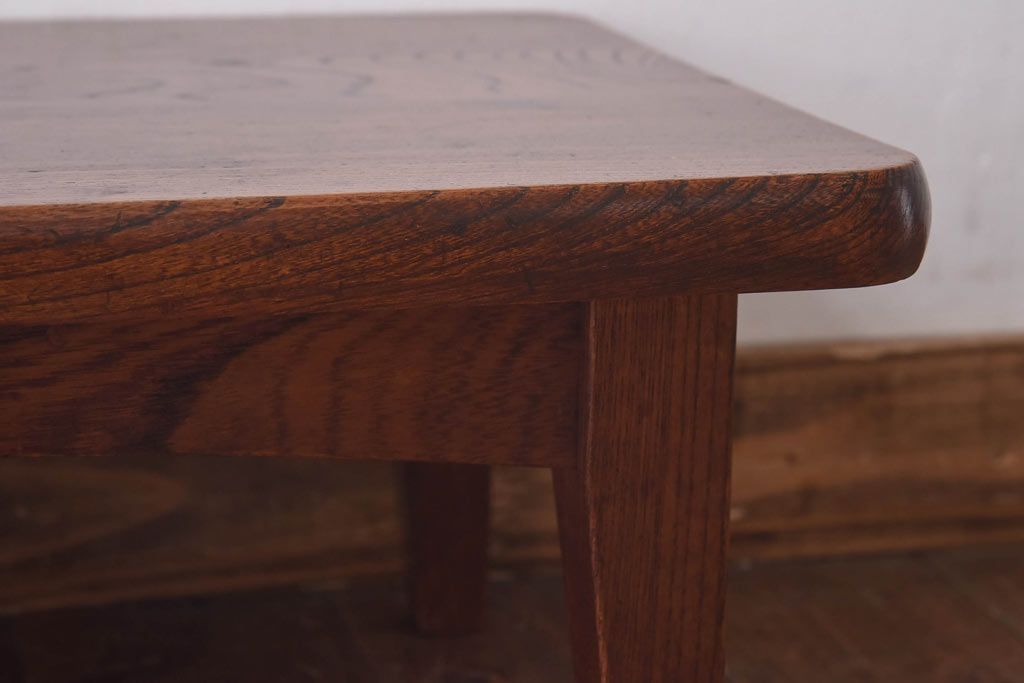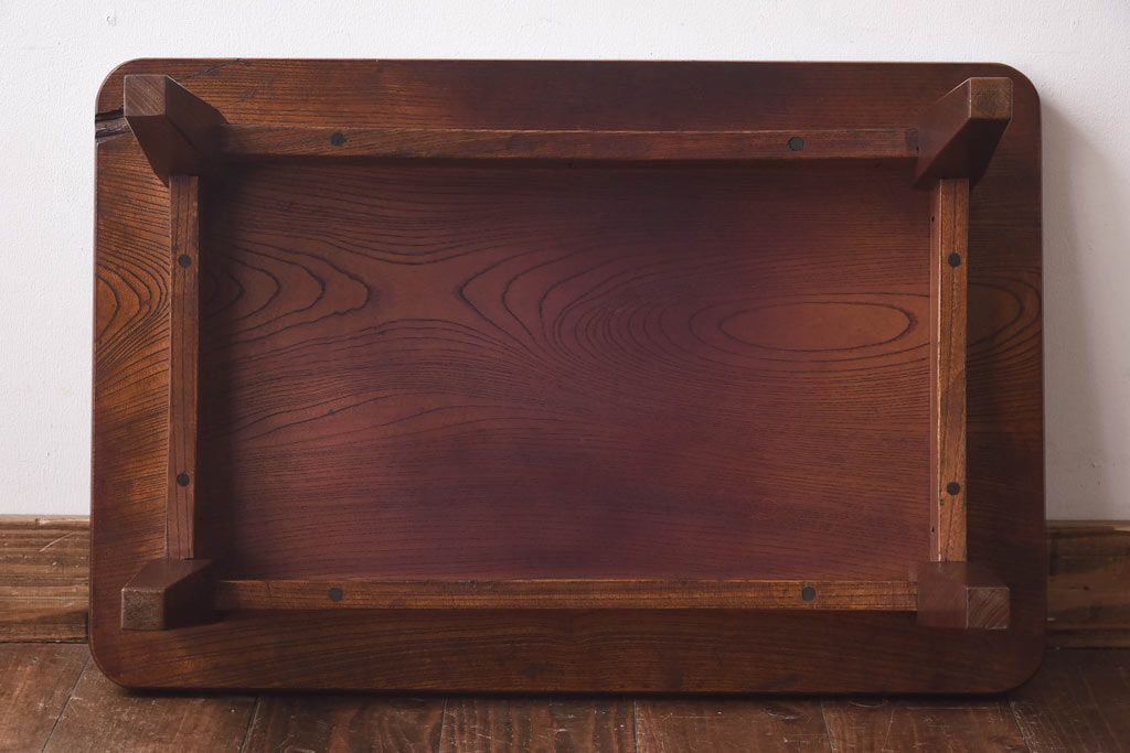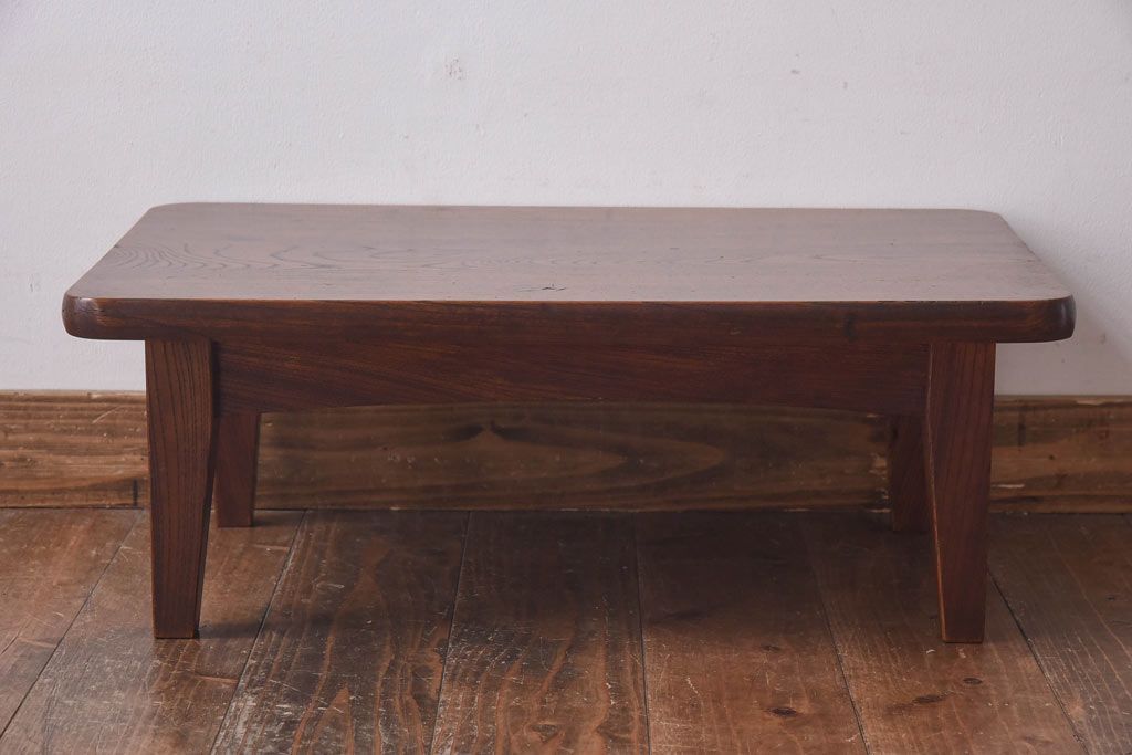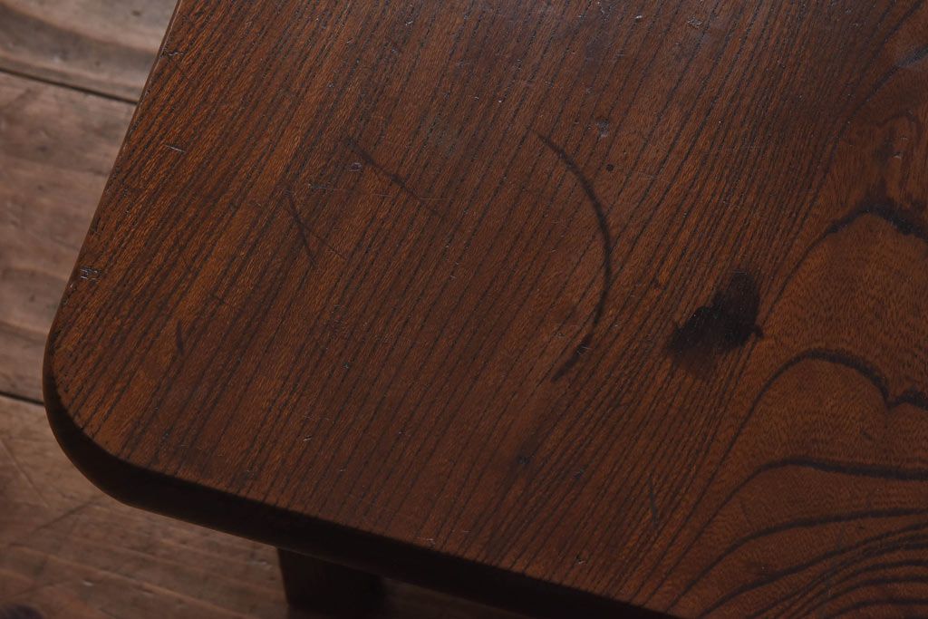 花台・飾り台 > アンティーク雑貨 和製アンティーク 総ケヤキ一枚板 丸みを帯びた天板が魅力的な小さな座卓(ちゃぶ台、花台、飾り台)