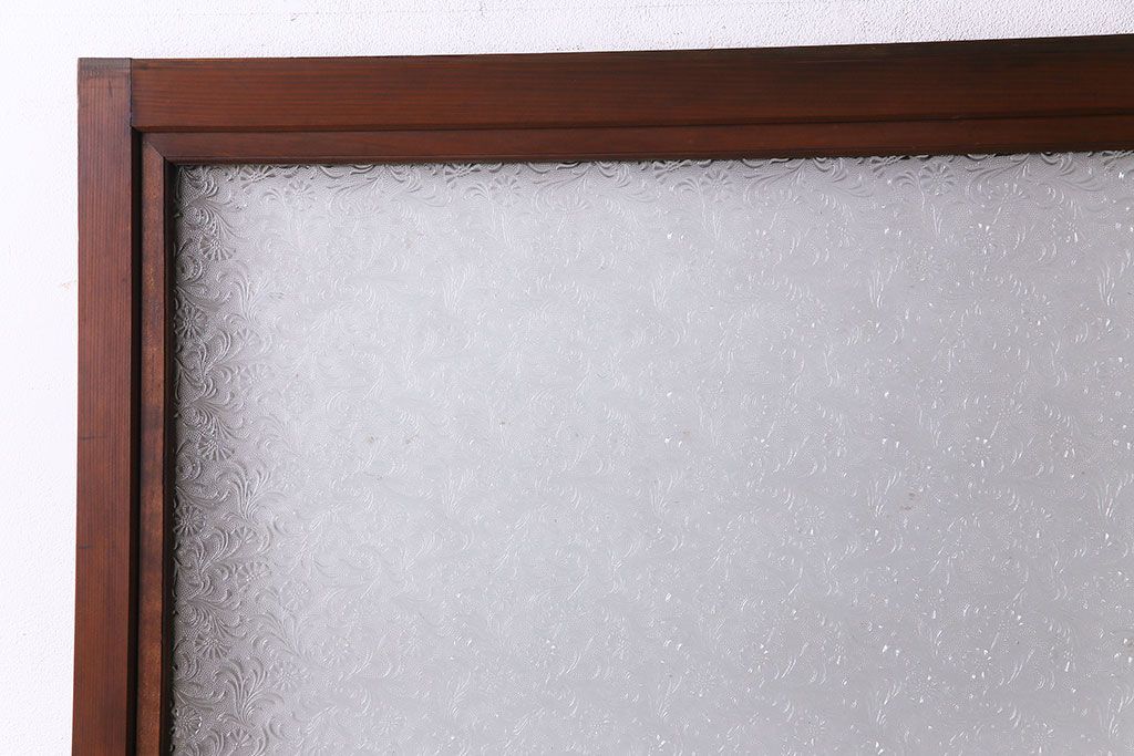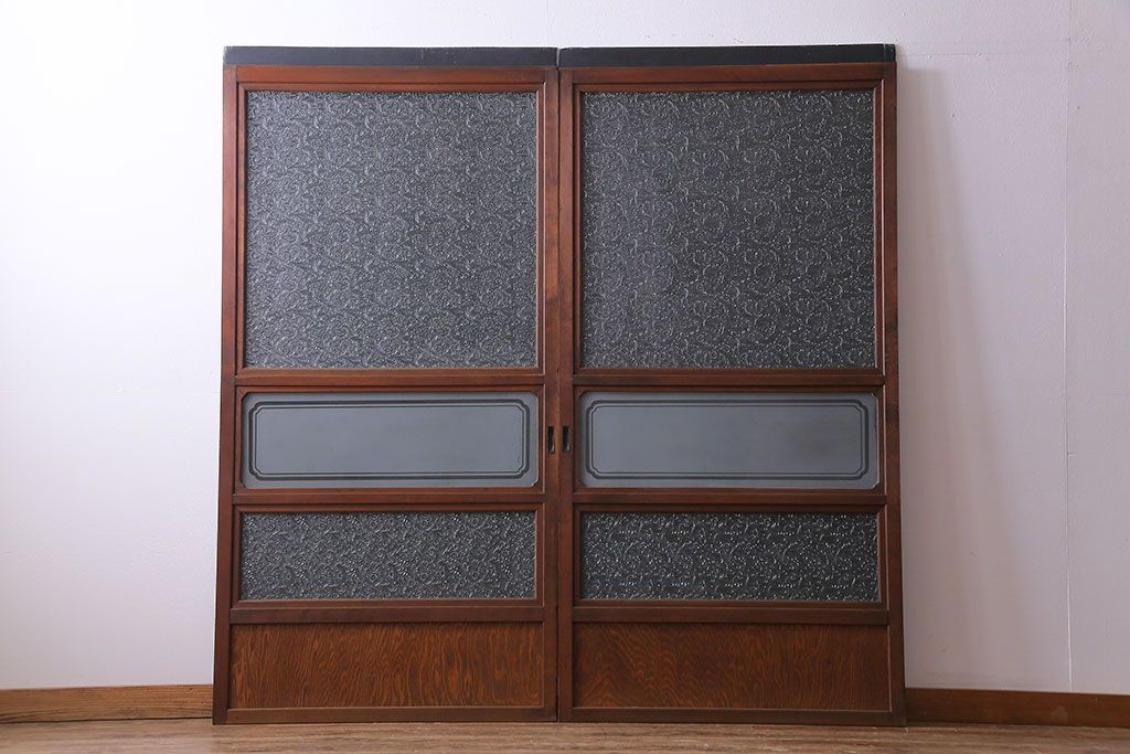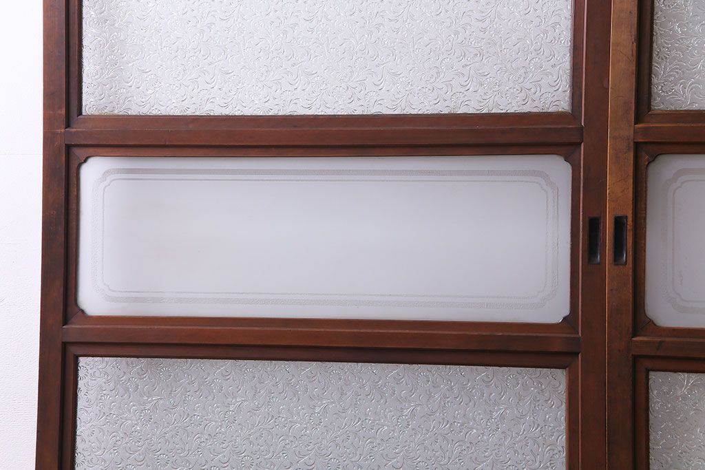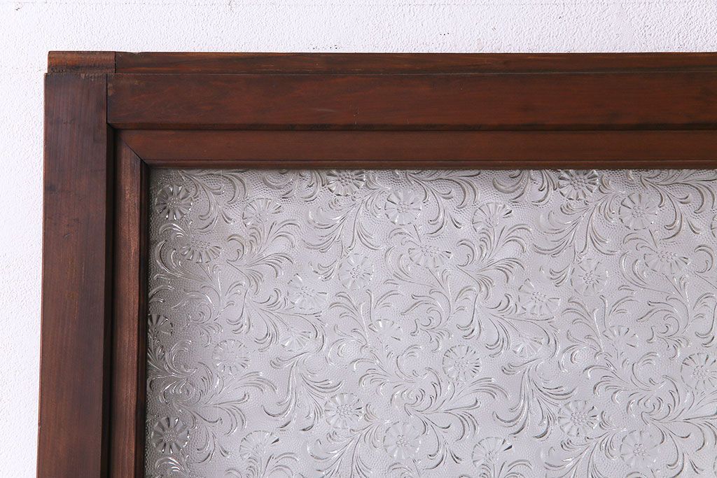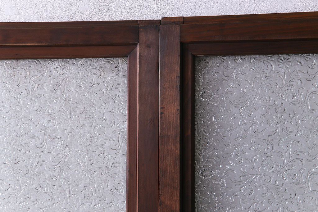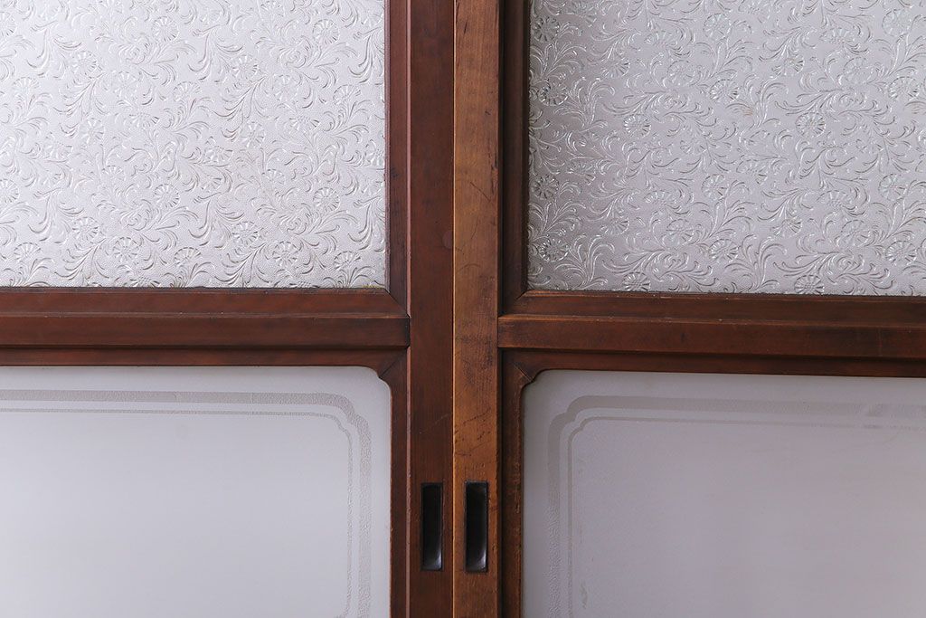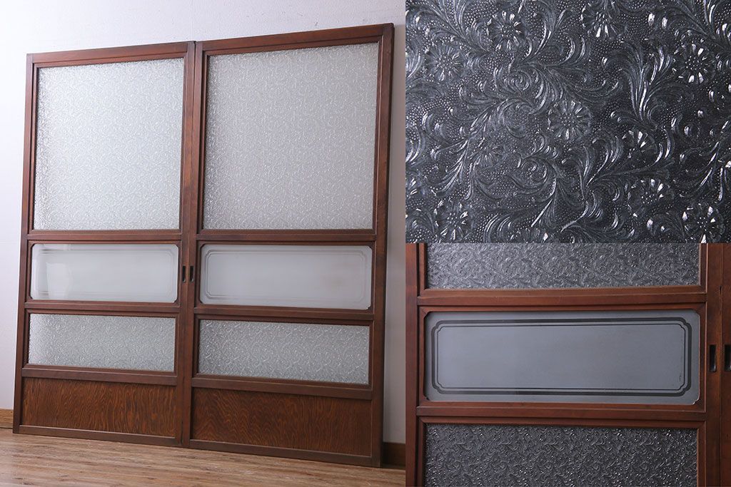 花模様プレスガラス入り 希少な花模様のプレスガラスが目を引く帯戸(ガラス帯戸、ガラス戸、引き戸、建具)2枚セットです。