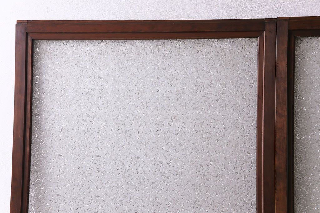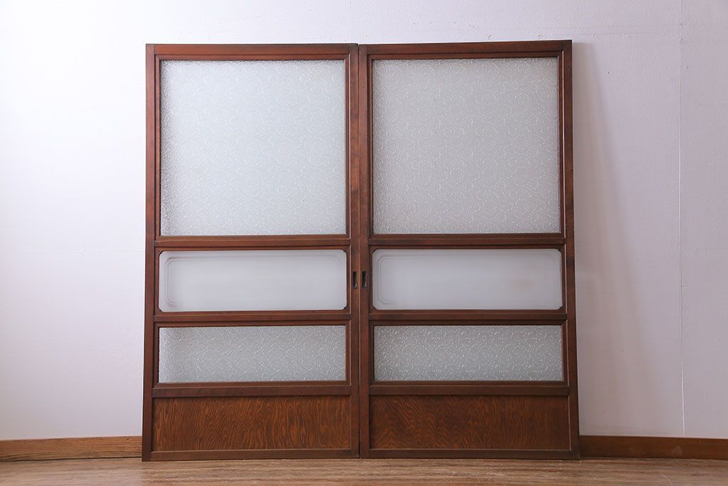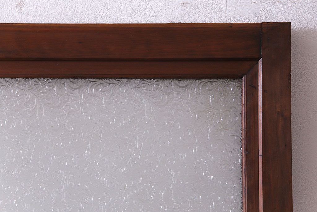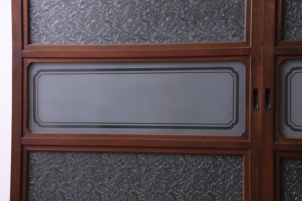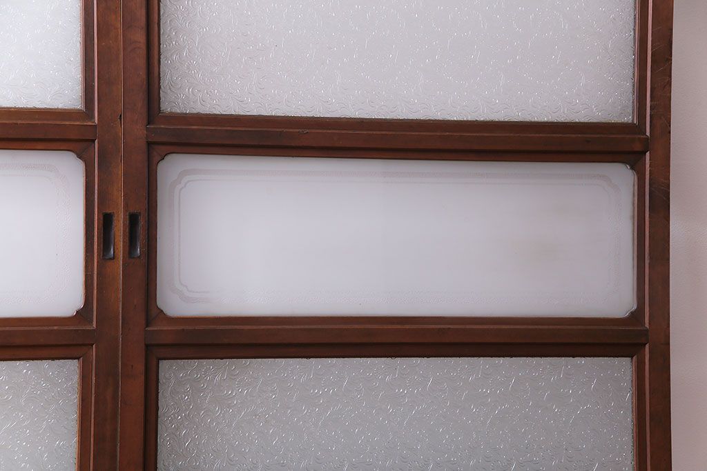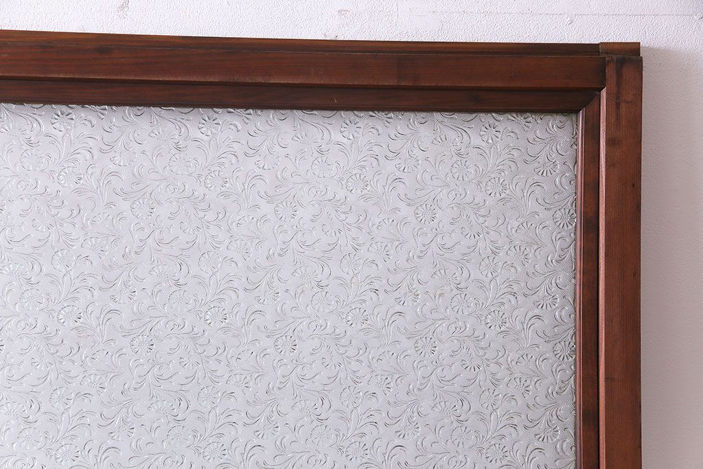花模様プレスガラス入り 希少な花模様のプレスガラスが目を引く帯戸(ガラス帯戸、ガラス戸、引き戸、建具)2枚セットです。