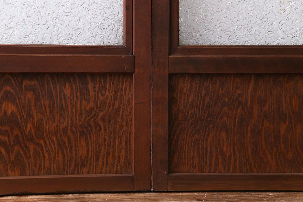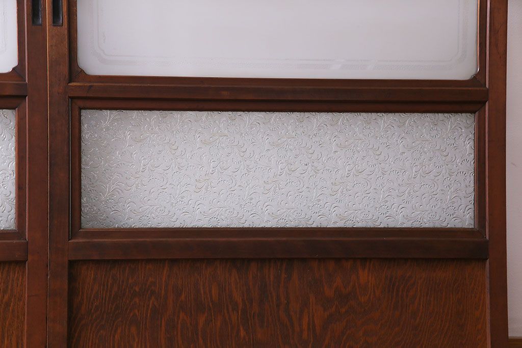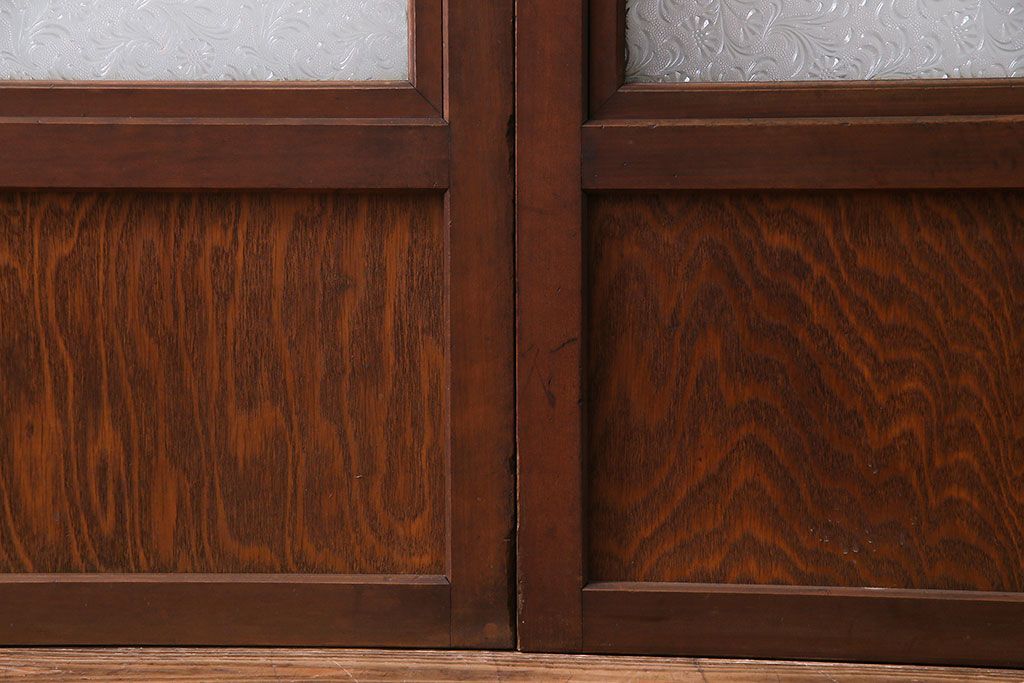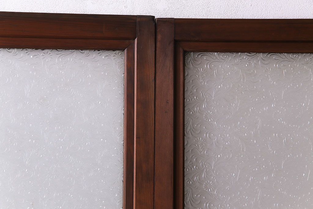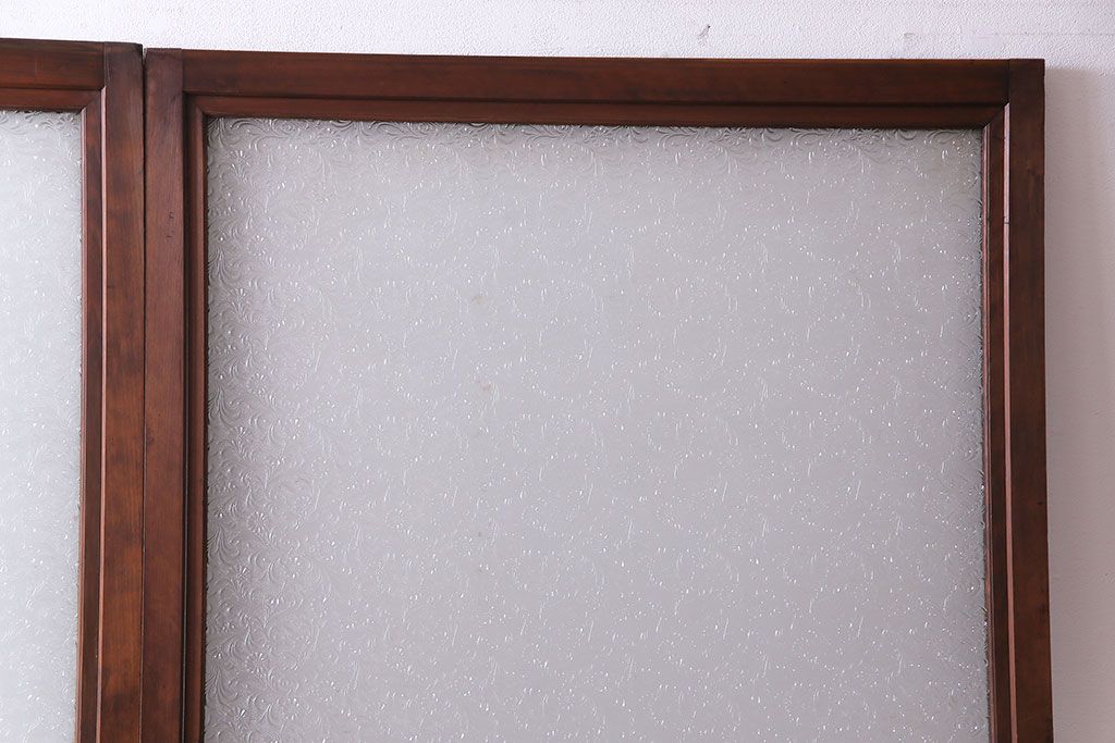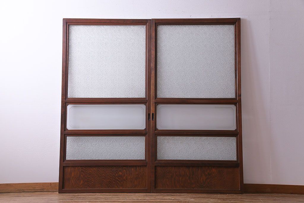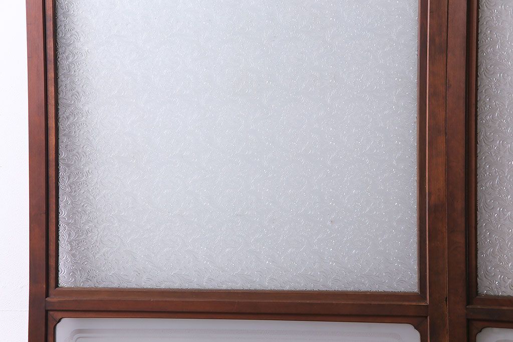 花模様プレスガラス入り 希少な花模様のプレスガラスが目を引く帯戸(ガラス帯戸、ガラス戸、引き戸、建具)2枚セットです。