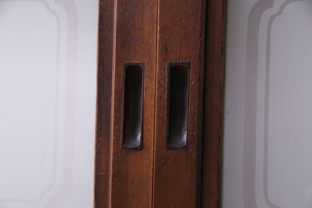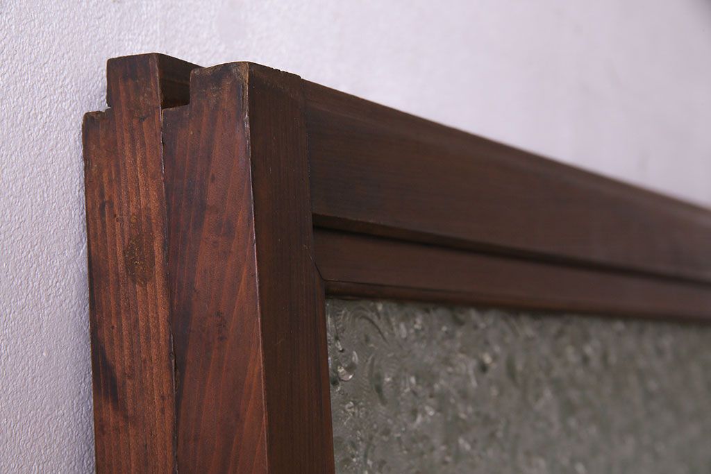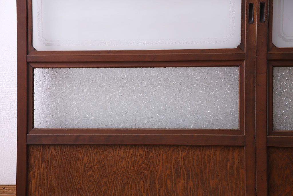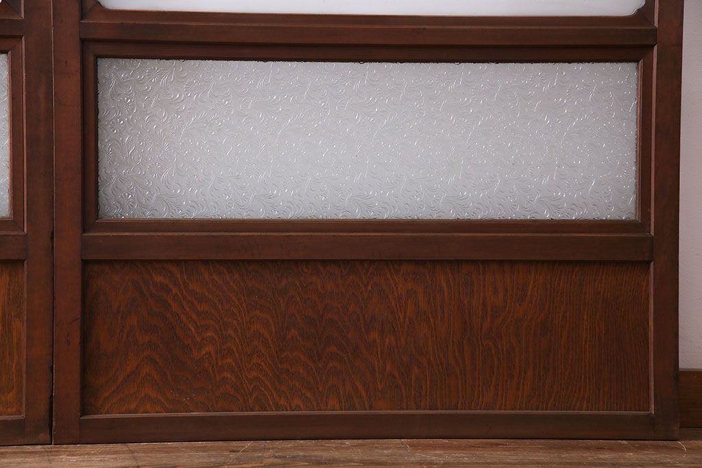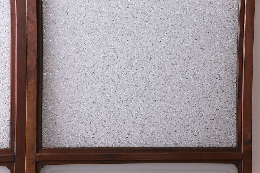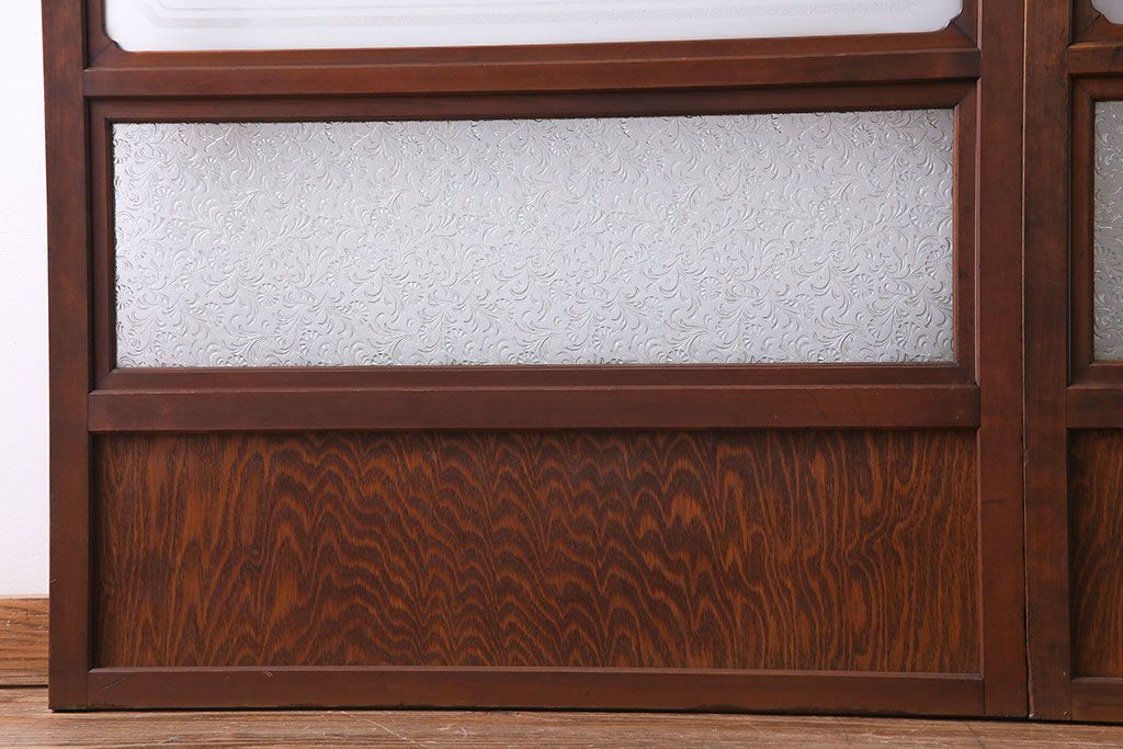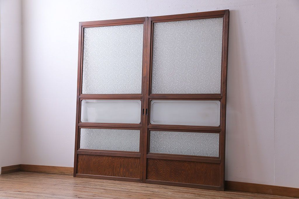 花模様プレスガラス入り 希少な花模様のプレスガラスが目を引く帯戸(ガラス帯戸、ガラス戸、引き戸、建具)2枚セットです。