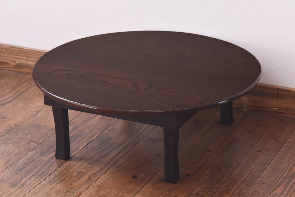レトロ家具 昭和レトロ シンプルなデザインの折り畳み式ローテーブル(ちゃぶ台、座卓)(2)