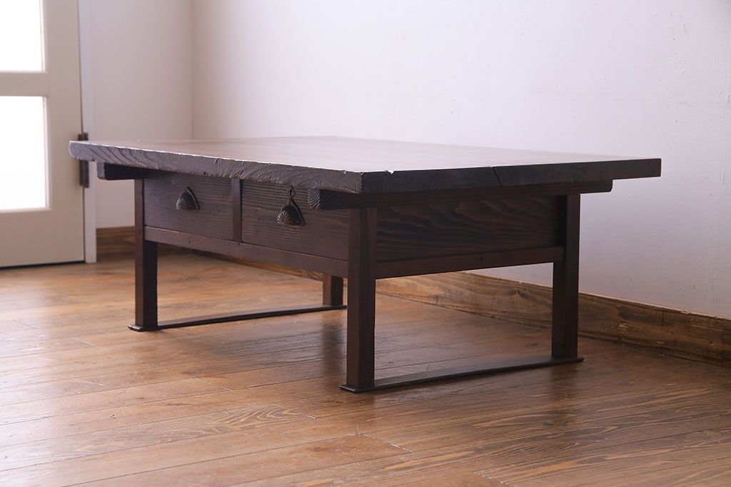 【I様ご成約済】和製アンティーク ヒノキ材 味わい深い木の質感が魅力の文机(ローテーブル)