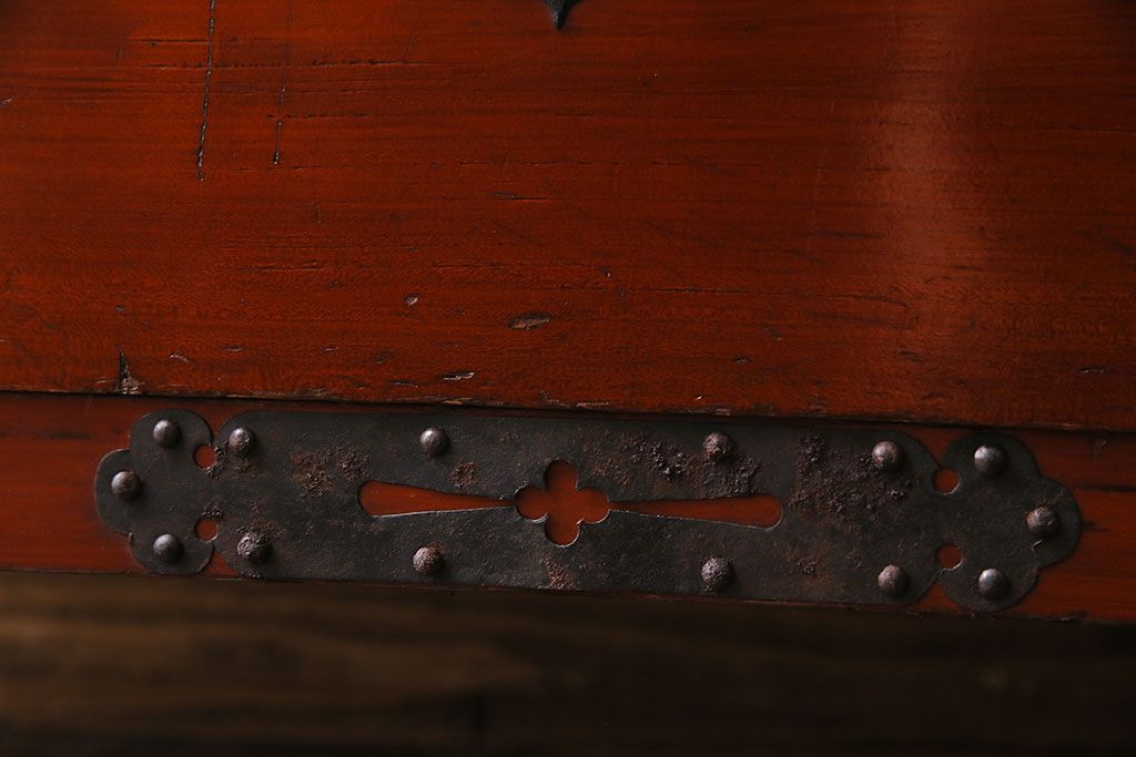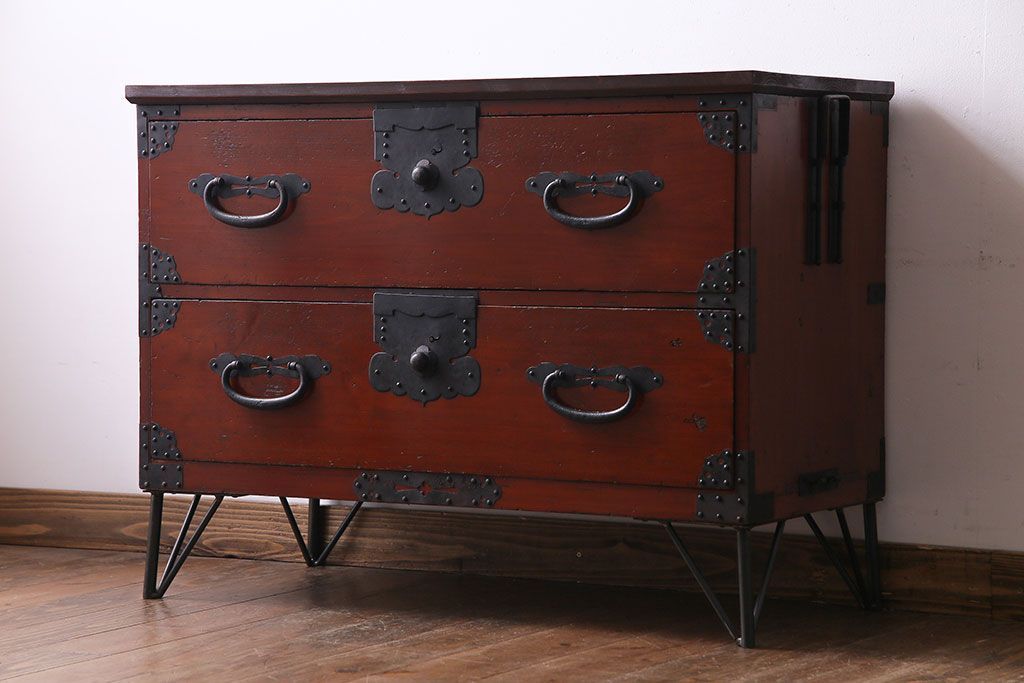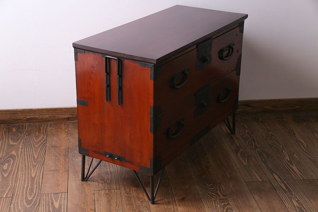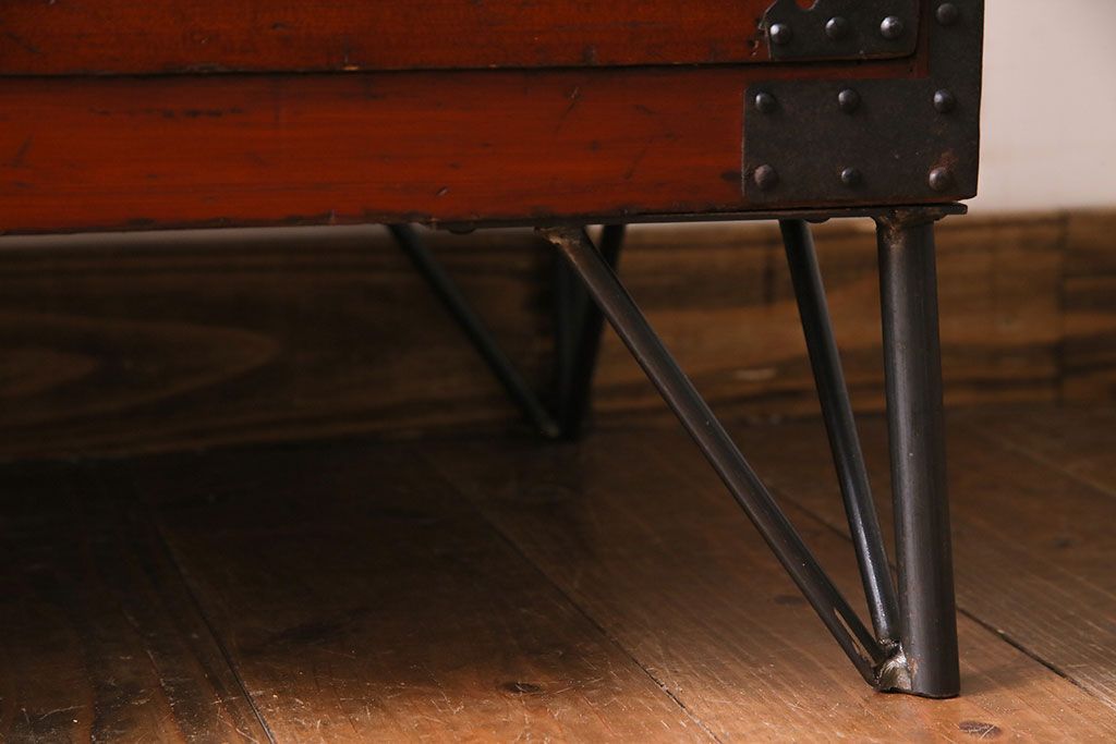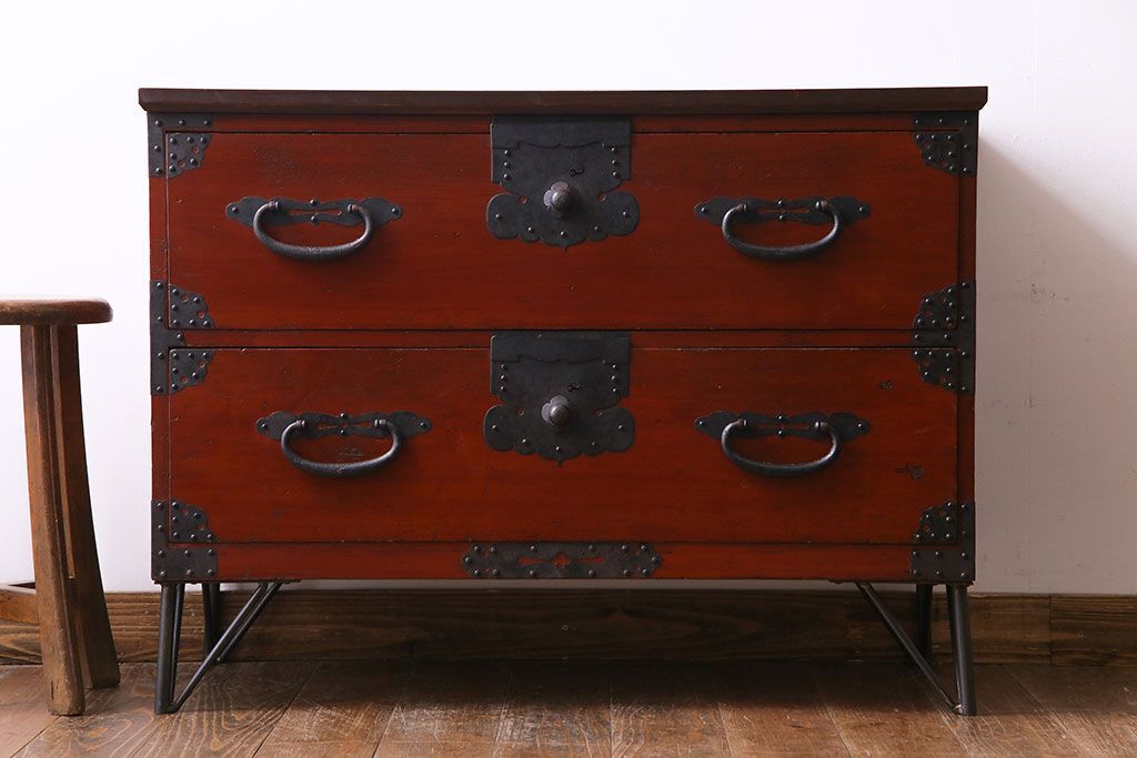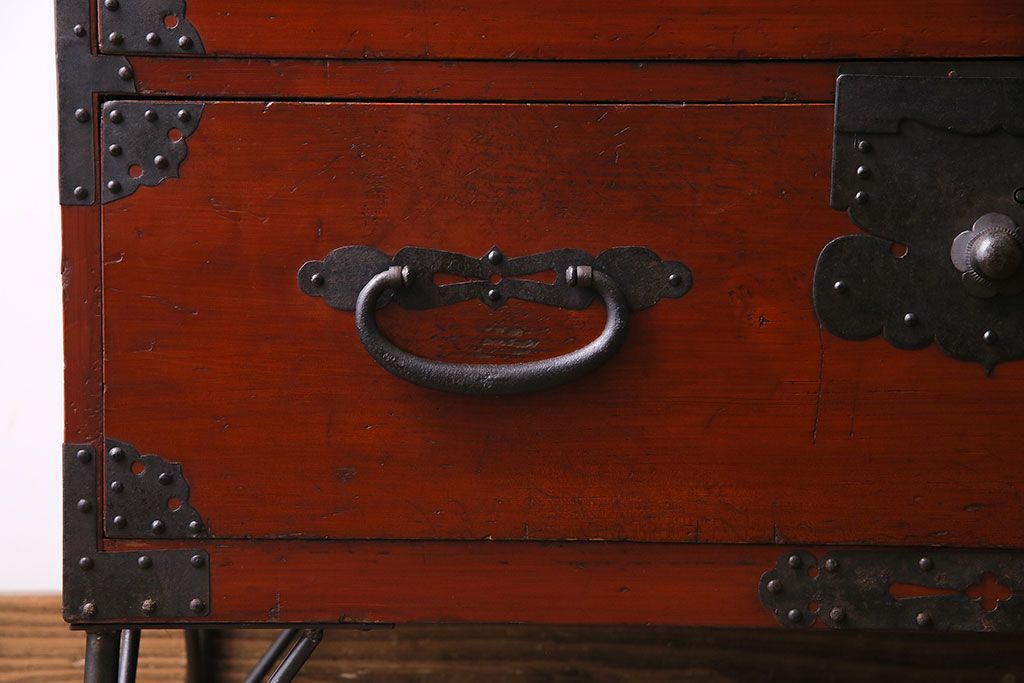 アンティーク家具 和製アンティーク リメイク 鉄脚付き 朱色の時代箪笥ローボード(テレビボード、ローチェスト)