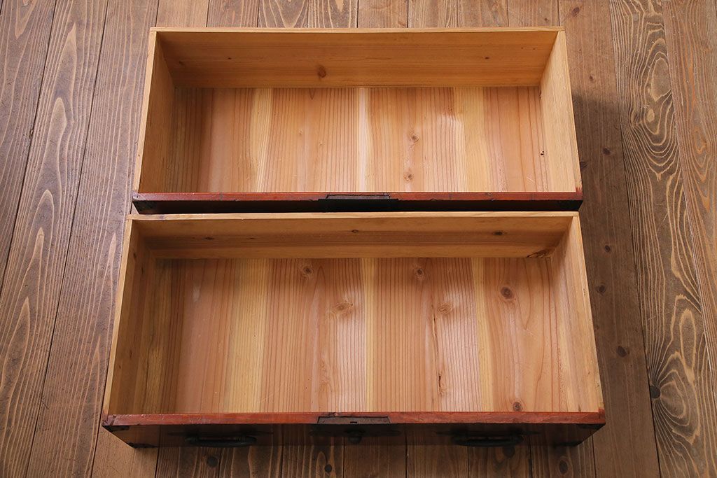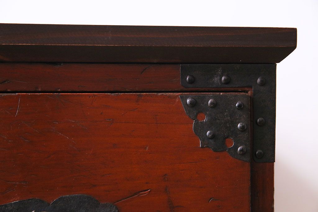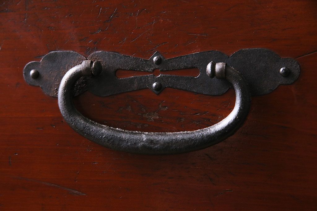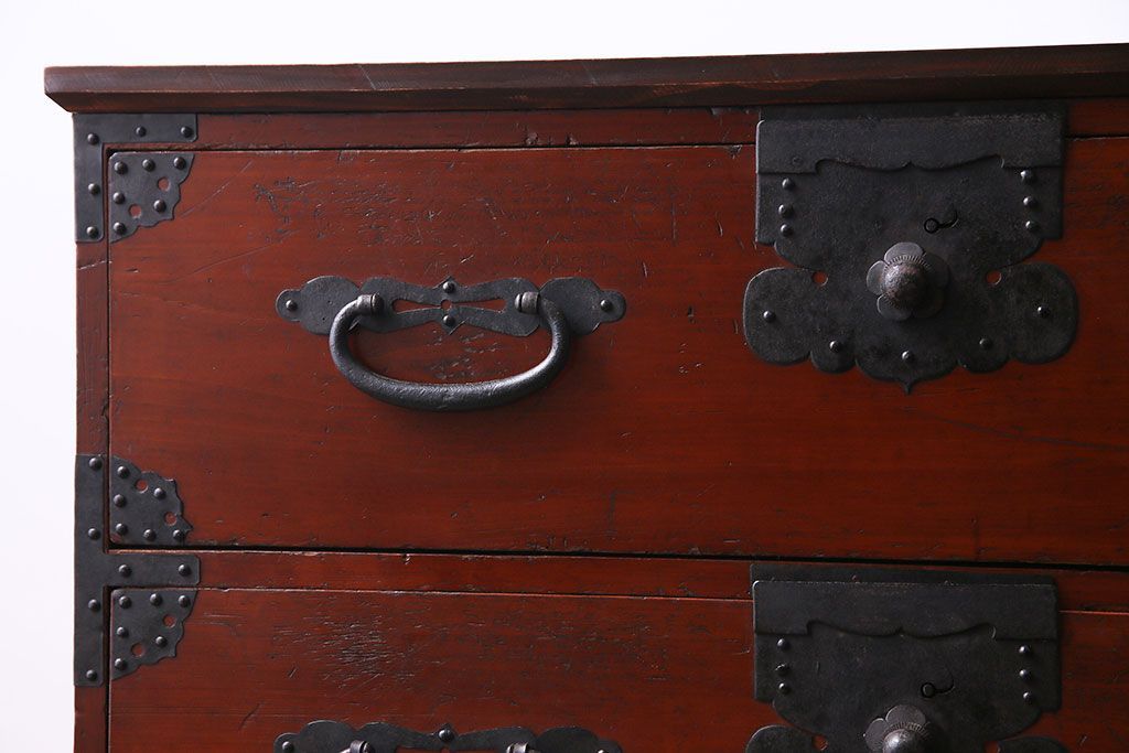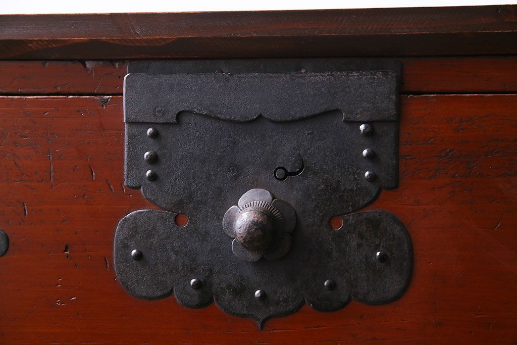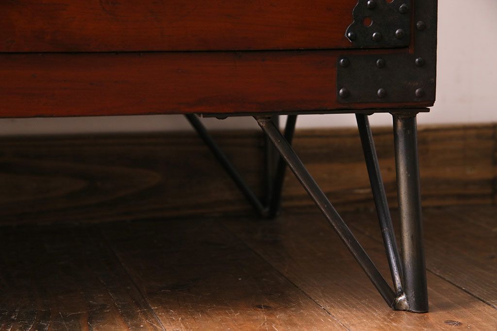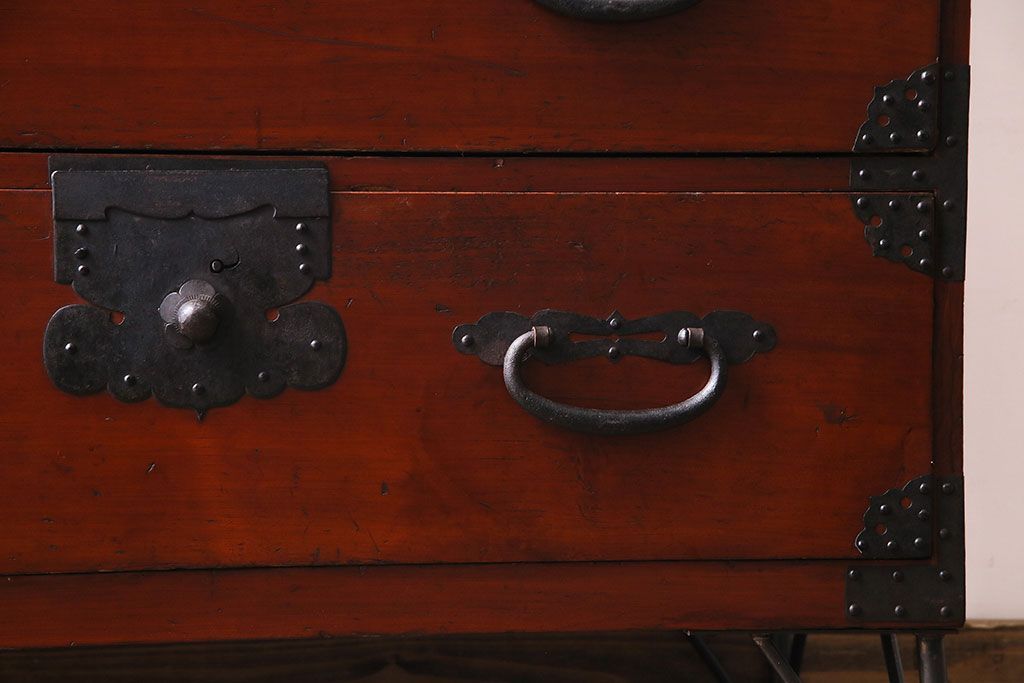アンティーク家具 和製アンティーク リメイク 鉄脚付き 朱色の時代箪笥ローボード(テレビボード、ローチェスト)(1)