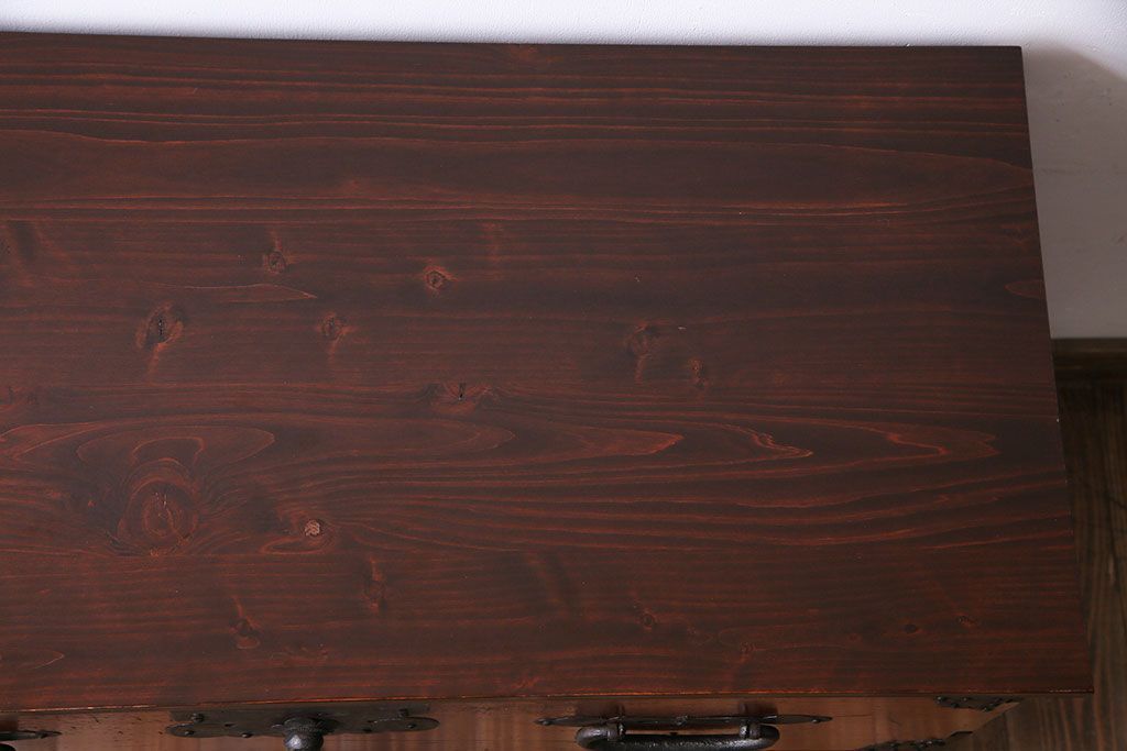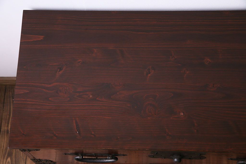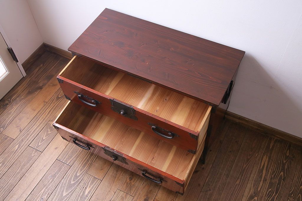 ラフジュ工房> 和箪笥> 衣装箪笥 > アンティーク家具 和製アンティーク リメイク 鉄脚付き 朱色の時代箪笥ローボード(テレビボード、ローチェスト)(1)