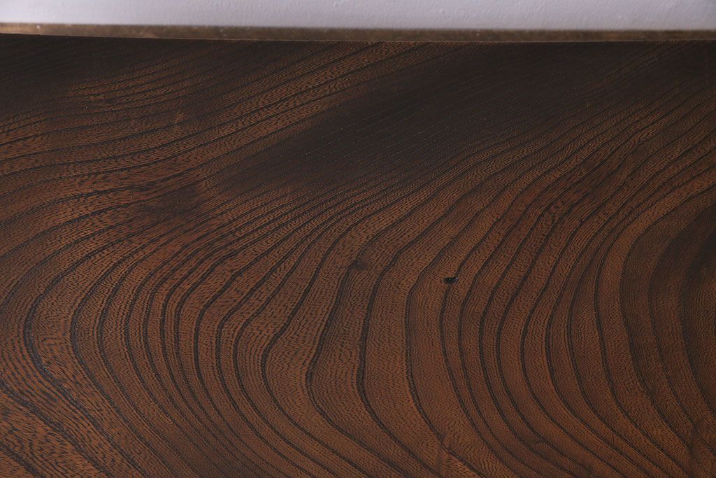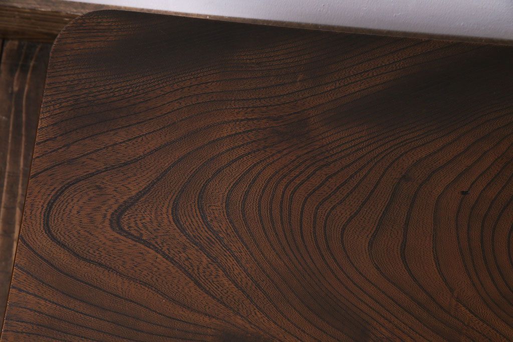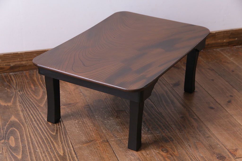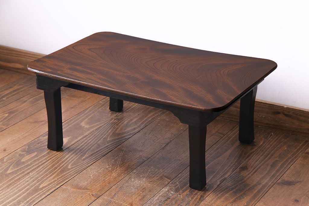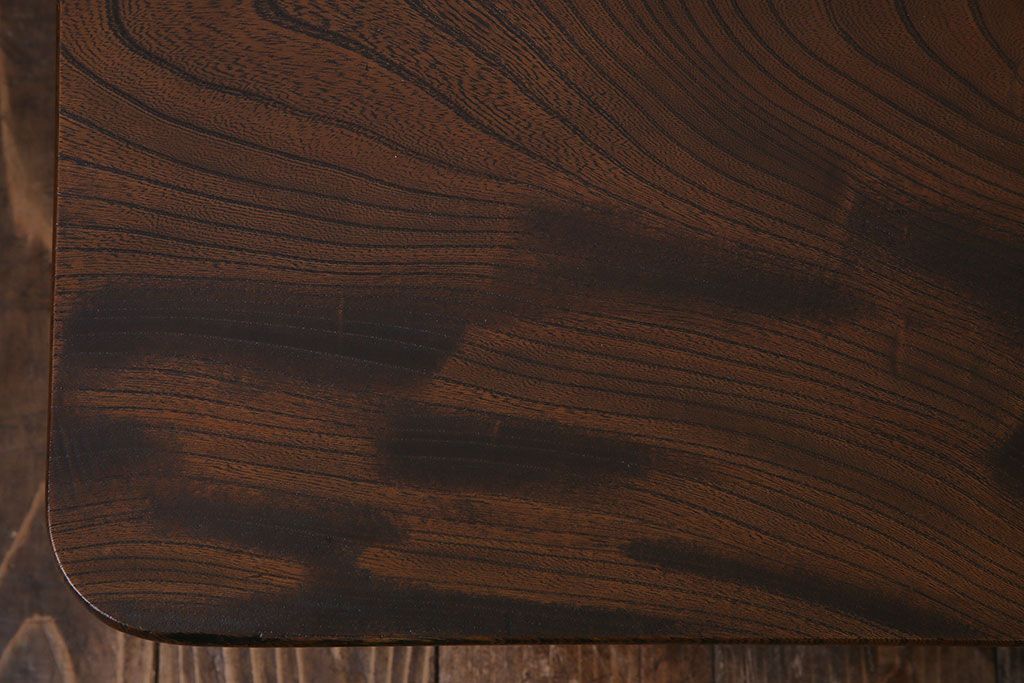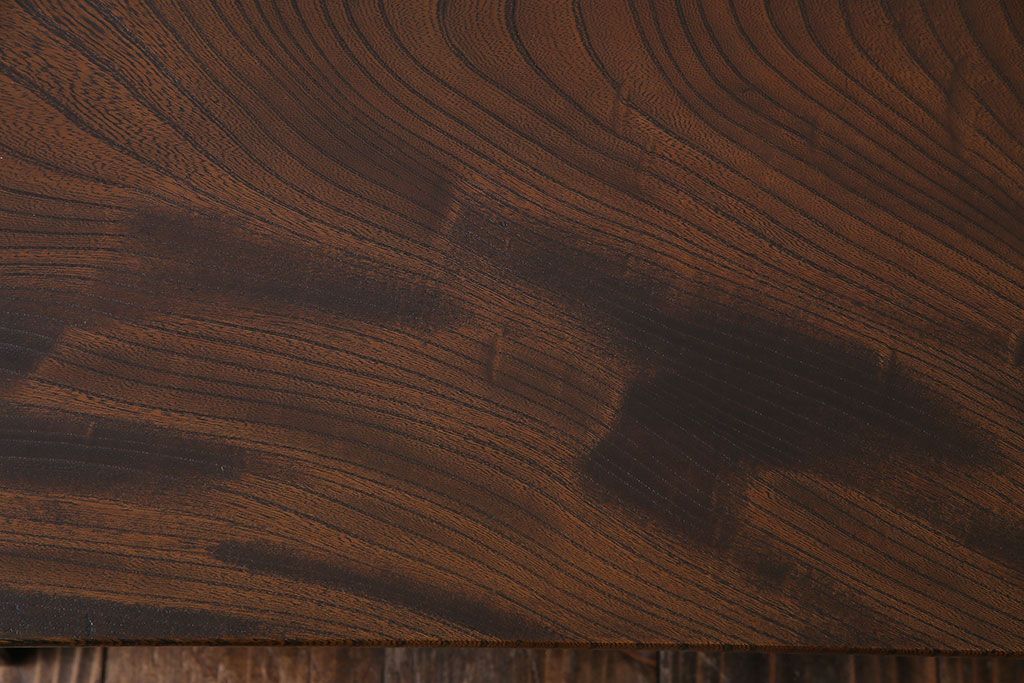 アンティーク家具 昭和中期 ケヤキ材一枚板 味わい深い質感の角ちゃぶ台(ローテーブル、座卓)