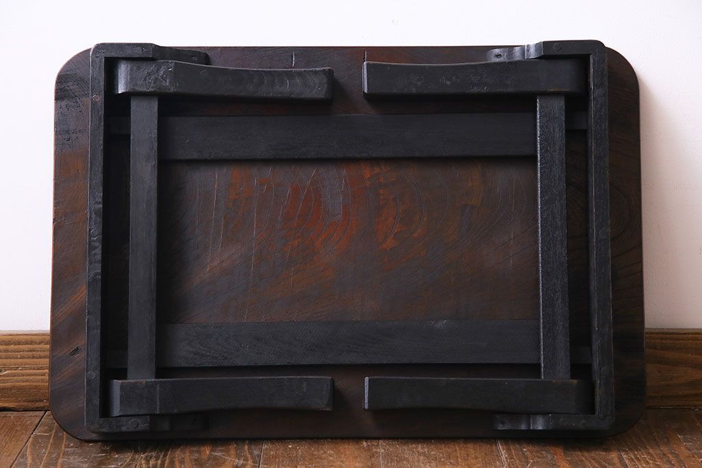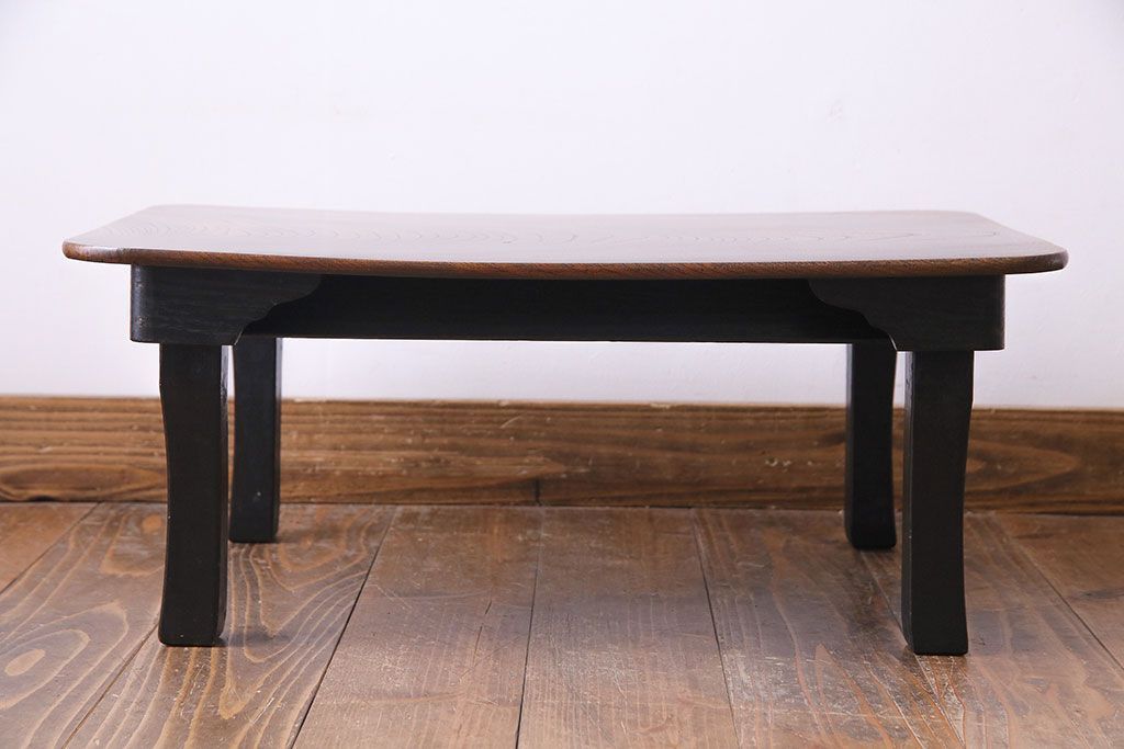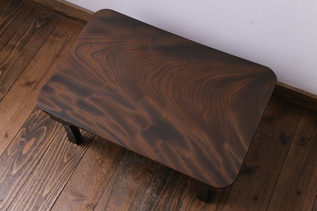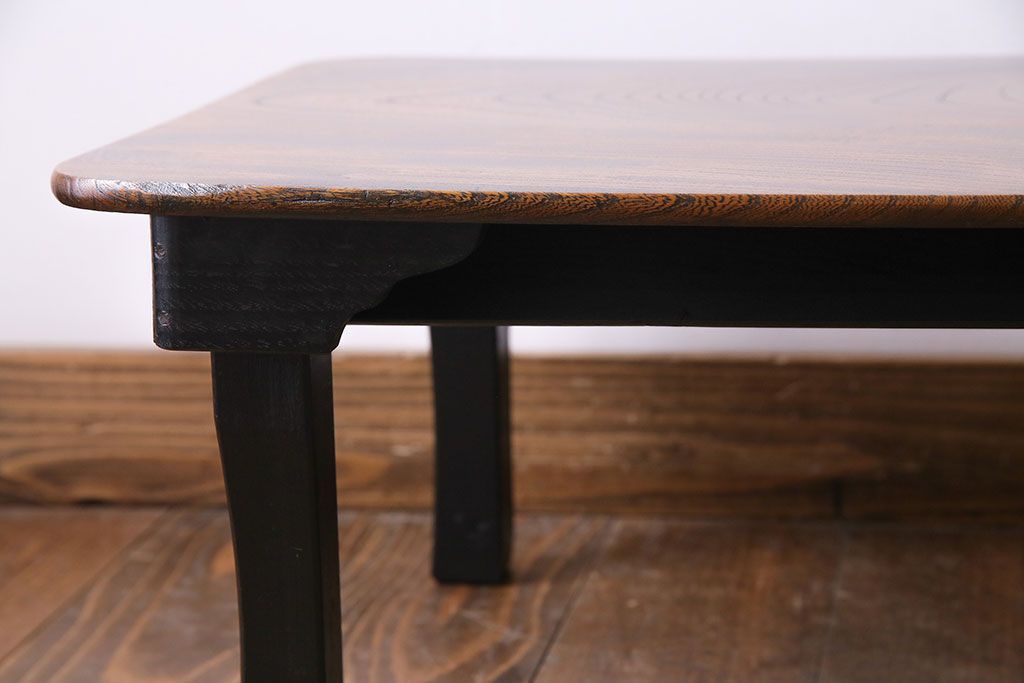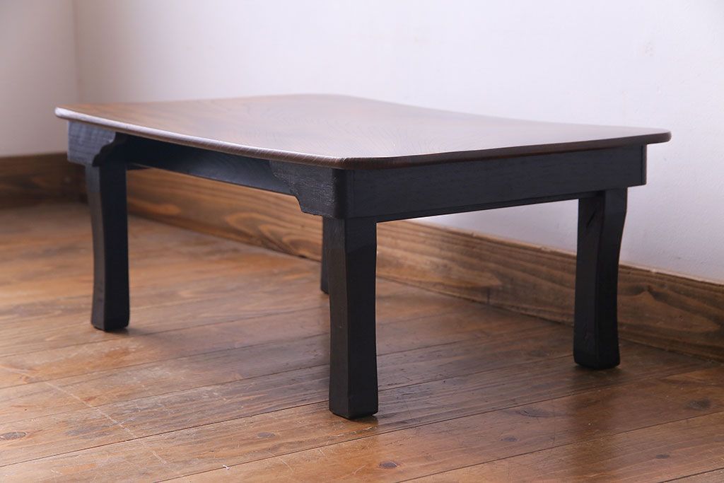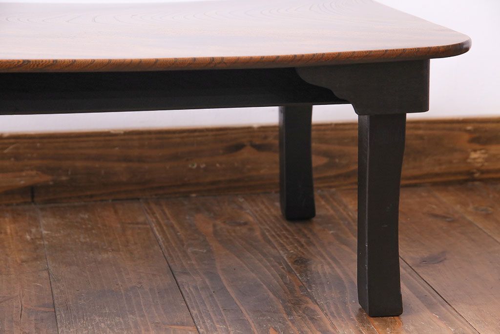 昭和中期 ケヤキ材一枚板 味わい深い質感の角ちゃぶ台(ローテーブル、座卓)です。