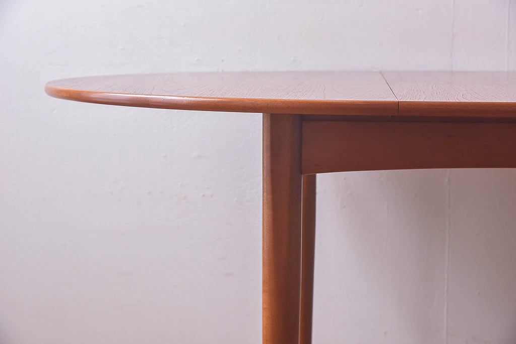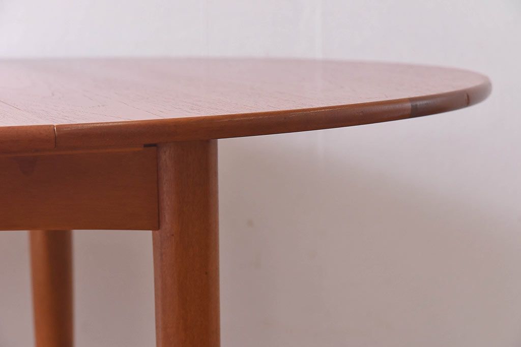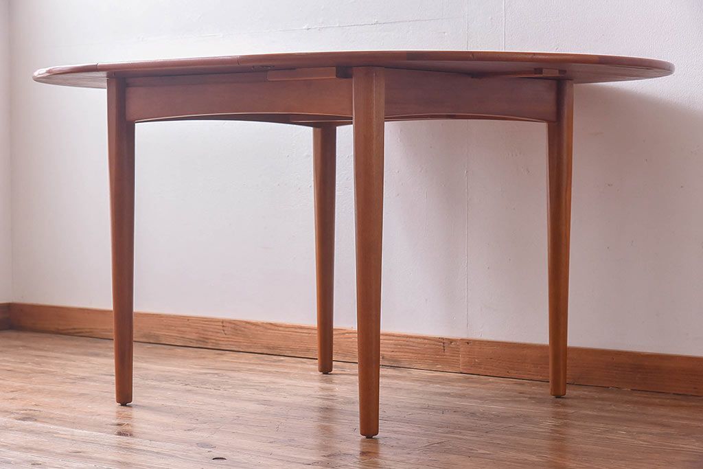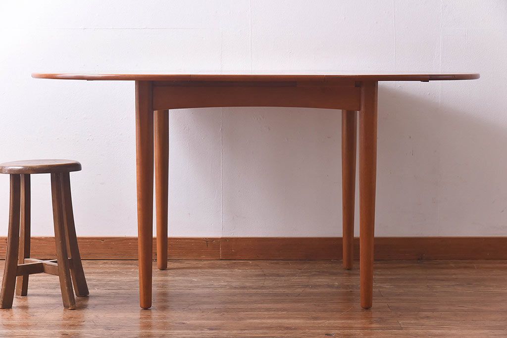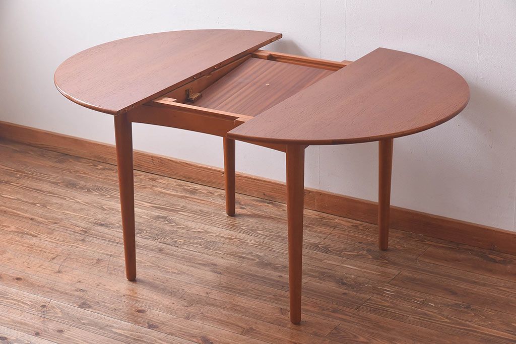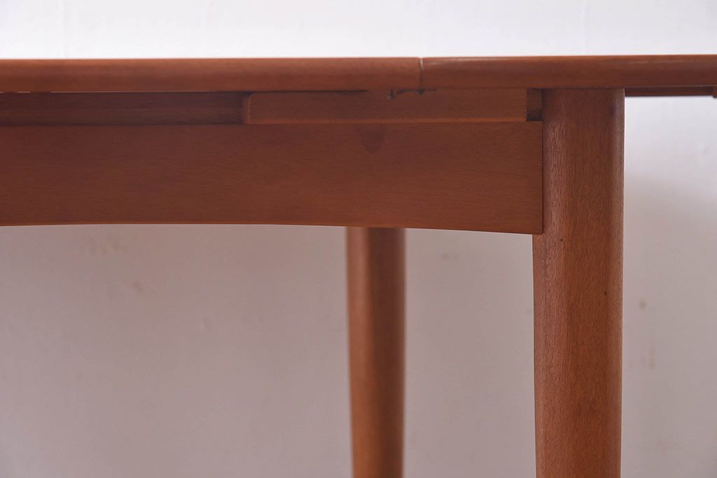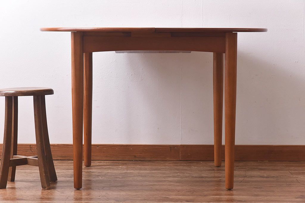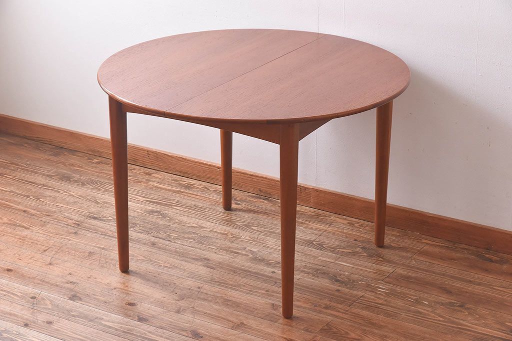 北欧ビンテージ家具 チーク材 シンプルなラウンド型エクステンションテーブル(ダイニングテーブル、ドローリーフテーブル)