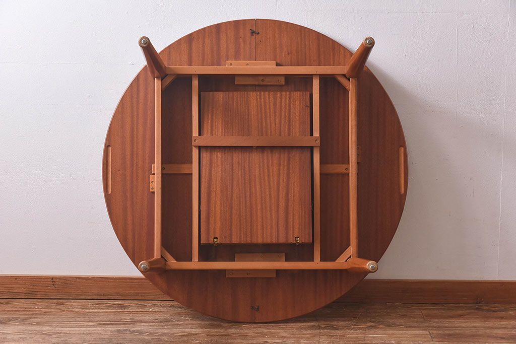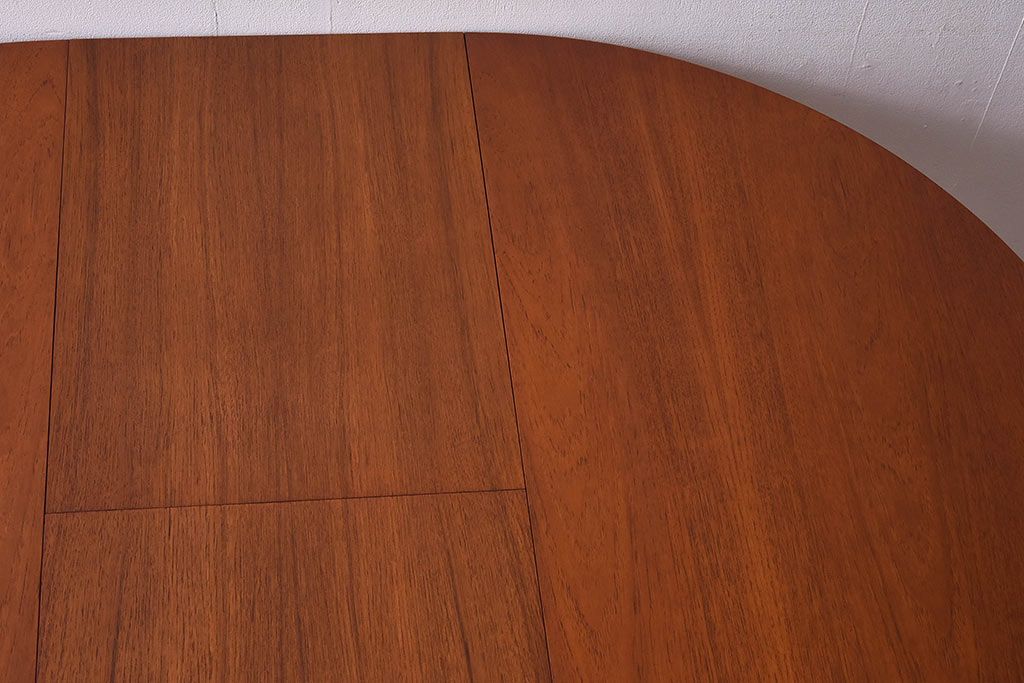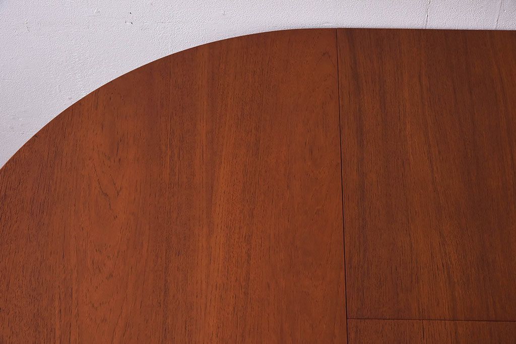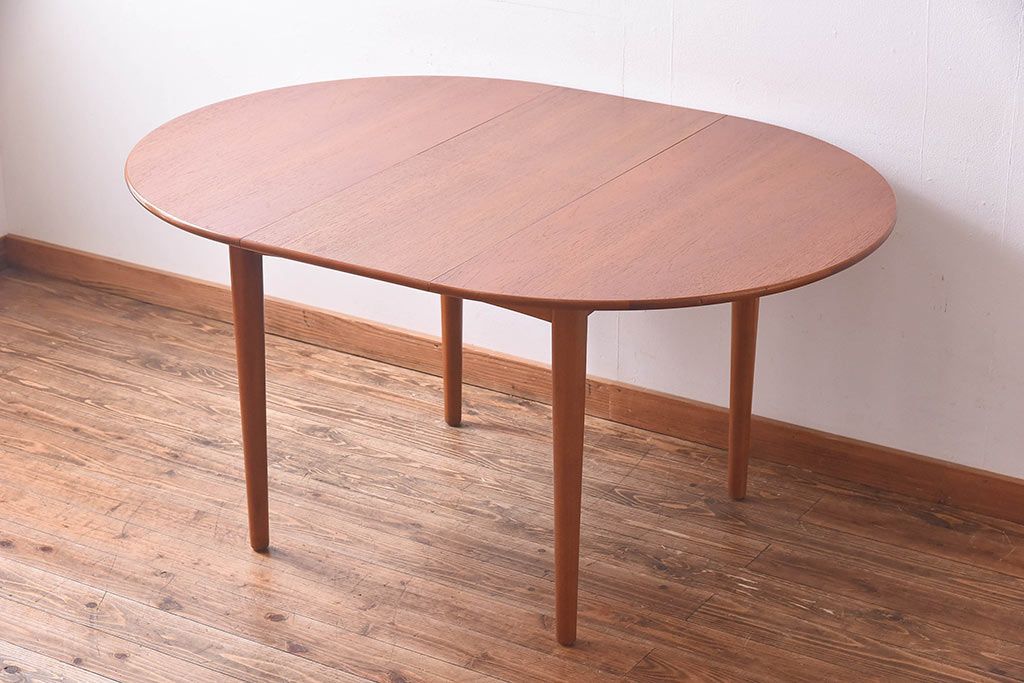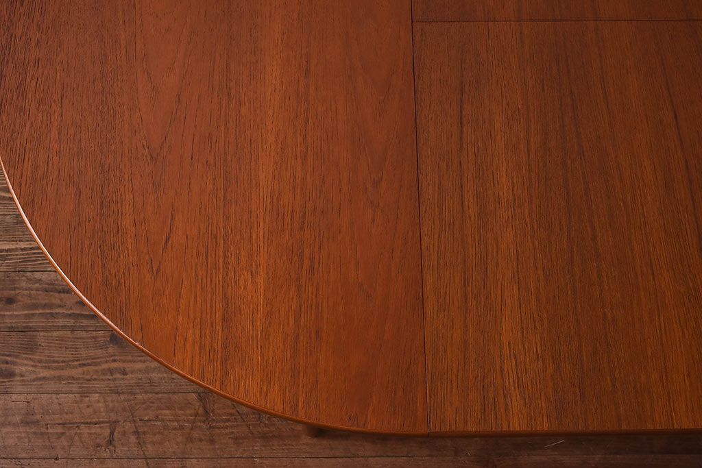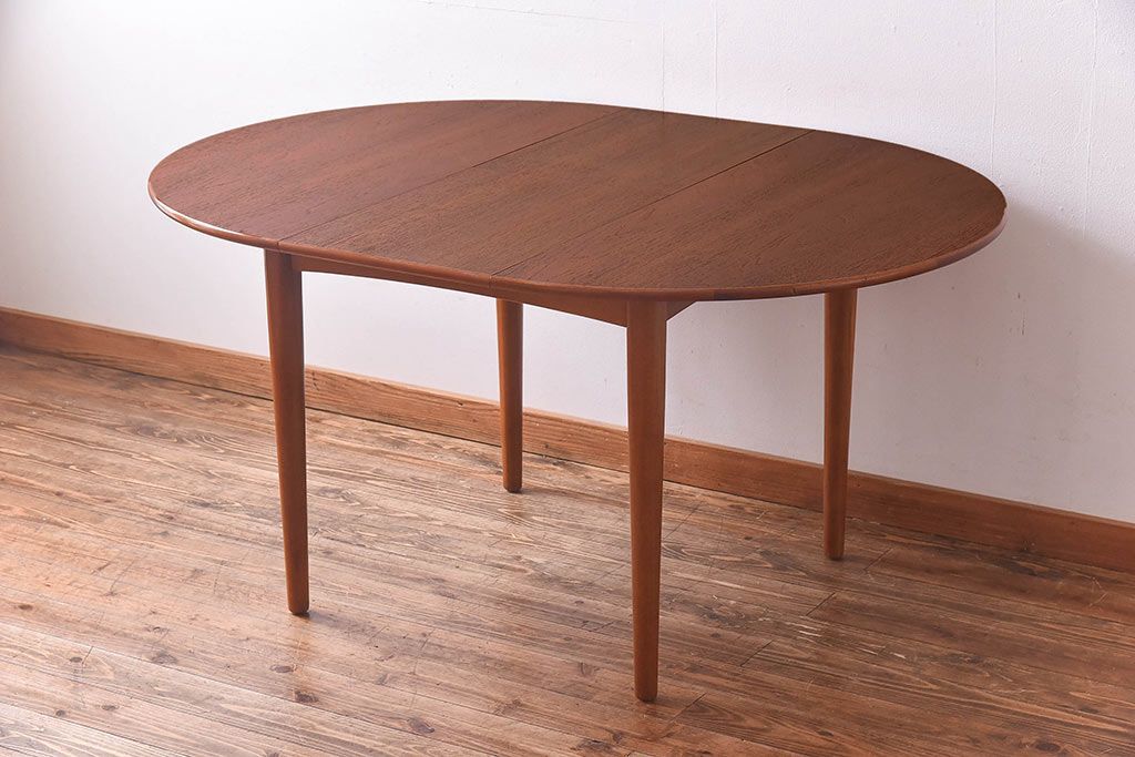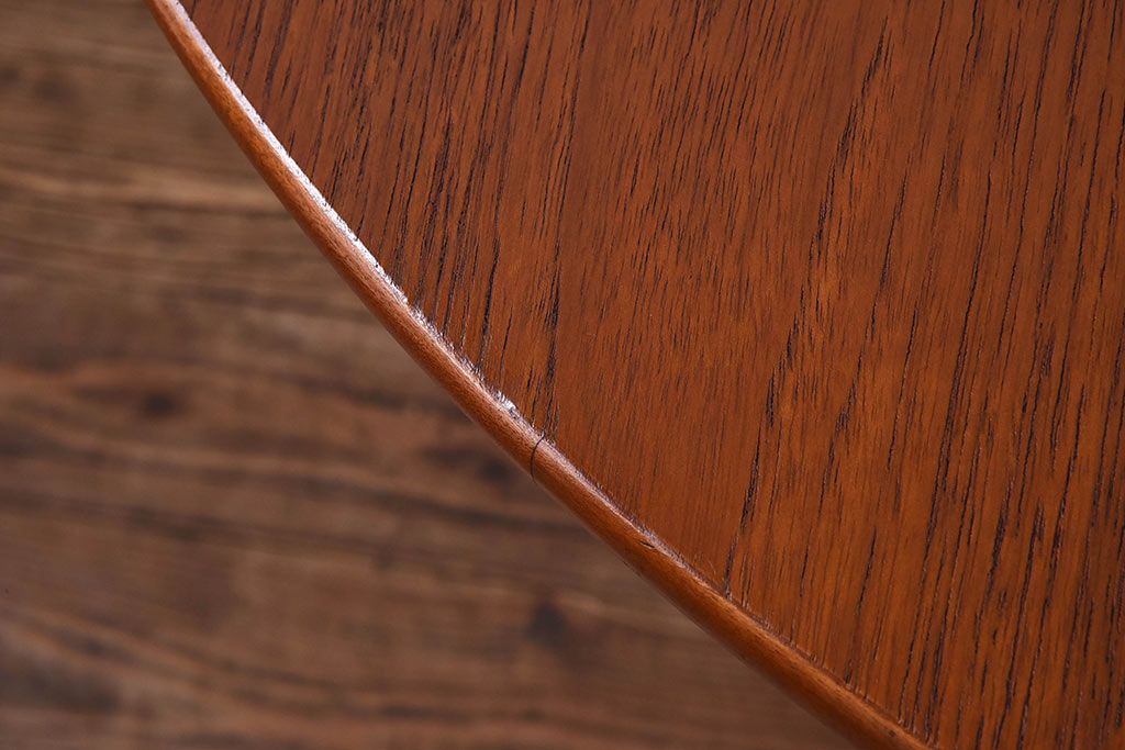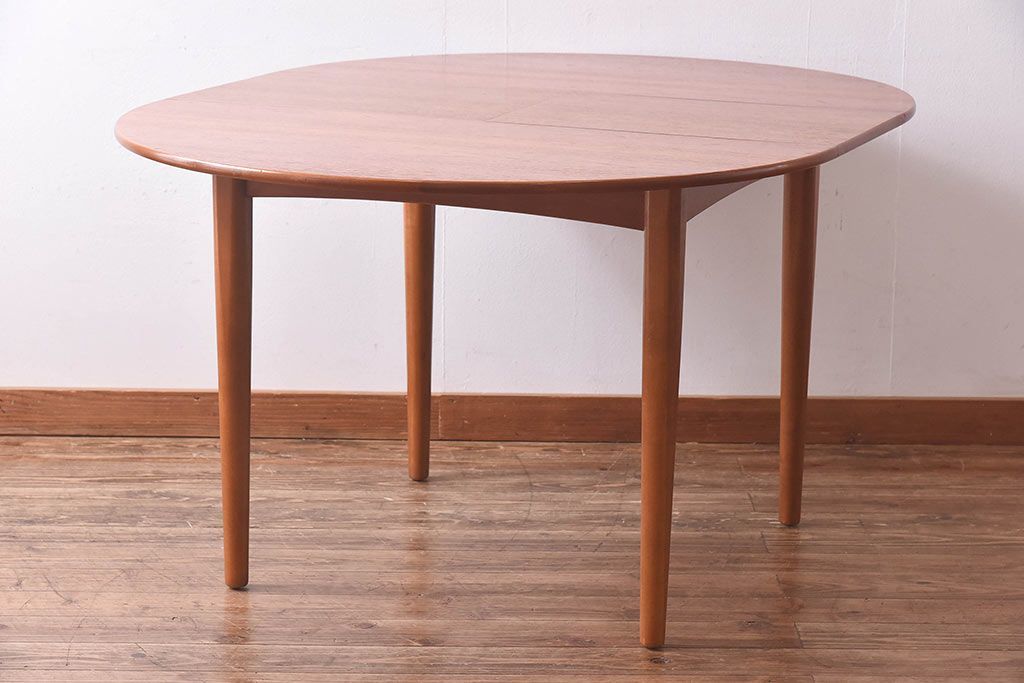 北欧ビンテージ家具 チーク材 シンプルなラウンド型エクステンションテーブル(ダイニングテーブル、ドローリーフテーブル)