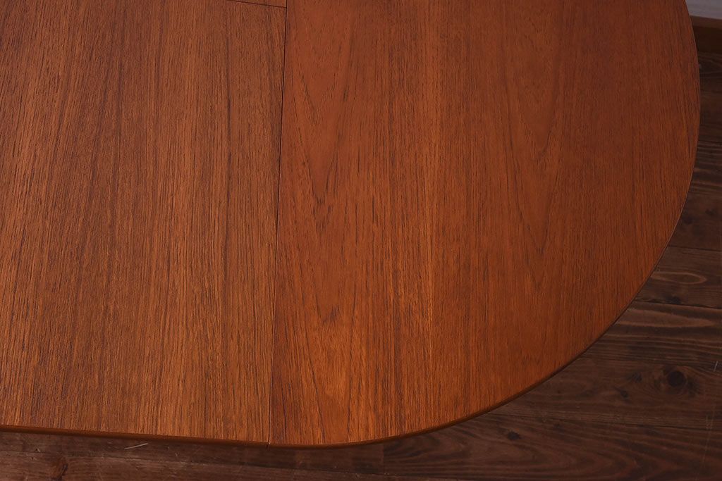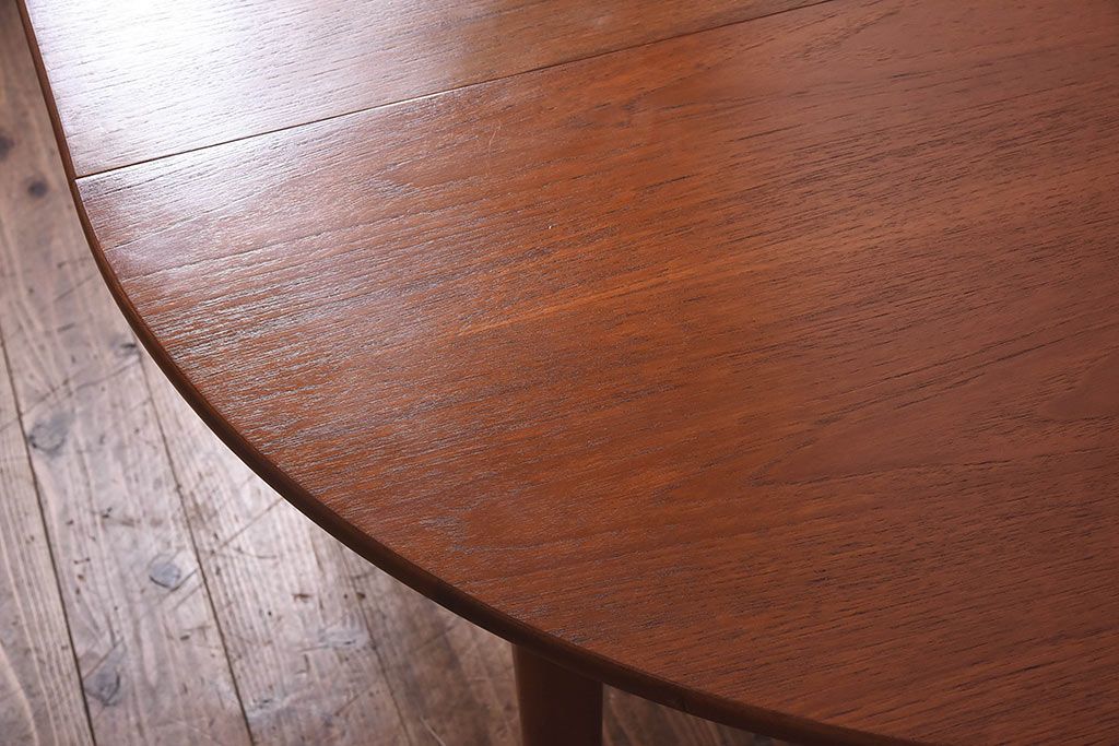 ラフジュ工房> テーブル> エクステンションテーブル > 北欧ビンテージ家具 チーク材 シンプルなラウンド型エクステンションテーブル(ダイニングテーブル、ドローリーフテーブル)